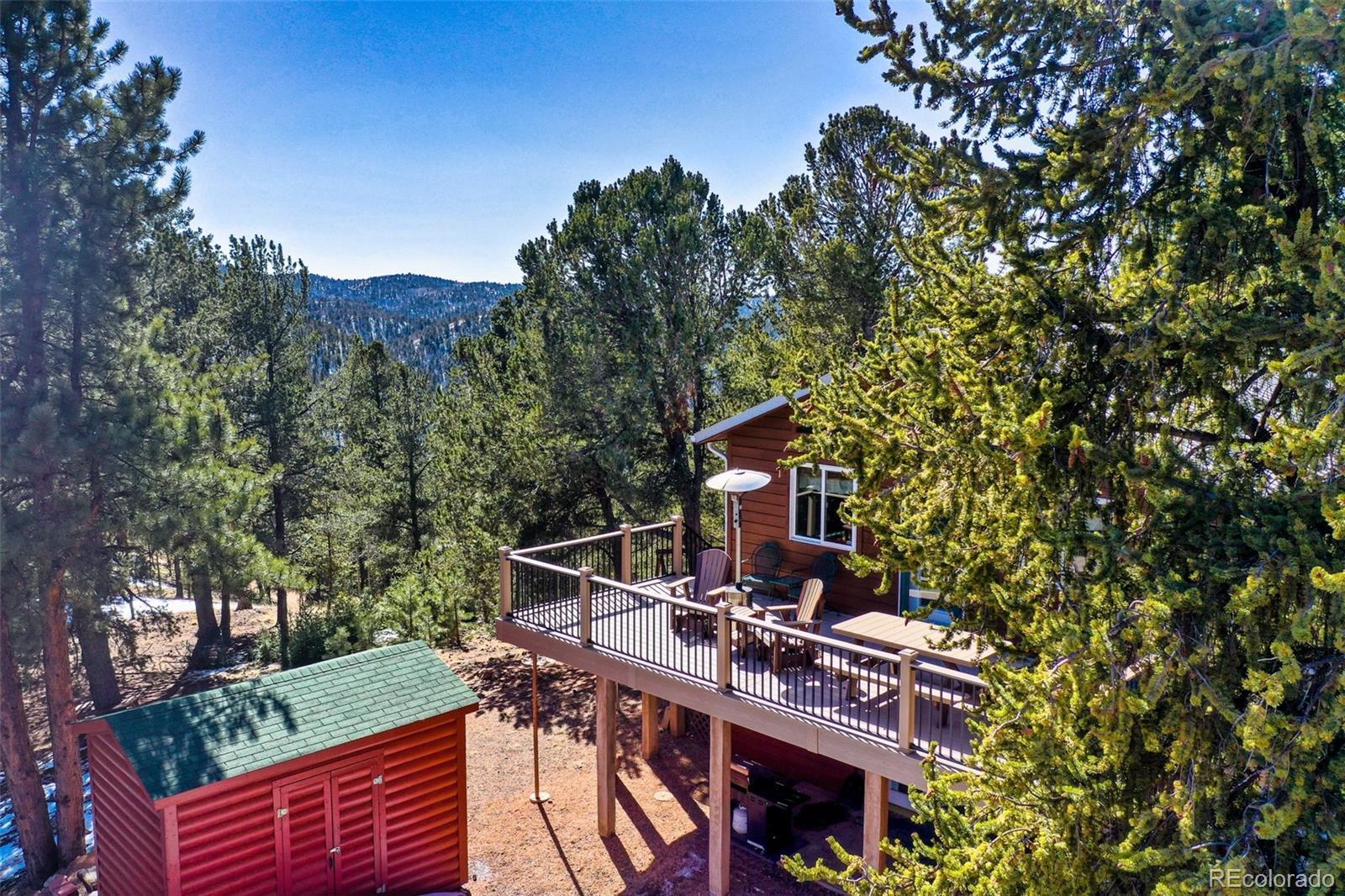 Welcome to Rainbow Valley! This charming cabin, just minutes from town, is a beautifully maintained, fully furnished home—ready to be your dream retreat or a VRBO with great income potential. Surrounded by trees, it offers the perfect blend of seclusion and convenience. With an open floor plan and abundant natural light, start your day with coffee on the stunning composite deck while soaking in breathtaking mountain views. At night, unwind beneath a sky full of stars. Enjoy the peace and quiet of this serene location while still having quick highway access to town. An ideal mountain escape, full-time home, or rental opportunity. THE VIEWS ARE SPECTACULAR! Experience the best of Colorado—just a short drive to Colorado Springs, Woodland Park, Breckenridge’s world-class skiing, gold-medal fishing, hiking, rafting, and more! The adjacent lot at 507 Horseshoe Drive (L13 Rainbow Valley 3) is also available, adding 0.65 acres for a total of 1.40 acres. (MLS 6367695)
