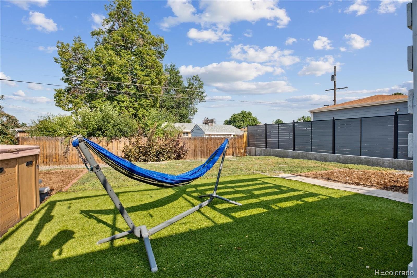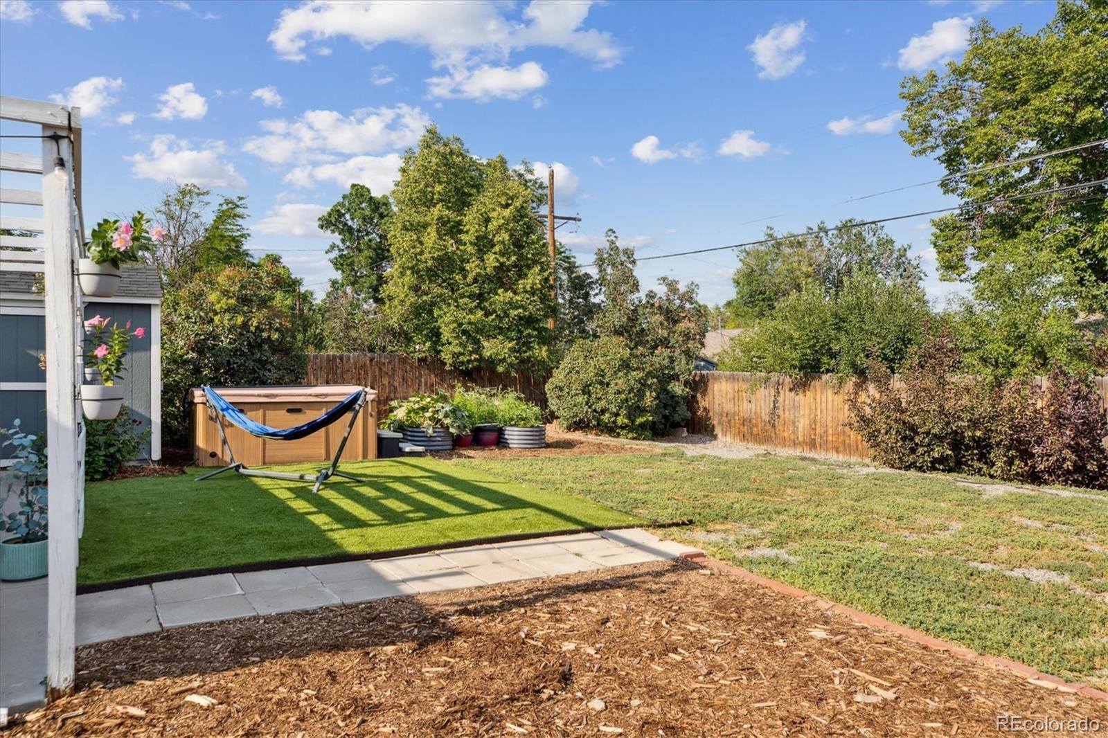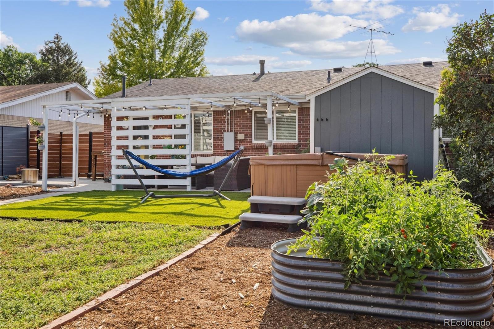 Welcome to this beautifully maintained and thoughtfully remodeled Harvey Park home. Nestled in one of Denver’s most desirable neighborhoods, this residence blends modern upgrades with original charm. With three bedrooms, one bathroom, and 1,114 square feet of living space, it offers comfort, character, and effortless livability. The updated kitchen is a standout, featuring quartz countertops, stylish cabinetry, crown molding, stainless steel appliances, a wine fridge, and a built-in coffee bar. Refinished original hardwood floors run throughout the home, complemented by newer interior paint, trim, doors, windows, and hardware. Step outside to a backyard designed for relaxation and connection. Enjoy turf, a pergola, raised garden beds, a shed, and a hot tub— perfect for entertaining or unwinding after a long day. Harvest fresh herbs and vegetables for true farm-to-table meals right at home. Concrete in both the front and back yards was re-poured in 2021, and the front yard features new landscaping and a sprinkler system. Additional updates include a new backyard gate, refreshed front gable siding, and a new washer and dryer installed in 2024. Located just two blocks from Harvey Park and minutes from Edgewater, Sloan’s Lake, and Downtown Denver, this home offers quick access to restaurants, shopping, and convenient light rail and bus options. Move-in ready and perfectly situated, it’s an ideal opportunity to settle into one of central Denver’s most beloved communities.