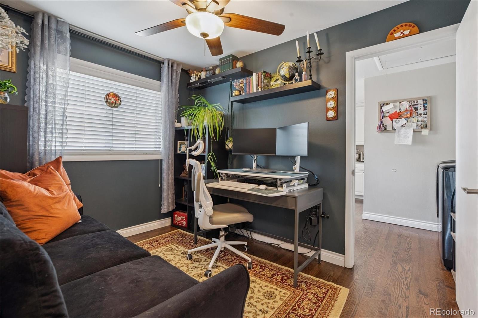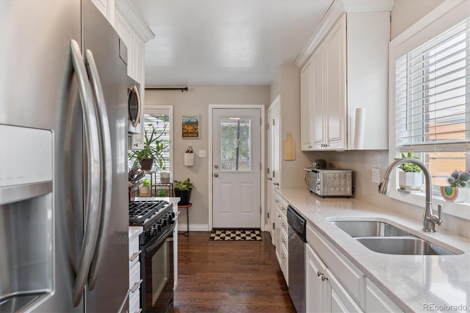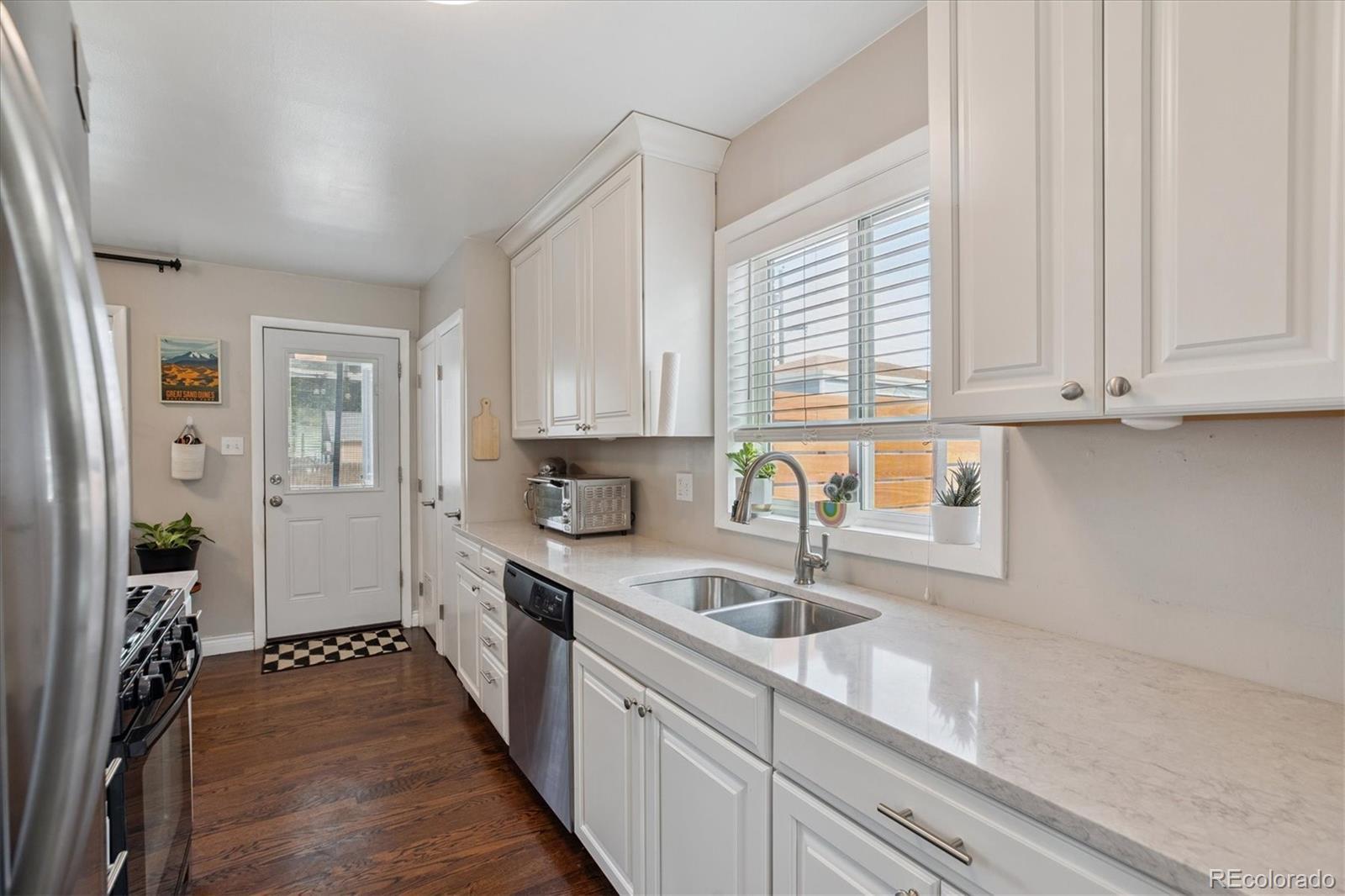 Welcome to this beautifully maintained and thoughtfully remodeled Harvey Park home. Nestled in one of Denver’s most desirable neighborhoods, this residence blends modern upgrades with original charm. With three bedrooms, one bathroom, and 1,114 square feet of living space, it offers comfort, character, and effortless livability. The updated kitchen is a standout, featuring quartz countertops, stylish cabinetry, crown molding, stainless steel appliances, a wine fridge, and a built-in coffee bar. Refinished original hardwood floors run throughout the home, complemented by newer interior paint, trim, doors, windows, and hardware. Step outside to a backyard designed for relaxation and connection. Enjoy turf, a pergola, raised garden beds, a shed, and a hot tub— perfect for entertaining or unwinding after a long day. Harvest fresh herbs and vegetables for true farm-to-table meals right at home. Concrete in both the front and back yards was re-poured in 2021, and the front yard features new landscaping and a sprinkler system. Additional updates include a new backyard gate, refreshed front gable siding, and a new washer and dryer installed in 2024. Located just two blocks from Harvey Park and minutes from Edgewater, Sloan’s Lake, and Downtown Denver, this home offers quick access to restaurants, shopping, and convenient light rail and bus options. Move-in ready and perfectly situated, it’s an ideal opportunity to settle into one of central Denver’s most beloved communities.