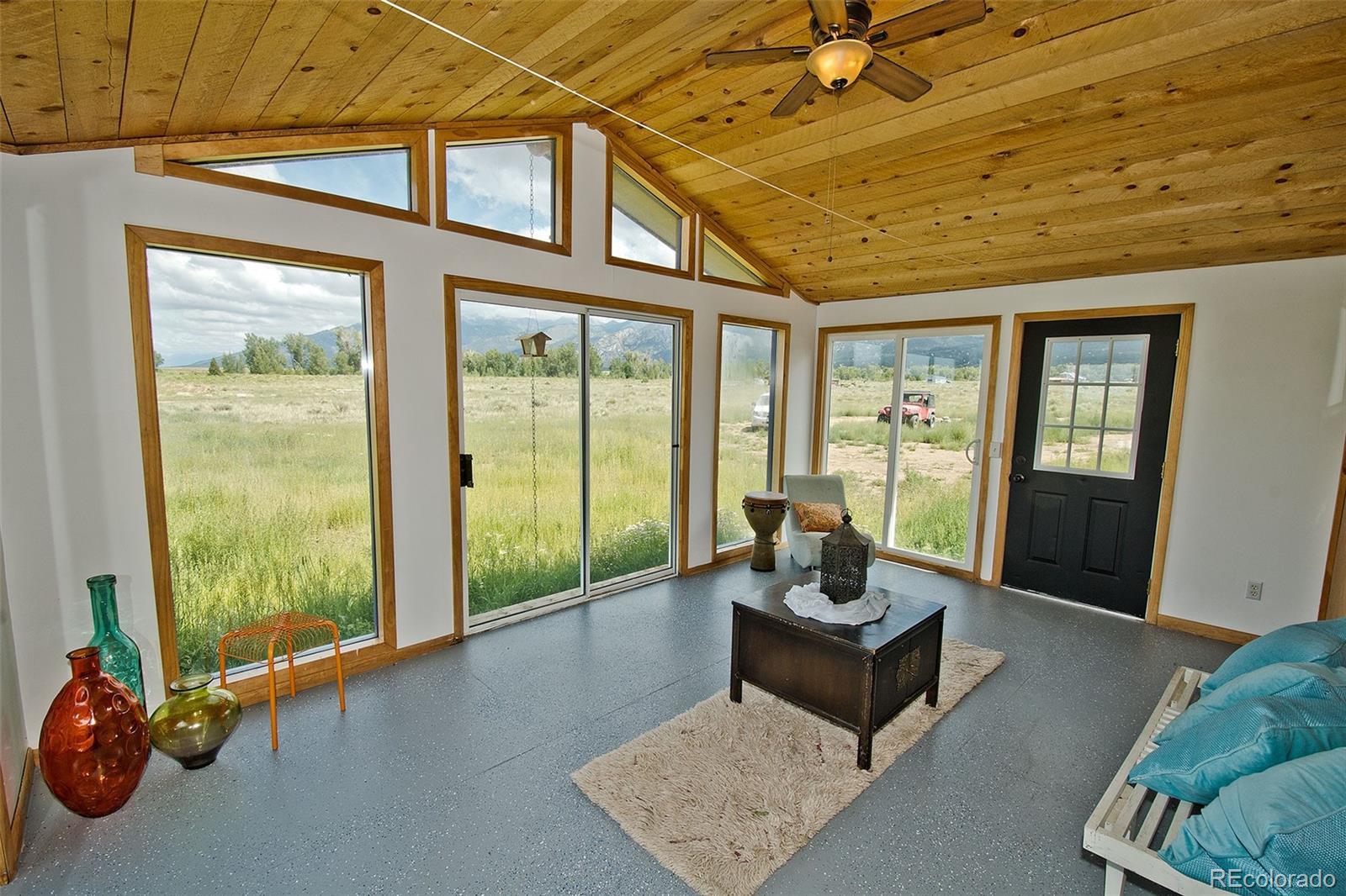 Step into a 2,176 SF sunny home in Baca Grande Grants, with stunning mountain views thoughout, on 2+ acres backing a greenbelt, steps from Willow Creek and 8 minutes to Crestone. The bright entry room leads to a large open-concept living, dining, and kitchen area. New south-facing Anderson windows bring passive solar warmth and light, and a new efficient wood-burning stove gives cozy charm. The spacious kitchen features a center island, lots of storage and counterspace, new gas stove, dishwasher & Kohler fixtures, and an eat-in bar. A dining area glass door opens to a fenced yard with garden beds, and plenty of room for pets or play. The flexible layout suits families, roommates, multigenerational living or income potential. The central living area separates two wings, giving each privacy. One has two bedrooms with new flooring, a full bath with storage, laundry room, hall closet and utility space. The primary suite on the other side offers a private entrance, entry room, two larger rooms, a massive walk-in closet with new carpet, and a ¾ bath. It can also serve as: · third bedroom + Airbnb suite · third bedroom + office/treatment space (with own entrance) · two-bedroom Airbnb suite With changes, it could create four bedrooms (add one interior door), a third bedroom + studio apartment, or a one bedroom apartment. Outside, enjoy a carport, a sizable attached storage/work shed (both with outlets), oversized parking, and an owned propane tank for cost savings. The home features a deep well, cement crawlspace, metal roof, fresh paint, new light fixtures, septic riser, and water filter. It’s rare to find this much space, light, and versatility in Crestone, especially at this price. At $182/SF, you’d be hard pressed to find a better value. Come see the views and imagine the possibilities!