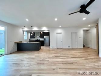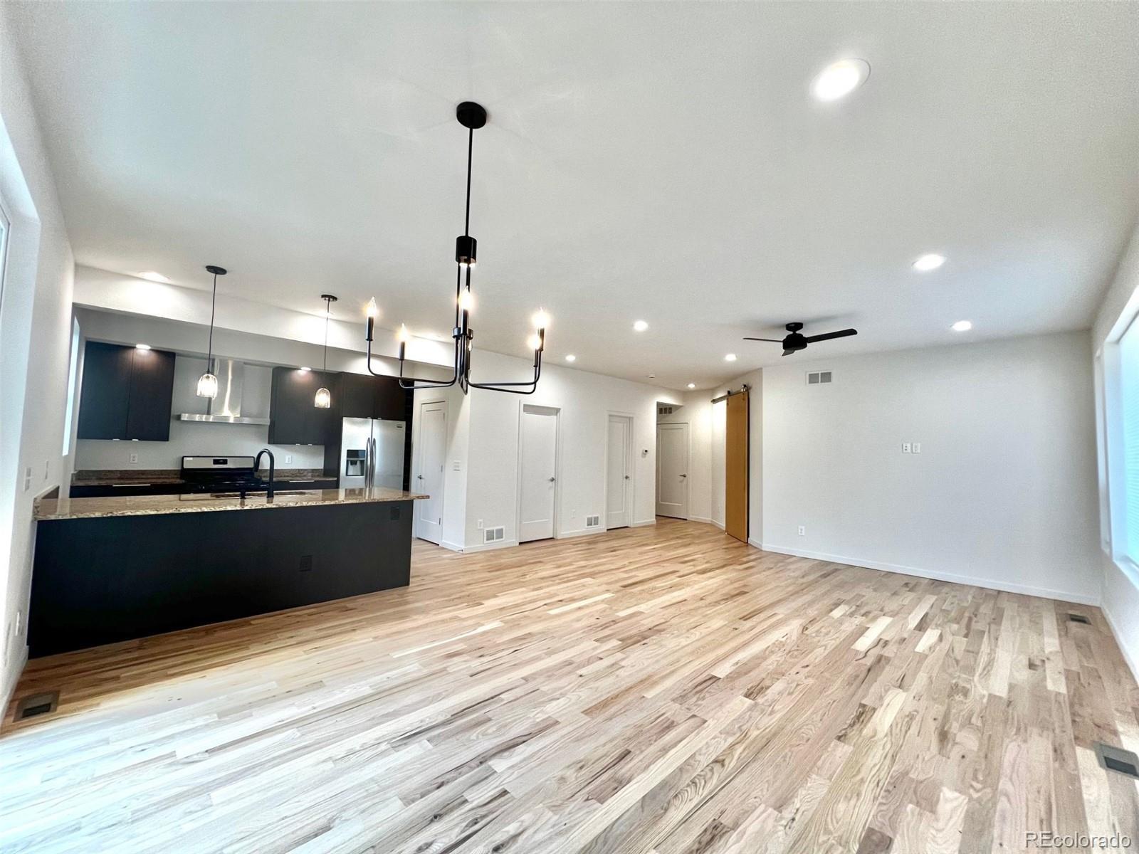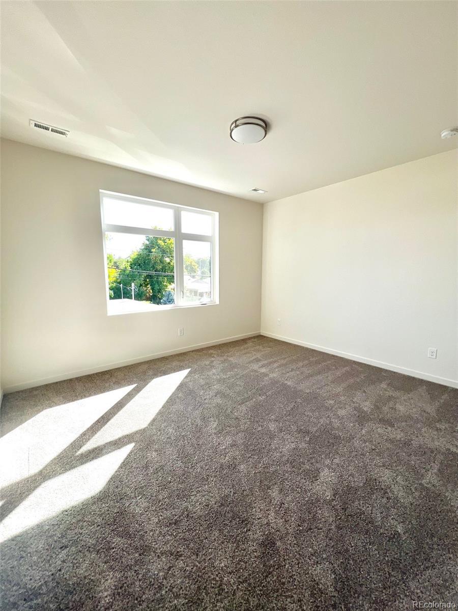 This spacious 4 Bedroom 2.5 Bathroom half Duplex has a private yard and 2 car detached garage. The main floor has an open concept living, dining and kitchen area which is great for entertaining. Also on the first floor is the fourth bedroom/office, a half bath and large coat and storage closet. The open concept kitchen has dark modern cabinets, slab granite counters, a walk-in pantry, and stainless appliances including: the refrigerator, range, hood, dishwasher, and microwave. The second floor has a large landing, laundry room which includes the washer and dryer, a shared hall bath for the 2 spacious bedrooms, and the primary suite. Exterior has a private yard with sprinkler and covered patio. Just to the north of the property is the Park Hill Golf course with is slated to be converted to the 4th largest park in Denver summer of 2026. There is no HOA. There is a partywall agreement with the front unit. Water bill is split between the two units.