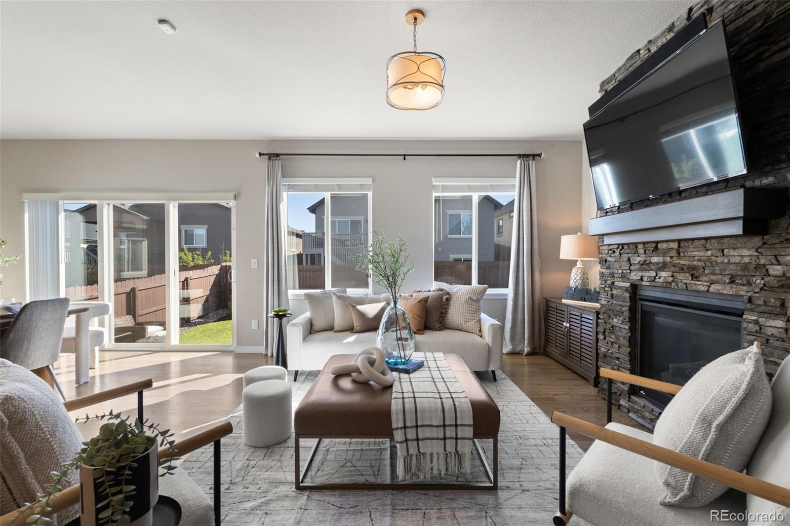 ***ASSUMABLE LOAN OPTION*** Nestled in the welcoming North Fork at Briargate neighborhood of Colorado Springs, this modern ranch plan offers a warm invitation to cozy, contemporary living with a strong sense of community. A sweeping open concept layout centers life around the great room, highlighted by a stunning stone-to-ceiling fireplace that anchors the space. The heart of the home is a thoughtful, efficient kitchen and living arrangement that encourages connection whether you are relaxing, cooking, or entertaining. Smart, comfortable living is elevated with a Google thermostat featuring separate sensor zones, ensuring personalized climate control that adapts to your lifestyle. Practical yet refined, the kitchen and wet bar are equipped with a water filtration system, with filters designed to last up to six months for added convenience, ideal for health-conscious households. Residents of this charming community enjoy close access to the many conveniences of Briargate, with shopping, dining, parks, and the Powers Corridor all within easy reach, while still appreciating North Fork’s generous open spaces and natural trails woven throughout the neighborhood. The area is served by the highly regarded Academy District 20 schools, with nearby Encompass Heights Elementary and Pine Creek High School adding to the appeal. Here, you will find the perfect balance of modern, thoughtful amenities and a community rooted in nature, education, and connection. It is not just a home; it is a place to enrich everyday living and build lasting roots
