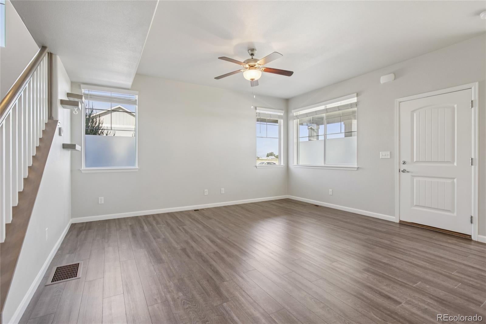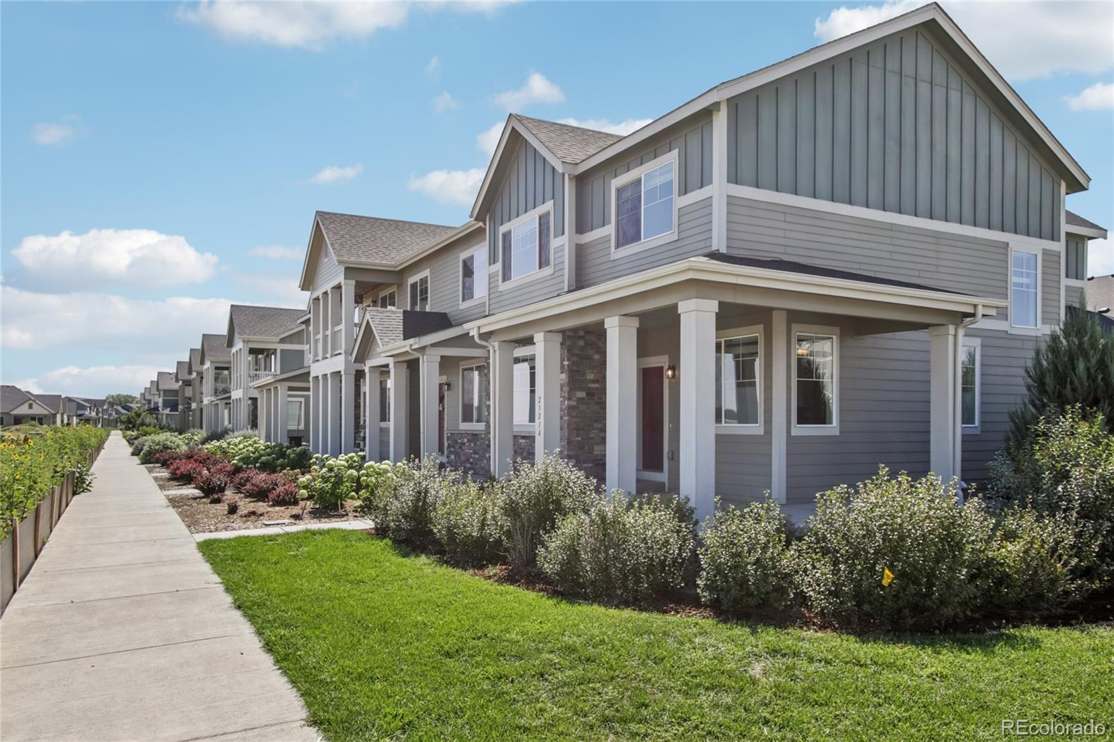 Beautifully appointed end-unit townhome in the desirable Brookstone community of Milliken! Lush front landscaping and a welcoming front porch set the tone, complemented by a side yard—maintained by the HOA—for added green space without the upkeep. Inside, the open main floor flows seamlessly between the spacious living room, dining area, and chef’s kitchen. The kitchen features stainless steel appliances, quartz countertops, a center island with sink and seating, and a pantry for extra storage. A built-in mudroom area with storage and a convenient half bath sit just off the attached oversized two-car garage, already equipped with 220 for car charging. Upstairs, retreat to the primary suite complete with a private en-suite bath and a massive walk-in closet. Two additional bedrooms and a full bath provide ample space for family, guests, or a home office. The high-end finished basement expands your living space with a large media room, wet bar, and an updated 3/4 bath featuring a luxurious steam shower. Enjoy mountain views, community trails, and a peaceful neighborhood that’s still close to shops, dining, and everyday conveniences. This home offers style, comfort, and low-maintenance living all in one!