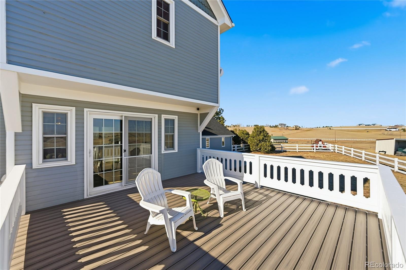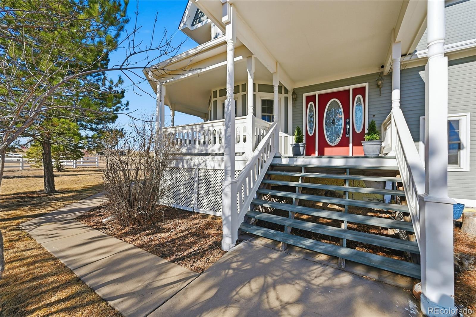 Check out this beautiful French Victorian home on 5.72 acres, offering a rare blend of character, privacy, and convenience. You won’t find another home with this much charm and personality! A spacious wrap-around-covered porch welcomes you and sets the tone for relaxed country living. Inside, this 3-bedroom, 4-bathroom home is designed for comfortable everyday living and effortless entertaining. All bedrooms are large and have walk in closets. The owner’s suite is oversized with extra space for a retreat, workout area, or office. 2 of the 4 bathrooms are freshly updated. Just off the breakfast room, a large deck expands your living space outdoors, perfect for morning coffee or evening gatherings. A new concrete patio adds even more room to enjoy the peaceful surroundings. The open sky views are spectacular. Photos from this property were featured in Parker's last 2 annual calendars! Horse lovers will appreciate the white-fenced pasture, community bridle paths, and 12 acres of common area. The gated entry provides privacy, while gorgeous views of sunrises, sunsets, and rolling hills surround you in every direction. Car enthusiasts and hobbyists will love the oversized 3-car garage with heat and A/C—ideal for vehicles, workshop space, or year-round projects. Practical updates include a new furnace in 2021 and a new roof in 2025, giving peace of mind for years to come. https://v1tours.com/listing/61372/ Despite its tranquil setting, this property is just 12 minutes to Parker or Southlands and about 25 minutes to DIA, offering an easy commute and quick access to shopping, dining, and travel. High speed fiber optic internet wired to house! A truly special home that combines timeless French Victorian charm with modern comforts and an exceptional equestrian lifestyle.
