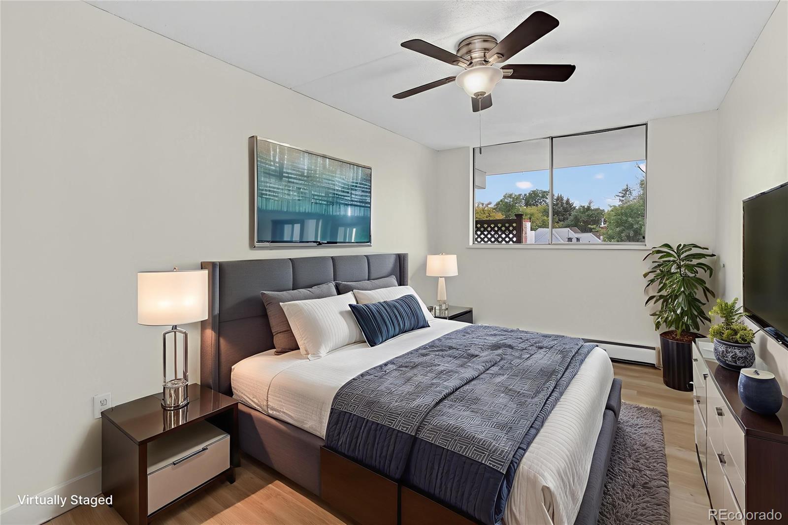 Beautifully Updated Cheeseman Square Condo with 2 Deeded Parking Spaces and Huge Balcony! Check out https://youtu.be/B1KC_15-9Fk Not just any Denver condo — this bright and spacious 2-bedroom, 1-bath unit in the Cheeseman Park neighborhood has been fully refreshed in October 2025 and is truly move-in ready! Enjoy brand-new LVP flooring throughout the entire unit, fresh interior paint, a new bathroom vanity, new toilet, new oven, and new microwave. The open living and dining area flows seamlessly into the full kitchen with granite tile countertops. You will love walking out to a south-facing 240 sq. ft. balcony — perfect for morning coffee or evening relaxation. The unit is light and bright with an abundance of natural light. An in-room air conditioning unit keeps the summers cool and the baseboard heat keeps the winters warm. There is no shortage of storage as both bedrooms offer generous closets, with additional storage in two large hallway closets plus a dedicated storage unit on the first floor. Convenience abounds with coin-operated laundry on-site and easy 4th-floor access directly off the elevator across from the front door. Unbeatable walkable location — just steps from Cheeseman Park, Whole Foods, and fantastic local restaurants and coffee shops. You will relax coming home knowing parking is a breeze with your two deeded parking spaces. Don’t miss your opportunity to own this updated, centrally located Denver gem!