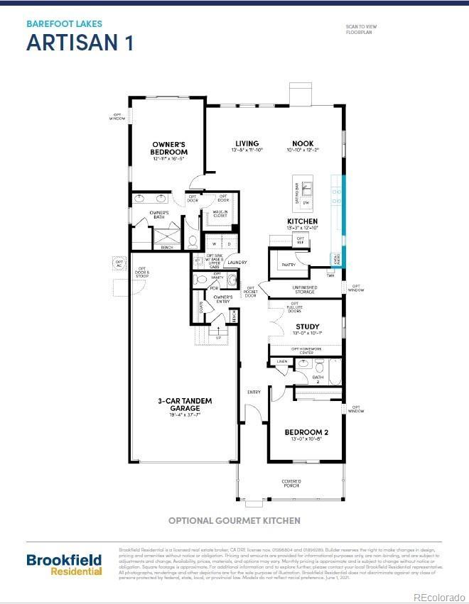 **Brand New Ranch Home + Rate Relief = Your Perfect Move! **Eligible for a 4.99% 30-yr fixed Rate (VA/Conv)+ 2/1 Temp Rate Buydown + $10,000 toward closing costs when using builder preferred lender, BRPHM** Final call for an Artisan Ranch by Brookfield Residential at Barefoot Lakes— this new, single-family ranch by Brookfield Residential backs to open space and is slated for a December 2025 move-in. An airy great room anchors the plan with two bedrooms plus a light-filled study and 2.5 baths. The gourmet kitchen shines with a large quartz island, white 42" cabinetry, walk-in pantry, and a KitchenAid package featuring a five-burner gas cooktop with chimney hood, wall oven, and microwave. Storage is effortless thanks to laundry room cabinets, a full unfinished basement ready for future finish, and a 3-car tandem garage. Step out to the covered patio and take in the setting, then step into the Barefoot lifestyle—miles of trails around 100 acres of lakes for kayaking, paddle boarding, and fishing, plus a community center with pool, fitness, pickleball, parks, and wide-open spaces. Photos are of a model of the same floor plan; selections and finishes may vary. Ask about our limited 4.99% fixed rate with preferred lender (qualification required; while funds last). See it before these Artisan ranches are gone for good.