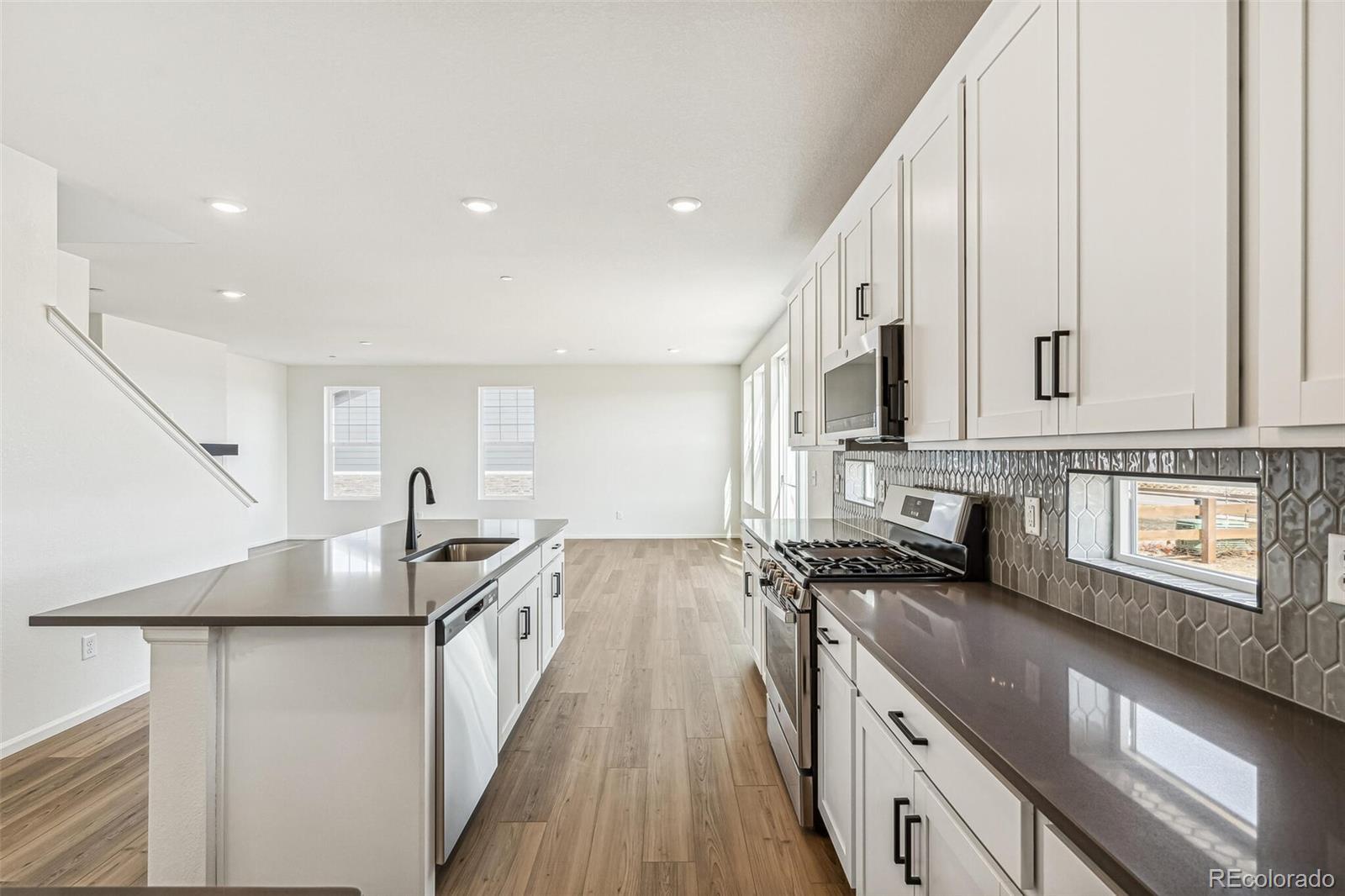 This spacious, two-story home offers an open floor plan with an inviting great room w/fireplace. Luxury vinyl plank flooring throughout the primary living areas, bathrooms and laundry. The modern kitchen boasts quartz countertops, an expansive island, walk-in pantry and stainless-steel appliances. The primary suite includes a spacious walk-in closet and connecting bath that with a generous shower w/seat. Enjoy an extended garage, deep enough for an SUV. See sales counselor for approximate timing required for move-in ready homes. The listing team represents seller/builder as a Transaction Broker.