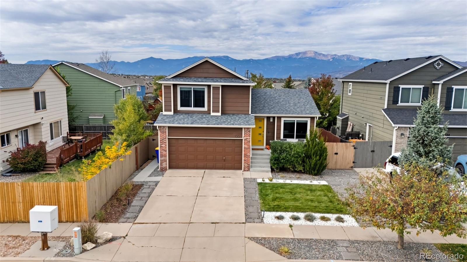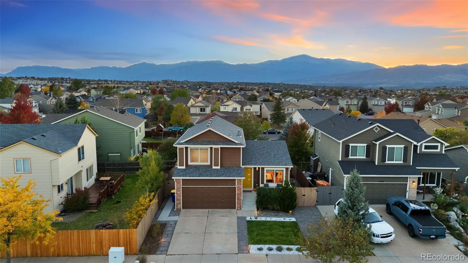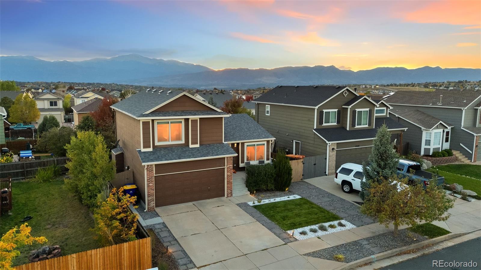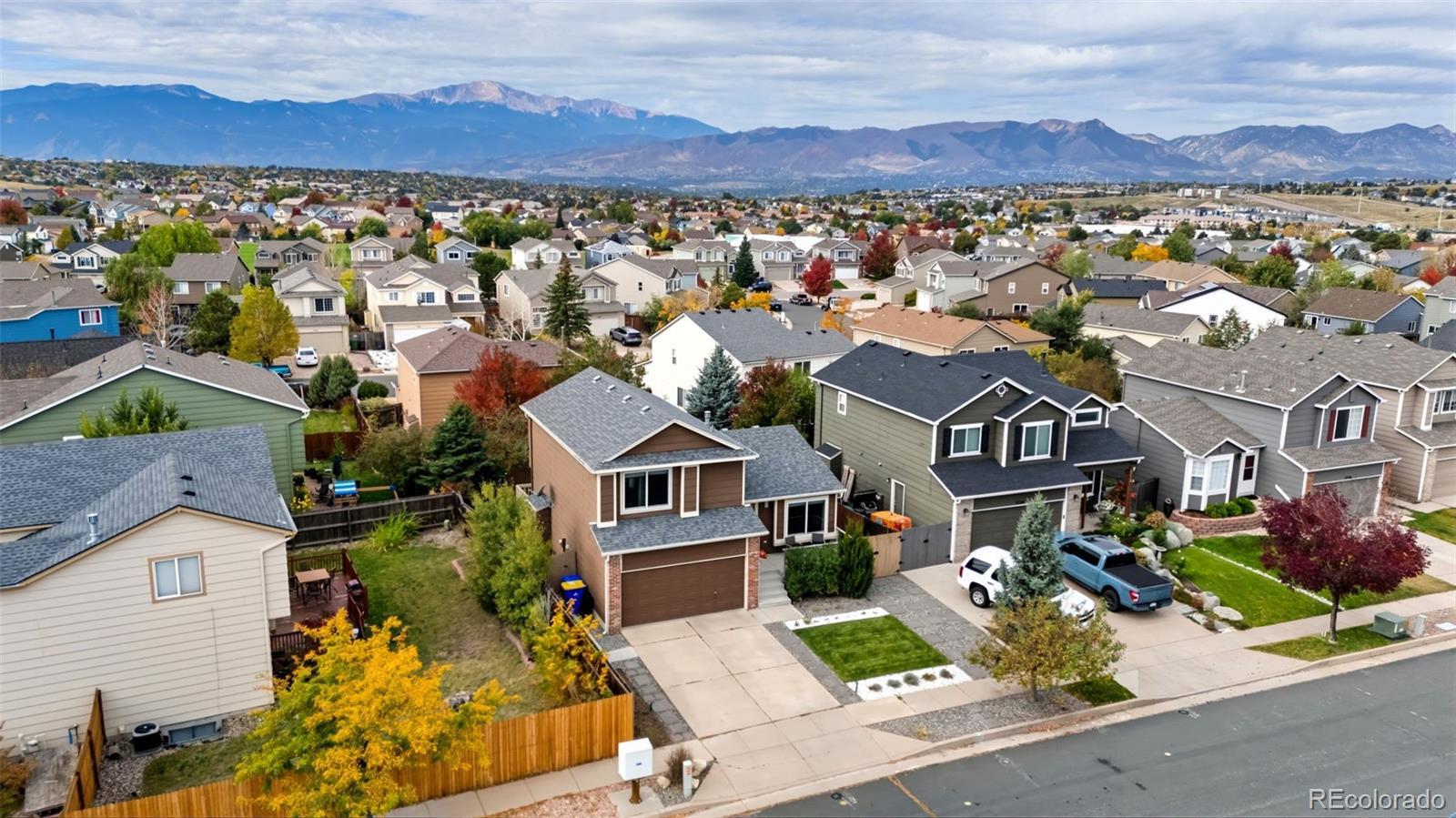 Welcome to this beautifully upgraded 4-bed 3-bath home in Wagon Trails! Step in from the front porch to see the stunning open main level complete with dining room and kitchen featuring a massive island, quartz countertops, custom backsplash, soft-close drawers, under cabinet lighting, a breakfast bar, LVP flooring, plus gorgeous mountain views! Or enjoy your meals al fresco on the double tiered deck, conveniently located off of the kitchen. Cozy up by the fireplace with stunning statement tile in the living room. Retreat upstairs to the primary suite with ensuite bath featuring upgraded double vanity and free-standing shower. Two additional bedrooms, both with views of Pikes Peak, plus a full bathroom round out the upper level. Head to the finished basement which can serve as a bedroom, family room, home gym and more, complete with another 3/4 bathroom. Relax in the backyard oasis featuring a double deck, colorful fall foliage, custom raised garden beds, and spectacular mountain views. Additional upgrades include newer Renewal By Andersen windows throughout, newer exterior paint, newer water heater, and fresh new front landscaping. The sought-after Wagon Trails community offers wonderful amenities, including a pool, tennis, and basketball courts as well as a convenient location near parks, D11 schools, shopping, and more. Don’t miss your chance to see this magnificently upgraded home- schedule a showing today!
