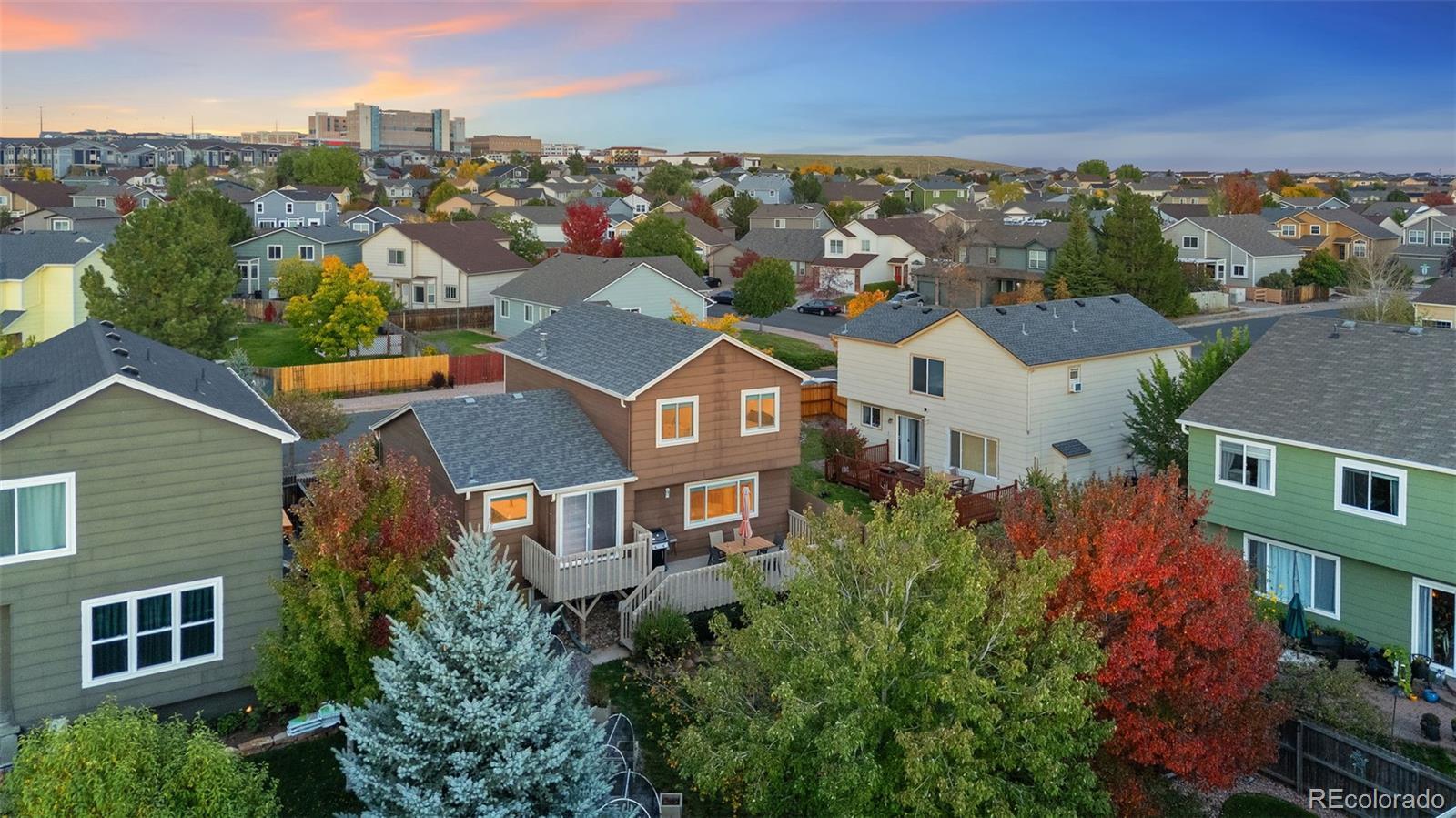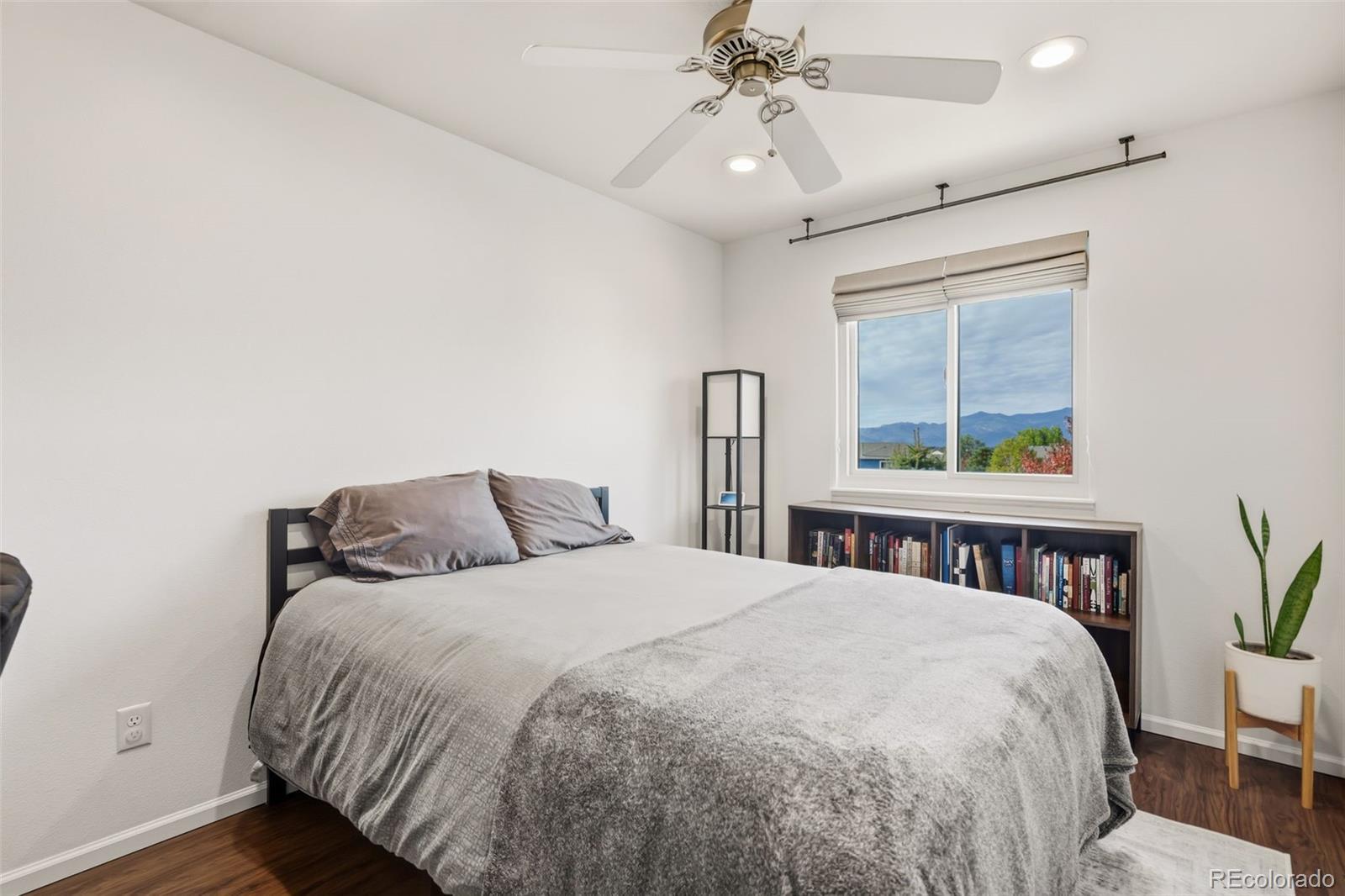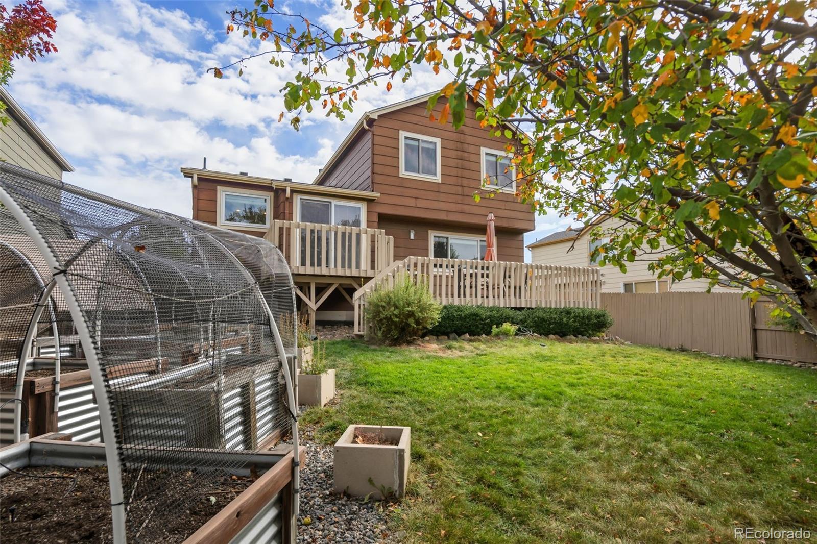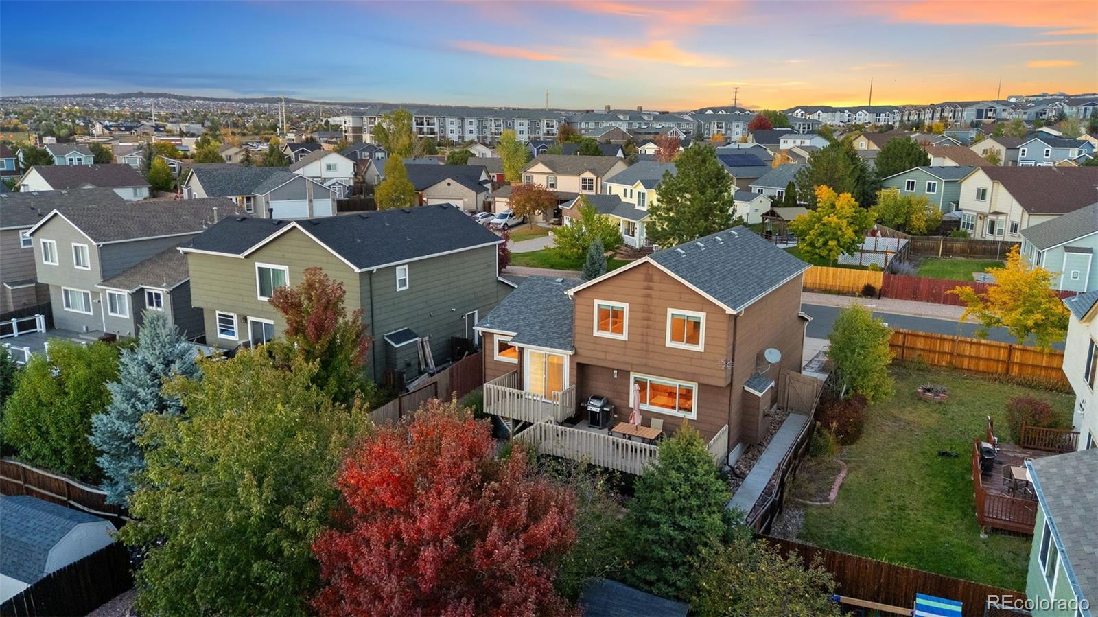 Welcome to this beautifully upgraded 4-bed 3-bath home in Wagon Trails! Step in from the front porch to see the stunning open main level complete with dining room and kitchen featuring a massive island, quartz countertops, custom backsplash, soft-close drawers, under cabinet lighting, a breakfast bar, LVP flooring, plus gorgeous mountain views! Or enjoy your meals al fresco on the double tiered deck, conveniently located off of the kitchen. Cozy up by the fireplace with stunning statement tile in the living room. Retreat upstairs to the primary suite with ensuite bath featuring upgraded double vanity and free-standing shower. Two additional bedrooms, both with views of Pikes Peak, plus a full bathroom round out the upper level. Head to the finished basement which can serve as a bedroom, family room, home gym and more, complete with another 3/4 bathroom. Relax in the backyard oasis featuring a double deck, colorful fall foliage, custom raised garden beds, and spectacular mountain views. Additional upgrades include newer Renewal By Andersen windows throughout, newer exterior paint, newer water heater, and fresh new front landscaping. The sought-after Wagon Trails community offers wonderful amenities, including a pool, tennis, and basketball courts as well as a convenient location near parks, D11 schools, shopping, and more. Don’t miss your chance to see this magnificently upgraded home- schedule a showing today!