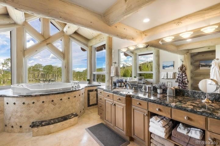 High Ceilings, Open Floorplan, Primary Suite, Sauna, Hot Tub, Vaulted Ceiling(s), Wet Bar
