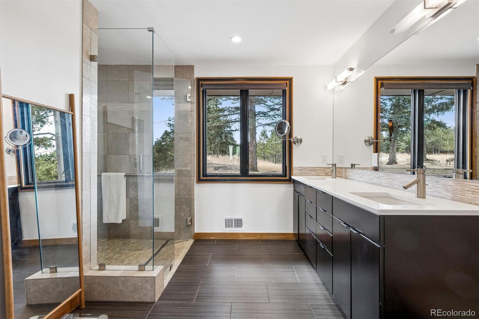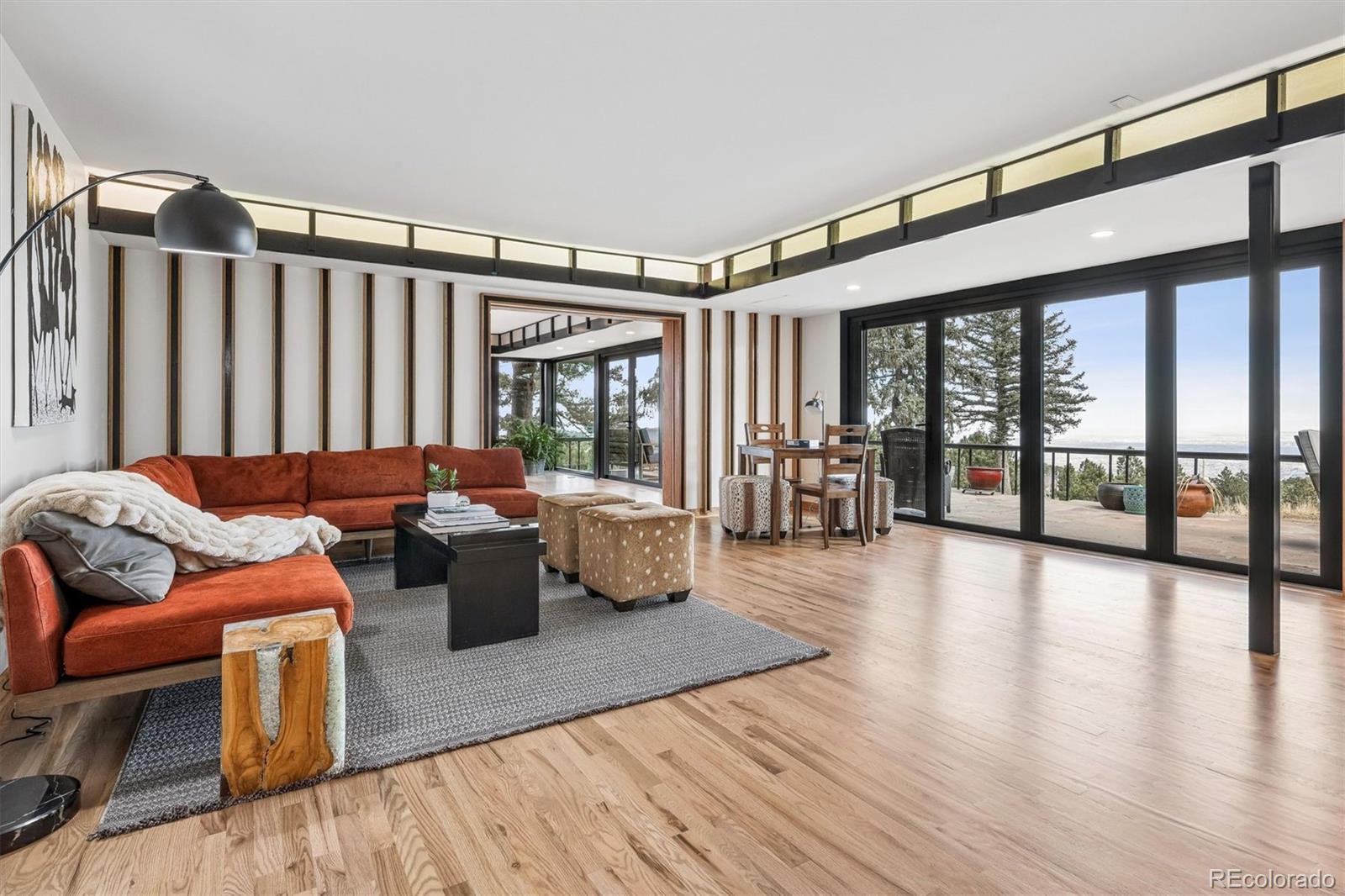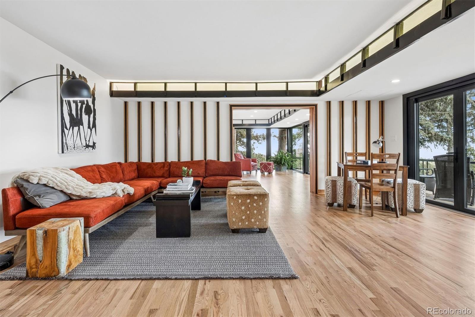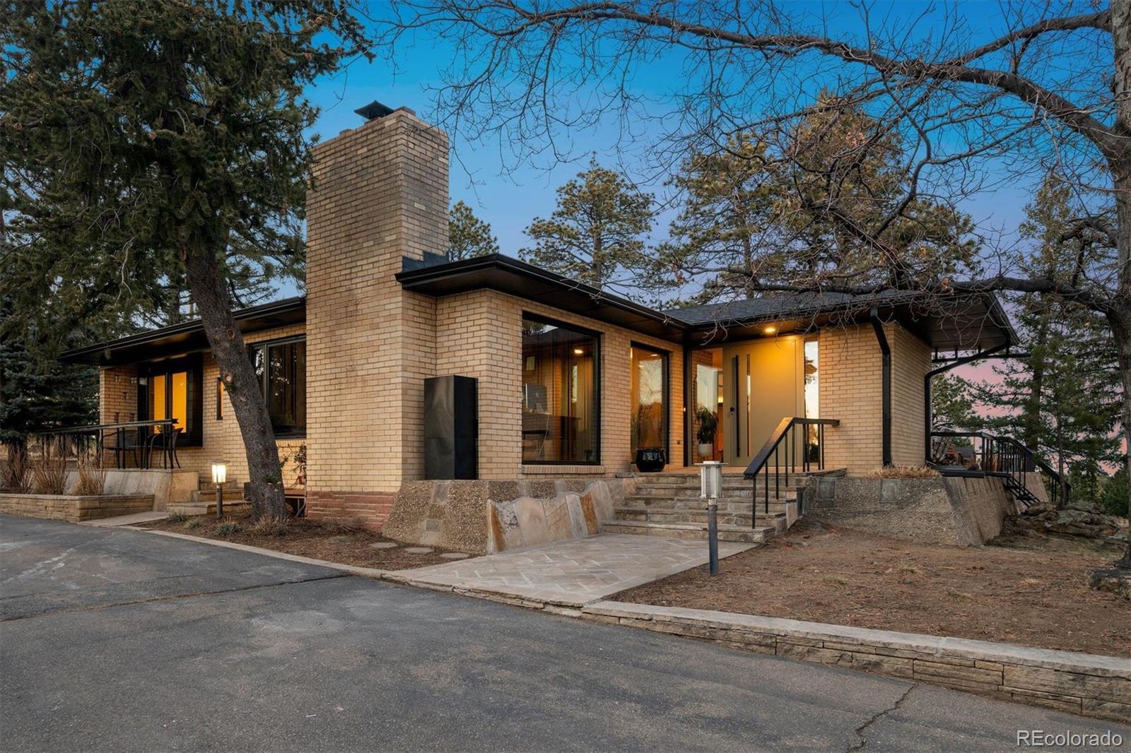 Perched atop coveted Lookout Mountain & spanning an extraordinary 2.53-acre estate, this one-of-a-kind offering redefines private mountain luxury in Golden. A rare sanctuary of serenity & sophistication, the property commands breathtaking panoramic views while delivering complete privacy & an unparalleled lifestyle experience. The main residence, encompassing 2536 SqFt above grade & 732 below is thoughtfully designed to capture its awe-inspiring surroundings. 3 bedrooms & 3 bathrooms are complemented by dramatic floor-to-ceiling windows that frame sweeping views of the Denver skyline & rolling foothills. Expansive living spaces are bathed in natural light, while a main kitchen, prep kitchen, & living room provide both versatility & effortless room for entertaining. A wraparound patio along the east side of the home creates seamless indoor-outdoor living, inviting morning sunrises & evening city lights into everyday life. The architectural showpiece of the estate is the custom tennis cathedral. An extraordinary, covered tennis pavilion unlike anything else on the market. Both dramatic & refined, this statement structure elevates recreation into an experience. Above & overlooking the tennis court, a private 1 bed, 1 bath (1,267 SqFt) retreat with a living room/game room for hosting & relaxation. Complementing the main residence & tennis cathedral is an additional fully independent guest home featuring 1 bed, 1 bath (987 SqFt) a private entrance, kitchen, and laundry room. Ideal for extended family or guests. The property contains extensive garage capacity (4 garage spaces) & thoughtfully designed storage areas to accommodate multiple vehicles & recreational equipment. A generous workshop or additional storage space further enhances the estate’s functionality. Perfectly positioned just minutes from historic downtown Golden, yet worlds away in feel, this remarkable property offers immediate access to trails, open space, and the very best of Colorado’s natural beauty.