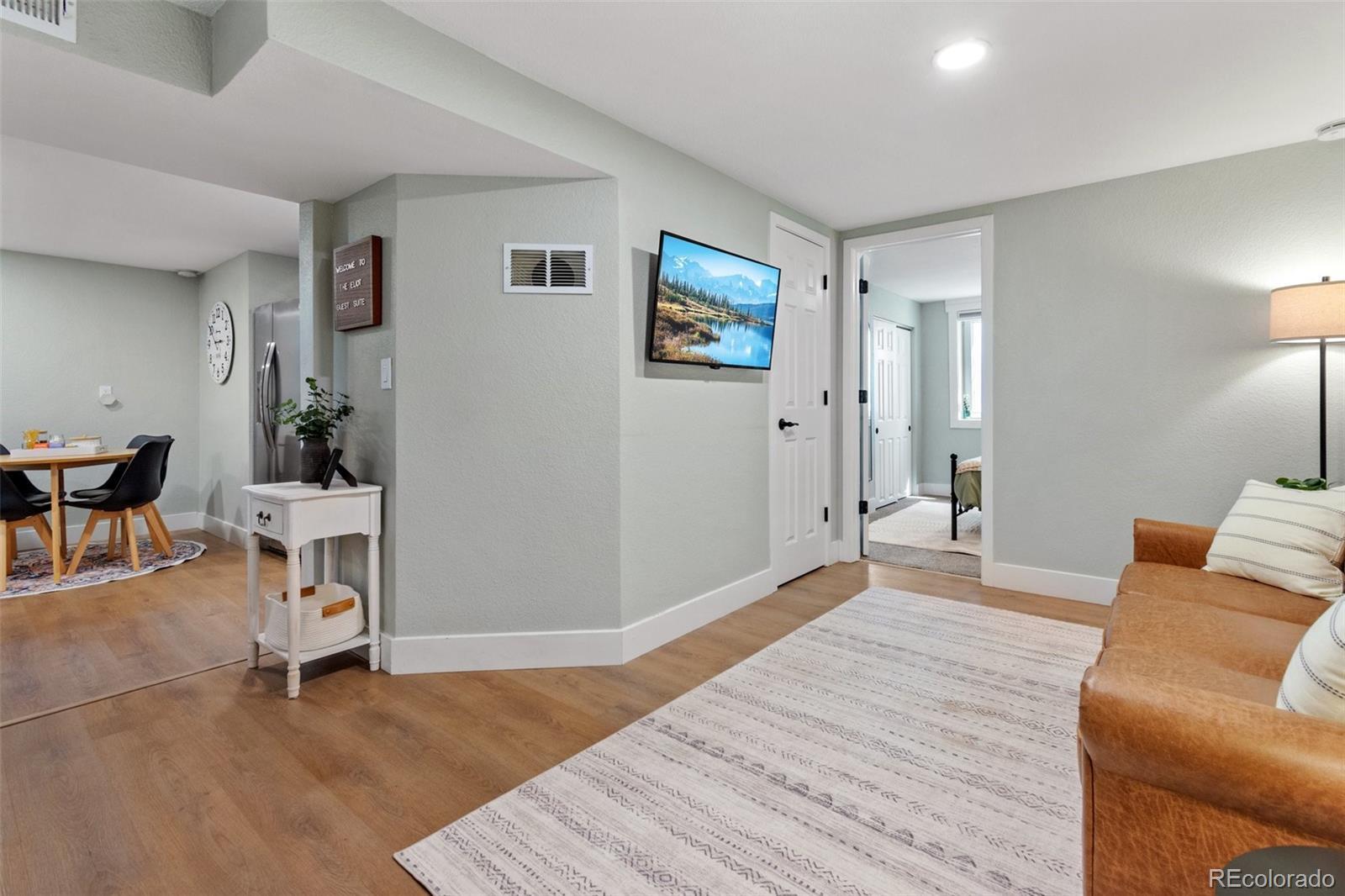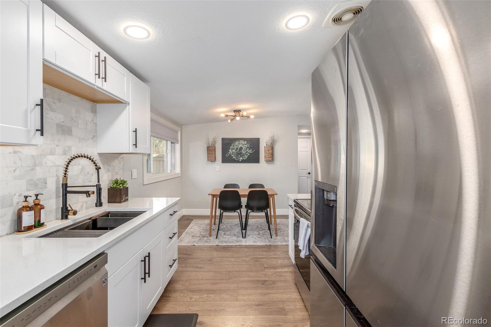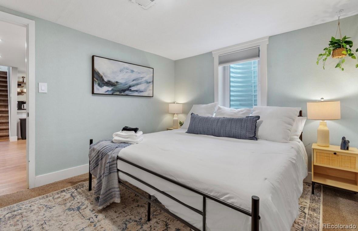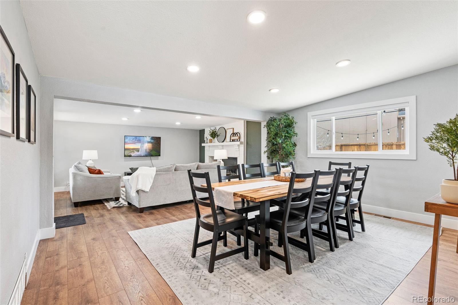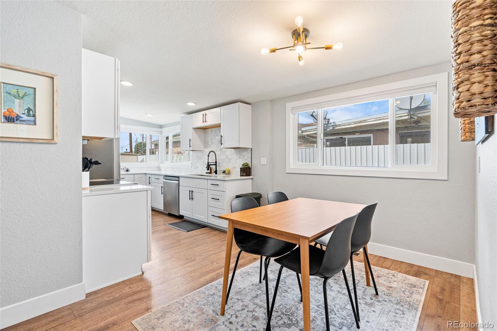 Centrally located Denver property delivers rare flexibility—functioning beautifully as a primary residence, strong income-producing investment, or an ideal house-hack opportunity. With separate living areas above & below, this ranch-style home offers a setup that supports multiple lifestyles while remaining easy to own, manage & envision. The main level features an open-concept layout where living room, dining area, & kitchen flow together, creating a space that feels modern and comfortable. Natural light pours in through newer vinyl windows, highlighting wood-looking LVP flooring, updated light fixtures, & clean, contemporary aesthetic throughout. An electric fireplace with mantel anchors the living area, while a large dining window adds brightness. The kitchen is thoughtfully updated with white quartz countertops, stainless steel appliances, deep farmhouse sink, & white shaker cabinetry with black hardware. Three bedrooms on the main level offer flexibility for guests or home office, supported by an updated full bathroom with newer vanity, modern fixtures, & rainfall shower head. The lower level expands versatility with a private exterior entrance, secondary kitchen, its own living area, updated 3/4 bathroom, & three conforming bedrooms with new egress windows. This space has successfully functioned as a long-term rental, mid-term rental, and Airbnb. Whether used for multi-generational living, supplemental income, or a full investment strategy, the layout allows each level to operate independently while remaining part of a single cohesive property. Outside, the low-maintenance design continues: covered back patio, newer fencing, turf landscaping, attached carport & additional gravel parking for the secondary unit, large lot & no HOA. Unpack and settle in, or activate an income strategy immediately—this is a property built for buyers who value modernization & long-term potential in Denver. Furnishing negotiable. https://youtube.com/shorts/5W4nq5L7ivM?feature=share