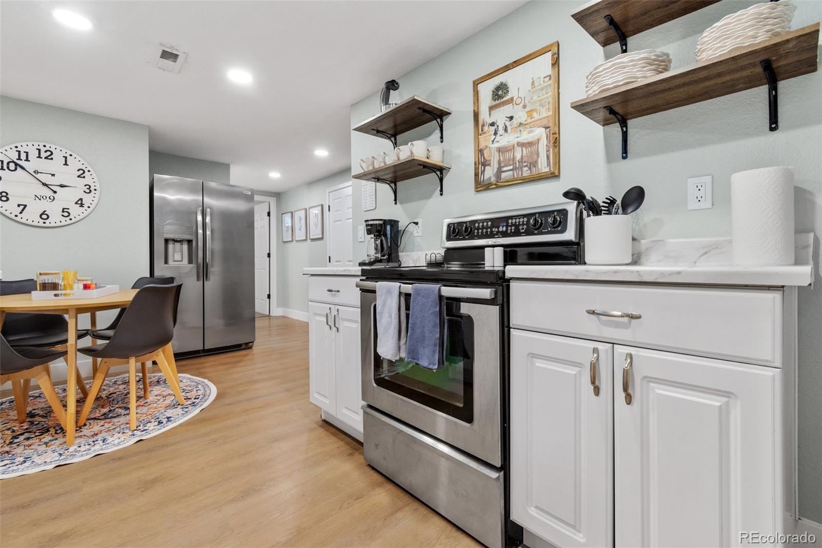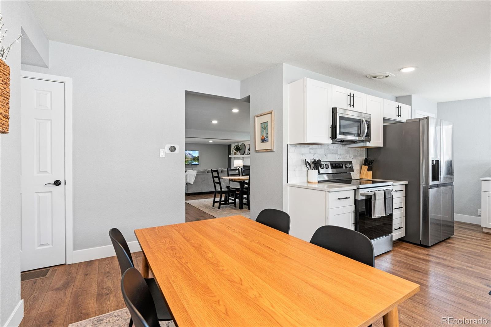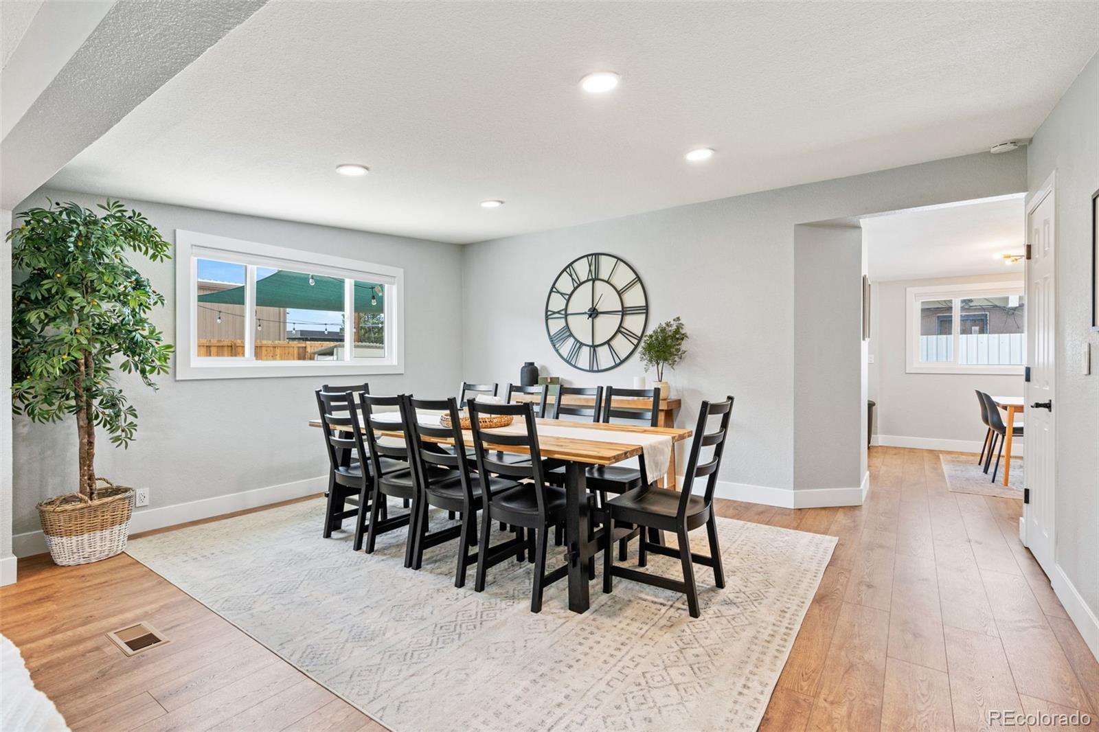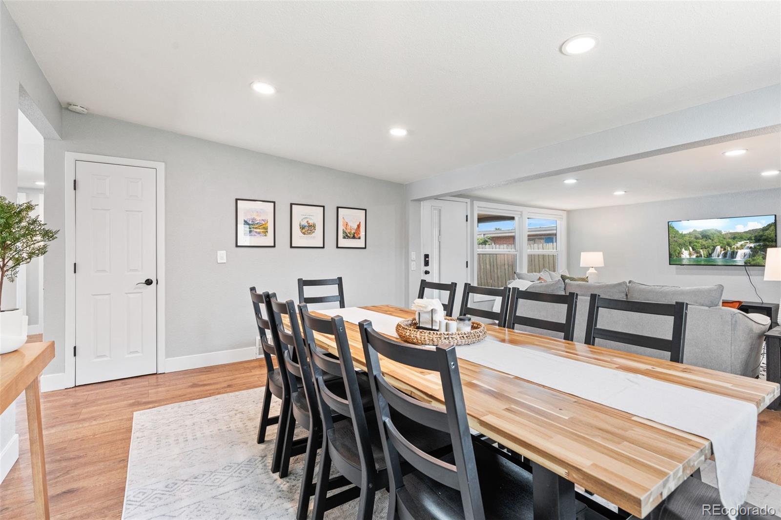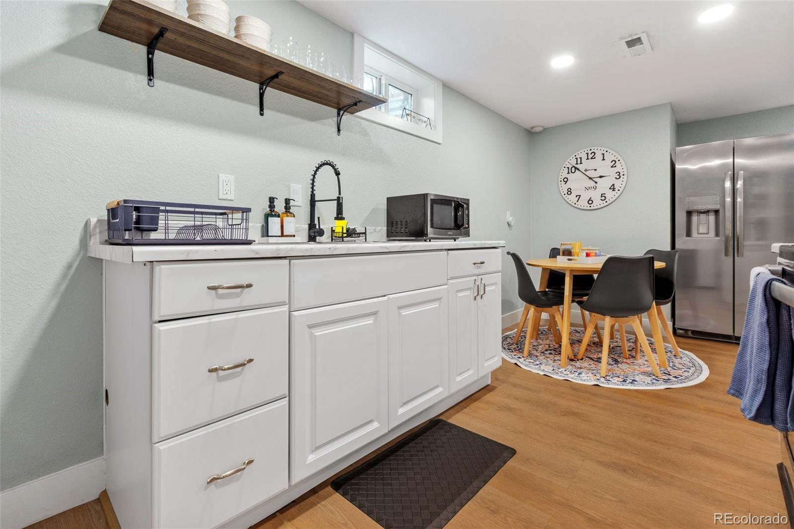 Centrally located Denver property delivers rare flexibility—functioning beautifully as a primary residence, strong income-producing investment, or an ideal house-hack opportunity. With separate living areas above & below, this ranch-style home offers a setup that supports multiple lifestyles while remaining easy to own, manage & envision. The main level features an open-concept layout where living room, dining area, & kitchen flow together, creating a space that feels modern and comfortable. Natural light pours in through newer vinyl windows, highlighting wood-looking LVP flooring, updated light fixtures, & clean, contemporary aesthetic throughout. An electric fireplace with mantel anchors the living area, while a large dining window adds brightness. The kitchen is thoughtfully updated with white quartz countertops, stainless steel appliances, deep farmhouse sink, & white shaker cabinetry with black hardware. Three bedrooms on the main level offer flexibility for guests or home office, supported by an updated full bathroom with newer vanity, modern fixtures, & rainfall shower head. The lower level expands versatility with a private exterior entrance, secondary kitchen, its own living area, updated 3/4 bathroom, & three conforming bedrooms with new egress windows. This space has successfully functioned as a long-term rental, mid-term rental, and Airbnb. Whether used for multi-generational living, supplemental income, or a full investment strategy, the layout allows each level to operate independently while remaining part of a single cohesive property. Outside, the low-maintenance design continues: covered back patio, newer fencing, turf landscaping, attached carport & additional gravel parking for the secondary unit, large lot & no HOA. Unpack and settle in, or activate an income strategy immediately—this is a property built for buyers who value modernization & long-term potential in Denver. Furnishing negotiable. https://youtube.com/shorts/5W4nq5L7ivM?feature=share