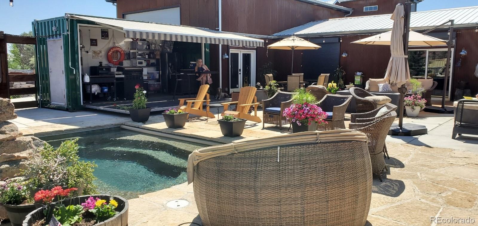 Experience the unmatched lifestyle of 318 Lilac Dr - an extraordinary 1-acre compound in Lochbuie blending versatility, craftsmanship & resort-style outdoor living. With approx. 5,092 sq ft of total living space, including a 1,400 sq ft legal ADU, this 1-of-a-kind estate is ideal for multigenerational living, creative work or serious hobbyists. The main residence offers over 3,200 sq ft w/Italian tile floors, Restoration Hardware lighting & blacksmith-forged details throughout. A chef’s kitchen anchors the home with Sub-Zero refrigeration, Wolf range with pot-filler, drawer freezers, raised dishwasher, microwave drawer & a leather surfaced granite island. Additionally, there is a separate dedicated apothecary kitchen with dust-filtration - ideal for herbal work or clean prep. The primary suite features a copper clawfoot tub, zero-entry shower, heated floors & a walk-in closet doubling as a boutique dressing space. A reverse osmosis heated jet pool with moss rock waterfall & auto-cover anchors the EverStone 3400 sf patio, framed on three sides by oversized glass walls & doors from the kitchen, living and hall for a U-shaped view and seamless indoor/outdoor access. Automated roll-down shades enhance comfort & efficiency, while JellyFish lighting wraps all structures with programmable ambiance. A retrofit shipping container bar/kitchen serves the pool. A stream borders the yoga/meditation room off the primary wing, overlooking an irrigated pollinator garden. Elsewhere: raised beds, mature trees & a separate duck pond near stealth chicken coops & 4 storage sheds. Over 4,000 sq ft of garages/shops include a pull-thru RV bay with 14' doors, shop baths, hot/cold water, heated/insulated bays, & 320-amp power. All buildings have 24-gauge metal siding, standing seam metal roofs, and high-clearance insulated doors with flush-mount LiftMaster openers. Just a minute from I-76 & 30 min to DIA, with no HOA and livestock-friendly zoning, this turnkey compound delivers!