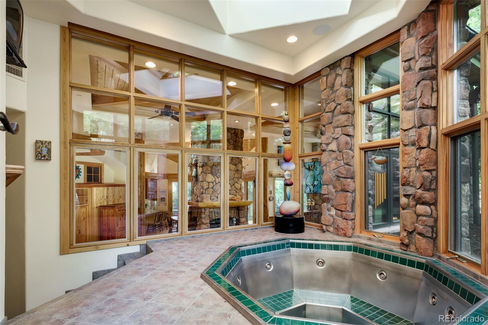 Outstanding custom-built contemporary stone estate built by a builder for his own residence. A highly desirable and an unbeatable Boulder location, backing to open space on 1.25 acres with sweeping city, Flatiron and mountain vistas. You will be captivated by the immense curb appeal the moment you arrive. Featuring over 9400 of gracious living on 3 levels, 5 en-suite bedrooms and 10 baths, and an elevator with direct access to every floor including the heated 6 car garage. Fine architectural details, soaring 20' ceilings, numerous terraces and patios, a main floor guest apartment, heated saltwater pool in an extraordinary setting and a spa conservatory room. Walk or bike to Pearl Street shops and restaurants and enjoy immediate access to Boulder's best hiking right outside your front door. Impressive top floor with cherry floors, custom millwork, formal living room overlooking the city, dining room with Flatiron views, enormous Chef's kitchen, cherry cabinetry, Viking and Bosch appliances, a casual family dining area that shares a floor to ceiling stone fireplace with the family room and there are multiple dining terraces. Primary suite with reading room, fireplace, library hall and 5-piece luxury bath complete with steam shower, jetted soaking tub and 2 walk-in closets. Many flexible and highly functional rooms are on the 2nd level, children's play and media room, yoga room with steam shower, an art studio or sun room, an exercise room with full bath, 3 en-suite bedrooms and 2500 bottle wine cellar. Lower level features a Billiards and game room with wet bar, media room with wet bar, a home office, and a guest apartment designed to accommodate extended family. Heated driveway and roof snowmelt system, mature landscaping, large rock outcroppings & perennial garden borders, stone walls and flagstone patios and a cistern for irrigation. Private and surrounded by nature, a highly desirable Boulder lifestyle property providing all the amenities and convenience.