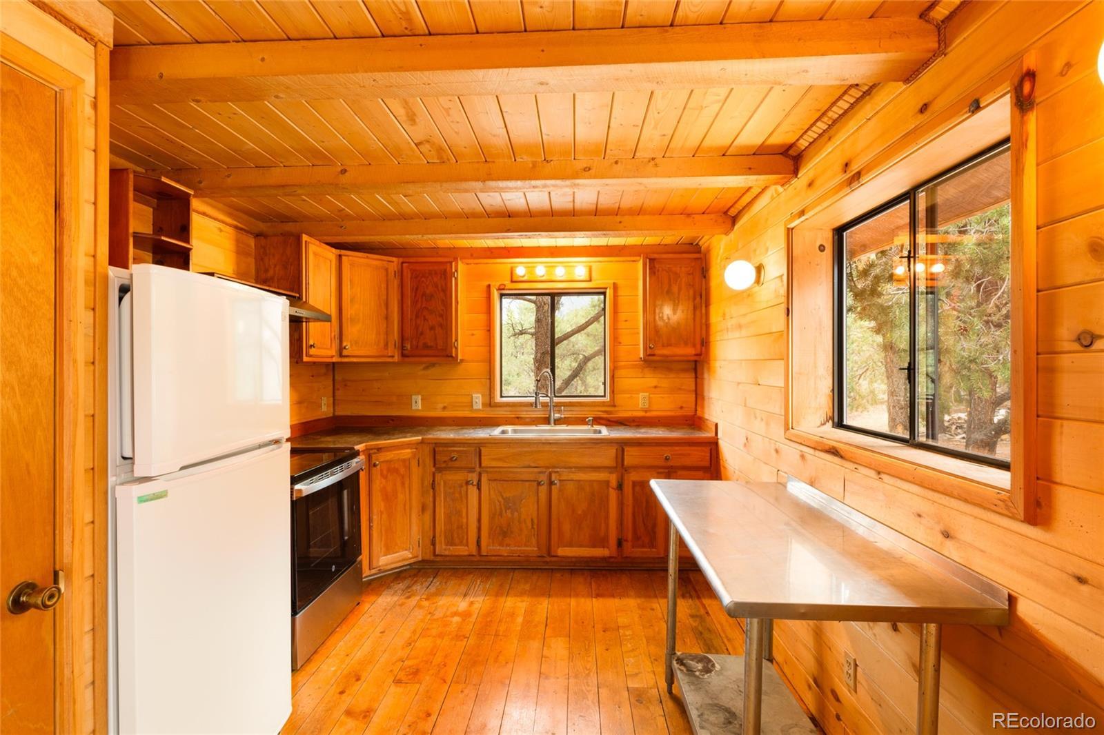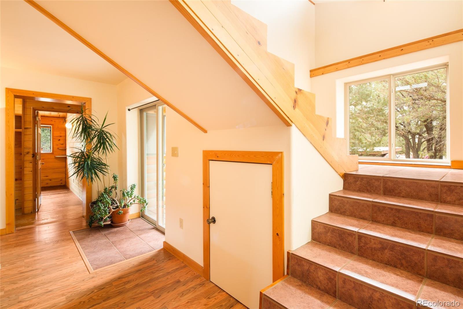 Extensive and stunning views from this 5 bed, 3 Bath home in the town of Crestone! With over 3600 sq ft between three floors, there are an exceptional number of uses for the home. The unique design blends a quaint frame cabin with a spacious and energy efficient Insulated Concrete Form (ICF) addition. The main floor features two smaller flex bedrooms with lofts along the front of the home, a galley kitchen with brand new refrigerator, range/oven and hood, and opens up to the newer construction to the rear of the home. A large (30 x 15) light filled living room, heated with an energy efficient ETS unit and large wood stove, opens to two additional bedrooms and a large full bath (with additional washer hookup), as well as porches on both sides of the home. The Floating stairs are light filled and wide, perfect for a multitude of plants, and lands on a huge top floor suite. The versatility of this space is remarkable...with two large spaces on either side of the stairs and its own living room space, an incredible (11.5 x 13.5) walk in closet, a beautiful soaking tub bathroom with a view, and a serene balcony overlooking the mountains. Described by the owner as "his favorite place for coffee in the morning", the positioning of the home provides invisibility on this balcony from other neighbors, while allowing breathtaking views of the Sangre De Cristo's. Down the stairs to the first floor basement, this space features its own access from the back gardens, and could be finished to include an apartment kitchen and bathroom. Few utility bills as the home is on a private, 400' deep well and septic system. Easy walking distance to the Crestone Charter school, groceries, the hardware store, shops and restaurants. Check out the matterport 3D tour for an immersive experience of the home, or schedule an in-person viewing!