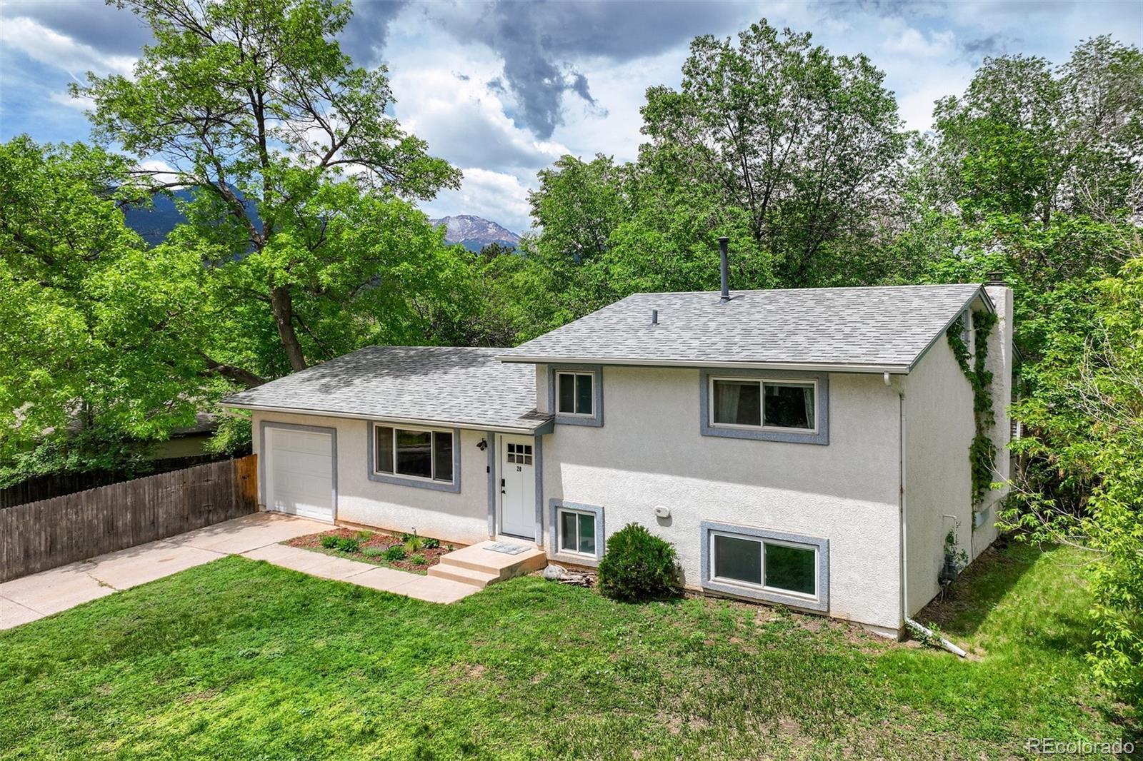 Welcome to this well-maintained tri-level home offering 1,508 sq ft of comfortable living space on a 5,000 sq ft corner lot. Located near downtown Colorado Springs, this home is perfectly positioned for those who enjoy both city convenience and outdoor adventure. The main level offers a bright and inviting living room that flows seamlessly into an updated kitchen and dining area—perfect for everyday living or entertaining guests. Upstairs, you'll find three bedrooms and a full bath complete with tile flooring, updated vanities, and resurfaced tub/shower tile. The lower level includes a spacious family room, 2nd bathroom, laundry area, and a non-conforming fourth bedroom—ideal for a home office, gym, guest room, or hobby space. Recent updates include a Level-5 roof (installed 2020), new water heater (2022), fresh interior paint and professionally cleaned flooring throughout. Includes stainless steel kitchen appliances plus washer and dryer—making this home truly move-in ready. You'll love the location—just a short walk to grocery stores, restaurants, and locally owned businesses, and only about 5 minutes by car or within 30 minutes on foot to Garden of the Gods, Red Rock Canyon, and Manitou Springs. The area also features many nearby trails, perfect for daily walks, hikes, or bike rides. Enjoy a large side yard shaded by mature trees, providing added privacy and the perfect spot for entertaining or relaxing outdoors. The fenced backyard includes a shed for extra storage, and a wide side gate allows RV, boat, or extra vehicle parking—a rare bonus with no HOA restrictions. You’ll also appreciate the huge crawl space for ample storage. Zoned R-2, this property gives you the flexibility to build an Accessory Dwelling Unit (ADU) with no added restrictions—great for future expansion or income potential. This home blends comfort, location, and opportunity. Don’t miss the chance to own a charming, well-maintained residence in one of Colorado Springs’ most sought-after areas.