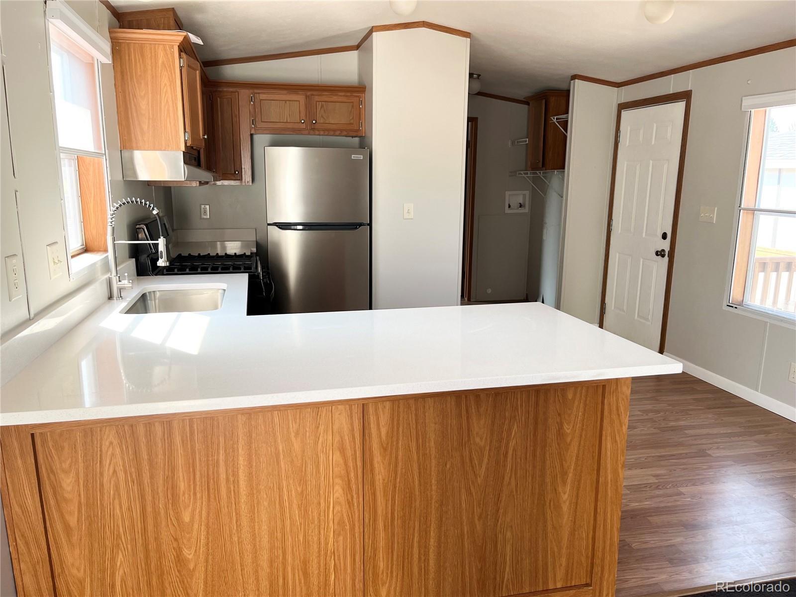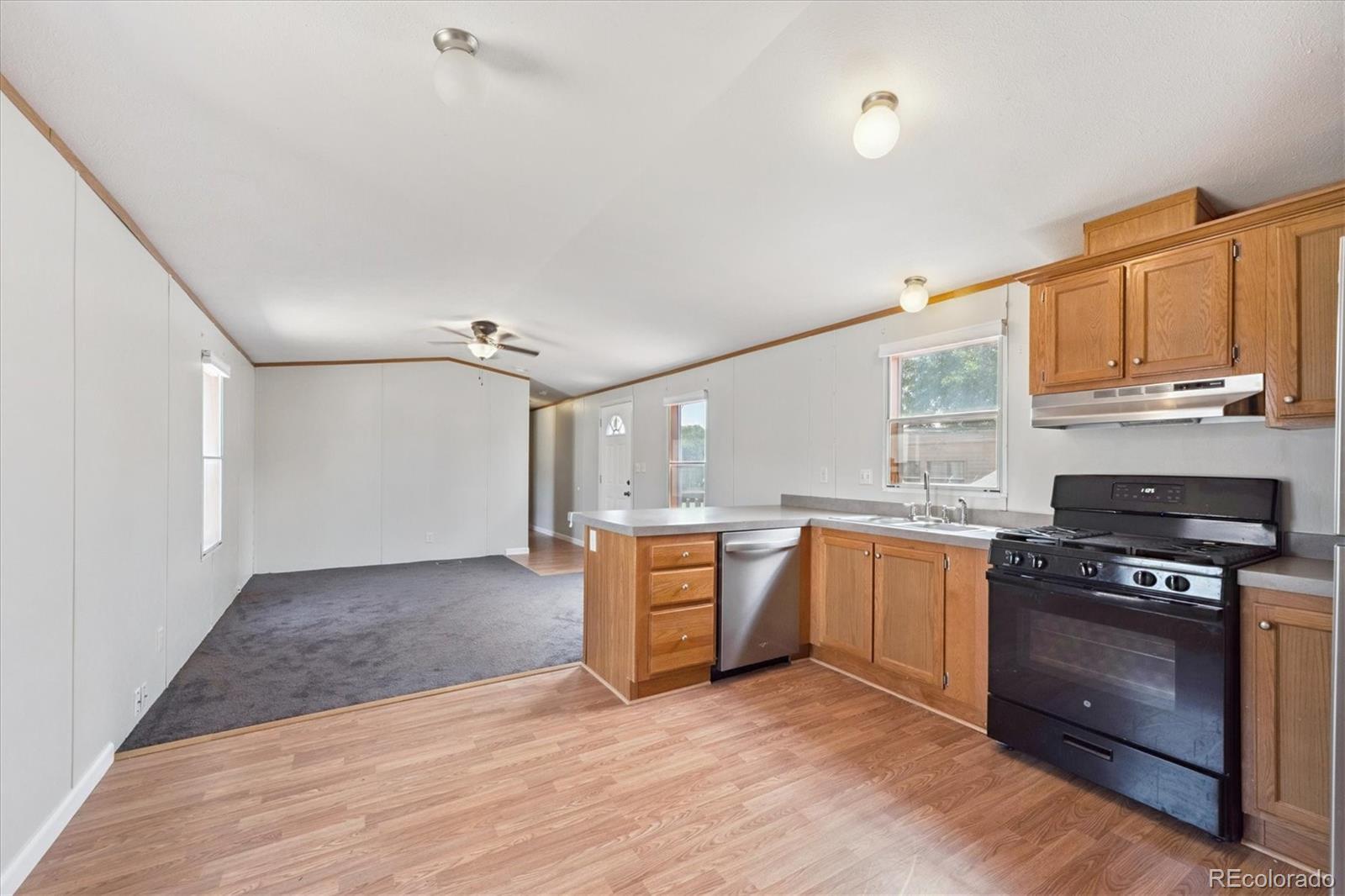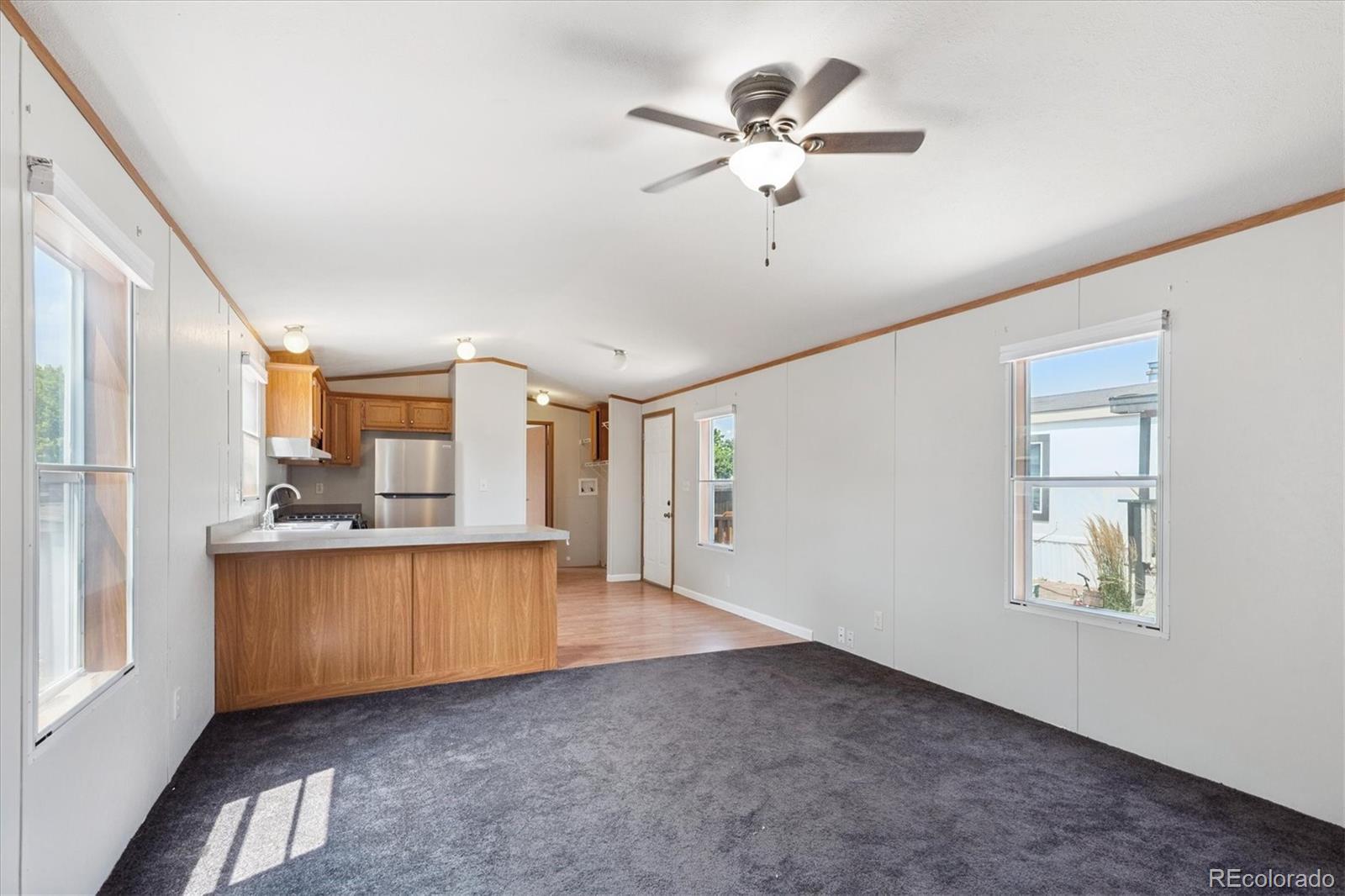 Say hello to this awesome 2012 manufactured home in Casa Estates MHC! It sits on a nice lot with a storage shed, long driveway, and great curb appeal. Located in the Adams 12 Five Star School District, this home also comes with access to awesome community amenities like the pool, playground, and clubhouse! Inside, you’ll find a bright and comfy family room with vaulted ceilings, carpet throughout, and a ceiling fan to keep things cool. The eat-in kitchen is just off the living space and features laminate floors, all appliances included, plus a peninsula for extra barstool seating—perfect for quick meals or hanging out. NEW QUARTZ COUNTERTOPS JUST INSTALLED! The primary bedroom has soft carpet and double closets for extra storage, and it’s right next to a full bathroom with a shower-tub combo and single-sink vanity. On the other side of the home, you’ll find two more bedrooms with the same cozy carpet and another full bathroom with the same great setup. Window coverings are included too, which is always a bonus. There are also washer and dryer hookups to make laundry easy. Whether you’re buying your first home or just looking for a low-maintenance xeriscaped lot to call your own, this one is worth a look. Seller will provide you a new TV after you close.