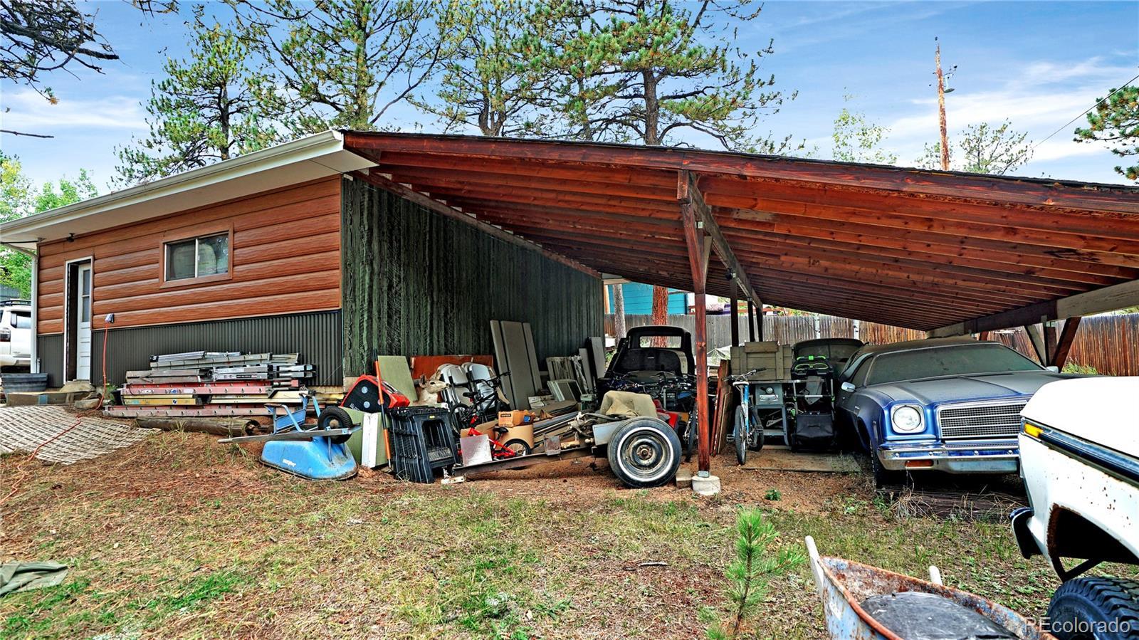Welcome to 183 Bartimous Rd, a one-of-a-kind property in the heart of Harris Park. This mountain home sits on a flat, usable lot surrounded by abundant aspen groves and old-growth ponderosa pines, offering both natural beauty and everyday comfort. Inside, the home is bright and welcoming, with great natural light throughout and ample storage, including two closets in the primary bedroom. The kitchen has been updated with new LED lighting, and the home offers three heat sources: LP forced air, electric baseboard, and a cozy woodstove that keeps the house warm and comfortable even during the coldest Colorado days. The property also features an oversized two-car garage with finished, insulated walls, a floor drain for easy cleanup, and a chimney already installed for a future fireplace if desired, along with a four-car carport for additional covered parking. Recent updates include fire-rated steel siding with added insulation value, freshly painted exterior windows (in progress) and garage doors, and new TREX composite decking with an aluminum railing system on the way. The southern exposure driveway makes for easy year-round access, even in the heart of winter. The property includes an owned propane tank and a concrete slab for an additional 500-gal. tank if desired. Life in Harris Park comes with unique perks, including access to three private ponds reserved for residents, as well as community events throughout the year like July Kids Fishing Derby, Trunk-or-Treat, and more. Families will enjoy the new playground located west of the church, which offers awe-inspiring mountain views, and outdoor enthusiasts will appreciate the shooting range, 4-wheel drive trails, and close proximity to Pike National Forest access points for hiking, hunting, and exploring. With abundant birds and local wildlife right outside your door, this property is more than a home, it’s a lifestyle. Check out the virtual tour and call for your personal showing today!