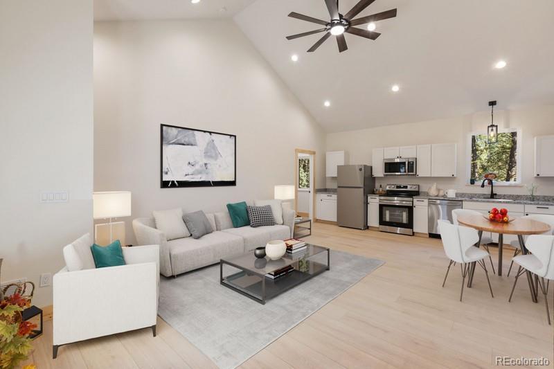 NEW CONSTRUCTION! This beautiful home offers 3 spacious bedrooms and 2 bathrooms, thoughtfully designed around a light-filled great room that seamlessly connects the kitchen, dining, and living areas. Nestled on a serene, treed lot, you’ll love relaxing on the large covered front porch or stepping out onto the rear deck conveniently located off the laundry room. With the granite kitchen countertops and the convenience of the master suite on the opposite side of the home, away from the secondary bedrooms, this home has a lot to offer. Set on a generous .58-acre lot, the property provides both privacy and easy access—just a quick drive to historic Cripple Creek & Victor or a short trip to some of Colorado’s premier ski slopes. Built with quality in mind, this home features 2x6 solid construction, has hand-peeled logs on the front corners of the home that gives it that rugged feel, natural gas to the home (No Ugly Propane tank), a large, welcoming front porch with double front door entry, and a stylish stucco exterior for lasting beauty. A Radon test was conducted and passed by the Builder.