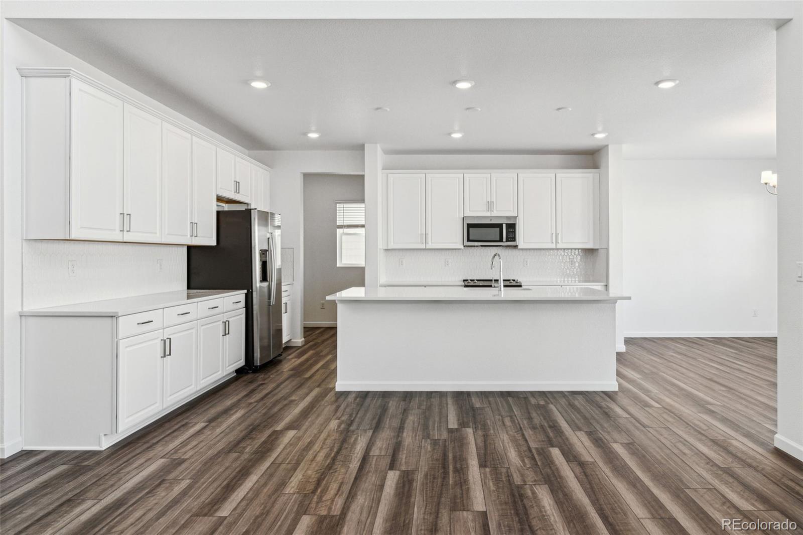 New Construction – Ready Now! Welcome to the Ridgway at 16651 W 93rd Avenue in the Explorer Collection at Trailstone, a community celebrated for its scenic mountain views, extensive walking trails, and resort-style amenities like a pool and pickleball courts. This contemporary, family-inspired floorplan features an expansive kitchen with an eat-in island and walk-in pantry flowing into a cozy dining area. A versatile flex space near the entry is perfect for a study, playroom, or multi-purpose use. Volume ceilings in the great room add brightness and openness for entertaining. Upstairs offers a private primary suite, spacious loft, and two additional bedrooms. Included are a two-car garage, laundry room, refrigerator, washer, dryer, and blinds. Additional highlights include: covered outdoor living, modern fireplace, tub and shower in primary bath, 8-foot doors on main level. Photos are for representative purposes only. MLS#8520562