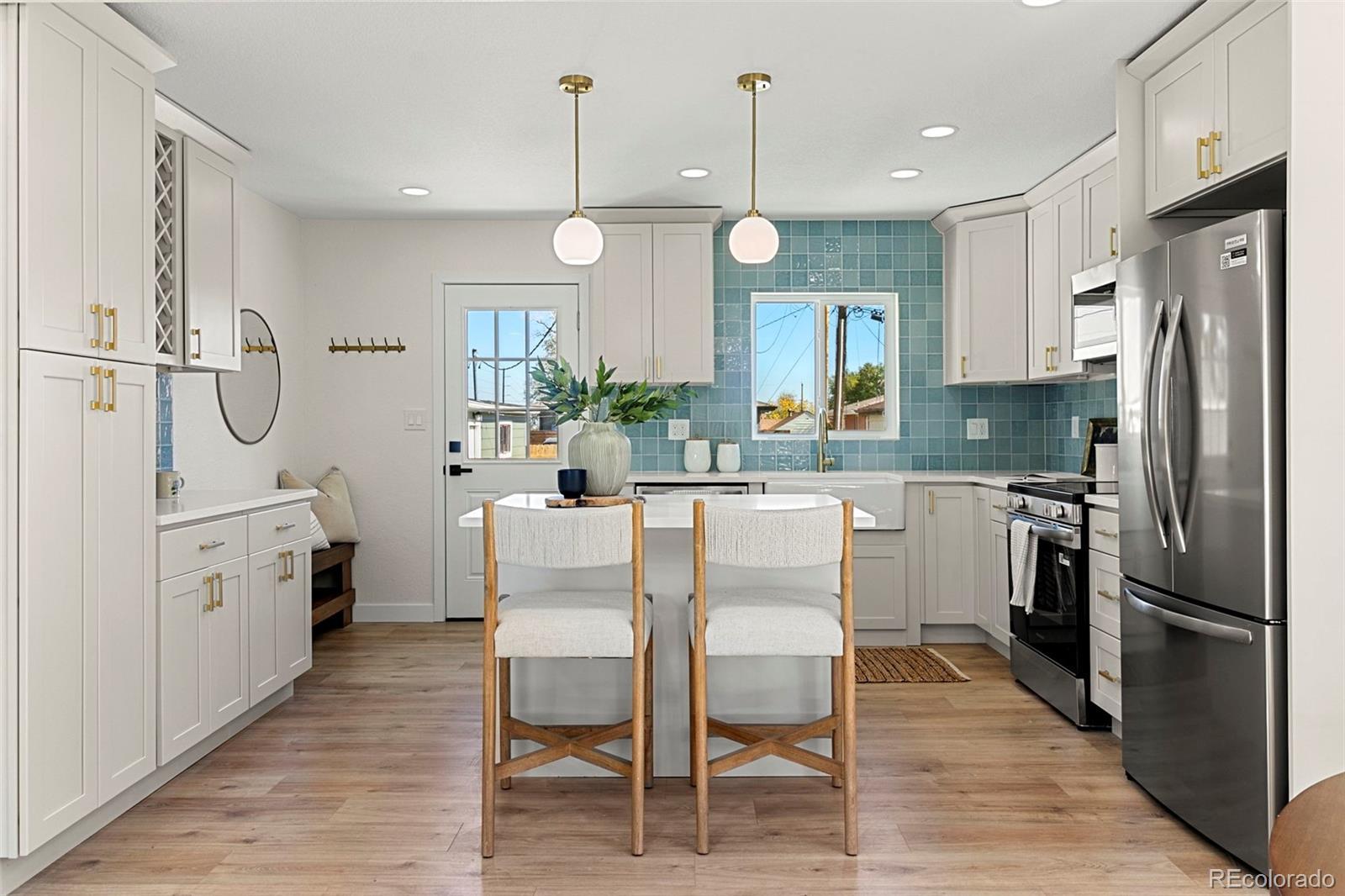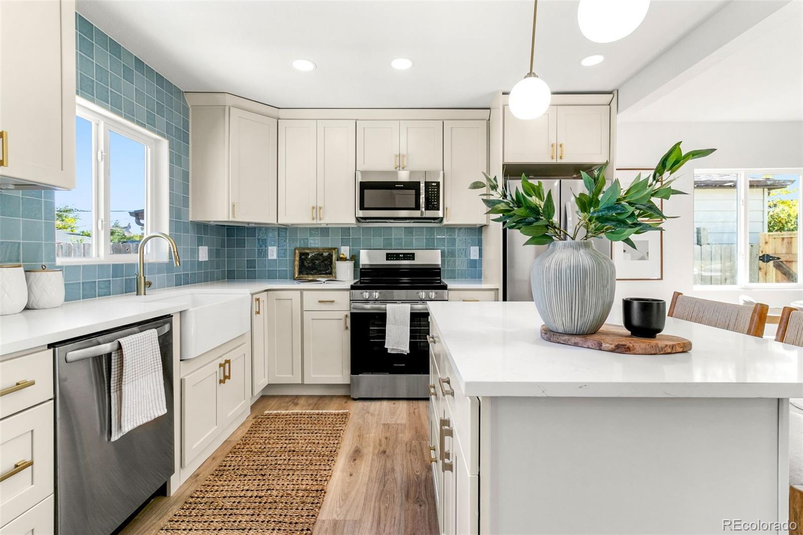$10,000 INCENTIVE FOR RATE BUY-DOWN, 2-1 BUY-DOWN, OR CLOSING COSTS WITH PREFERRED LENDER! Welcome to your beautifully remodeled dream home in Villa Park! This stunning property was taken down to the studs and rebuilt with no expense spared. Step inside to an open-concept layout that feels bright, spacious, and perfectly designed for modern living. The primary suite is a true retreat, featuring an en suite bathroom with a double vanity, an expansive walk-in closet, and abundant natural light. Every detail has been thoughtfully updated, including new plumbing, electrical, furnace, A/C, sewer line, and stainless steel appliances, offering peace of mind and comfort for years to come. Step out back to take in views of the Denver skyline from your brand-new concrete patio. The backyard is freshly landscaped with a new irrigation system, lush grass, and a cozy fire pit area, ideal for entertaining or relaxing under Colorado skies. A large detached 2-car garage adds extra storage and convenience. All this, just 10 minutes from downtown Denver, one mile from Sloan's Lake, one block from the Dry Gulch Trail, and steps from a brand-new park near completion, perfect for kids, families, and dogs!