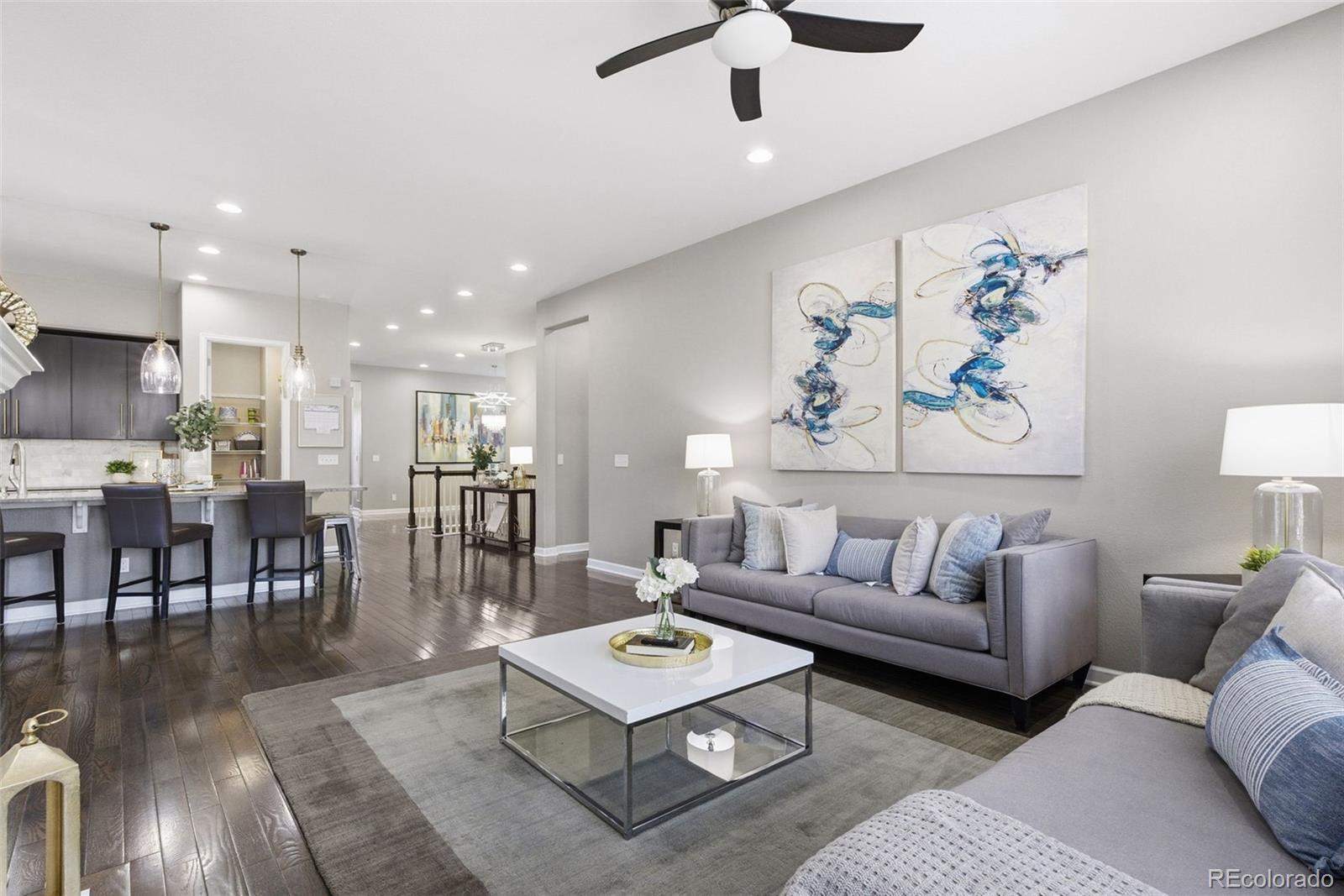GORGEOUS ranch-style home offers a blend of elegance and functionality!!! Beautifully maintained and thoughtfully designed, this 4-bedroom, 3-bath home features an expansive open floor plan complemented by gleaming granite counters, a captivating backsplash, 10’ ceilings on the main floor, luxurious wood floors, exquisite dark cabinets, and updated lighting throughout the home that enhances its modern feel and warmth. This home is PERFECT for entertaining sizable gatherings with the large kitchen island. The kitchen overlooks a spacious living room featuring a cozy gas fireplace, perfect for those snowy Colorado nights. Retreat to the beautiful primary suite with a spa-like bathroom featuring quartz countertops, double sinks, a walk-in shower, and a custom-built closet!! You will love the fully finished basement featuring two large bedrooms with spacious walk-in closets and the perfect-sized family room- ideal for movie nights, a playroom, or your dream workout area. Step outside to discover the tranquility of the low maintenance xeriscape backyard with beautiful landscaping and enjoy the charm of the stone patio at the main entrance - both perfect for outdoor entertaining! The backyard showcases beautiful mature trees, creating a secluded and private setting you will truly appreciate. The home also includes an EV hook-up in the garage for added convenience. Live in this amazing community with a beautiful clubhouse, pool, parks, trails, basketball courts and located within the highly desirable Cherry Creek School District! Situated right off E-470, you are just minutes from Aurora Reservoir, Southlands Mall, and only 20 minutes from DIA. Plus, a brand-new King Soopers Marketplace is currently under construction in the Copperleaf neighborhood- just 5 minutes or less away! Don’t miss this incredible opportunity to own this stunning home!