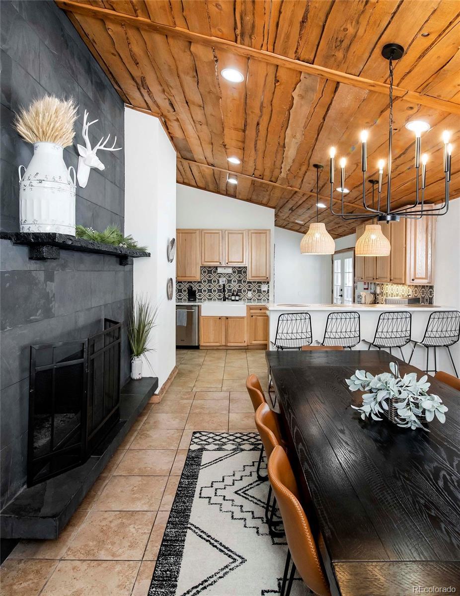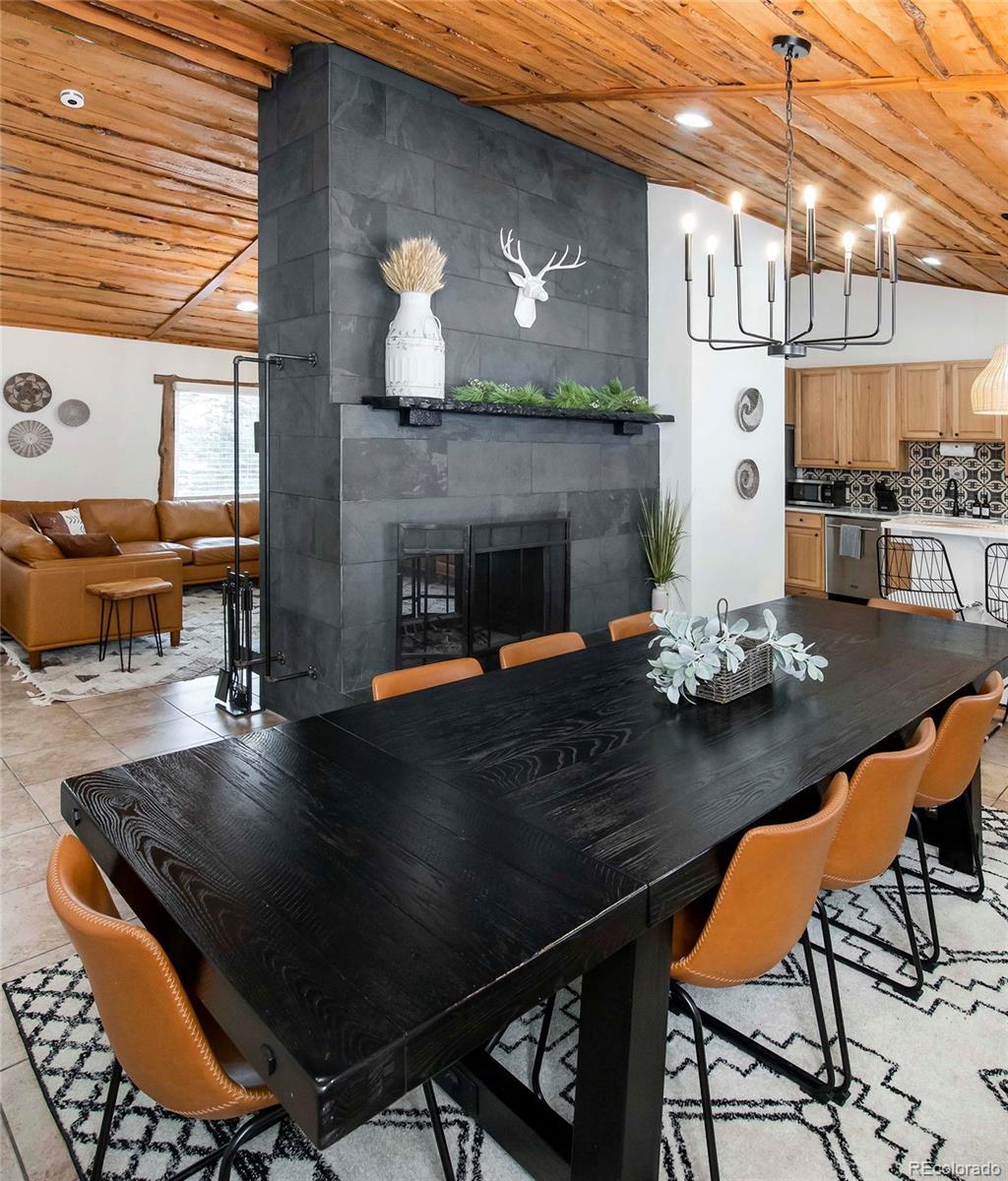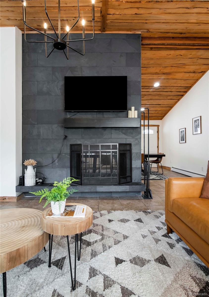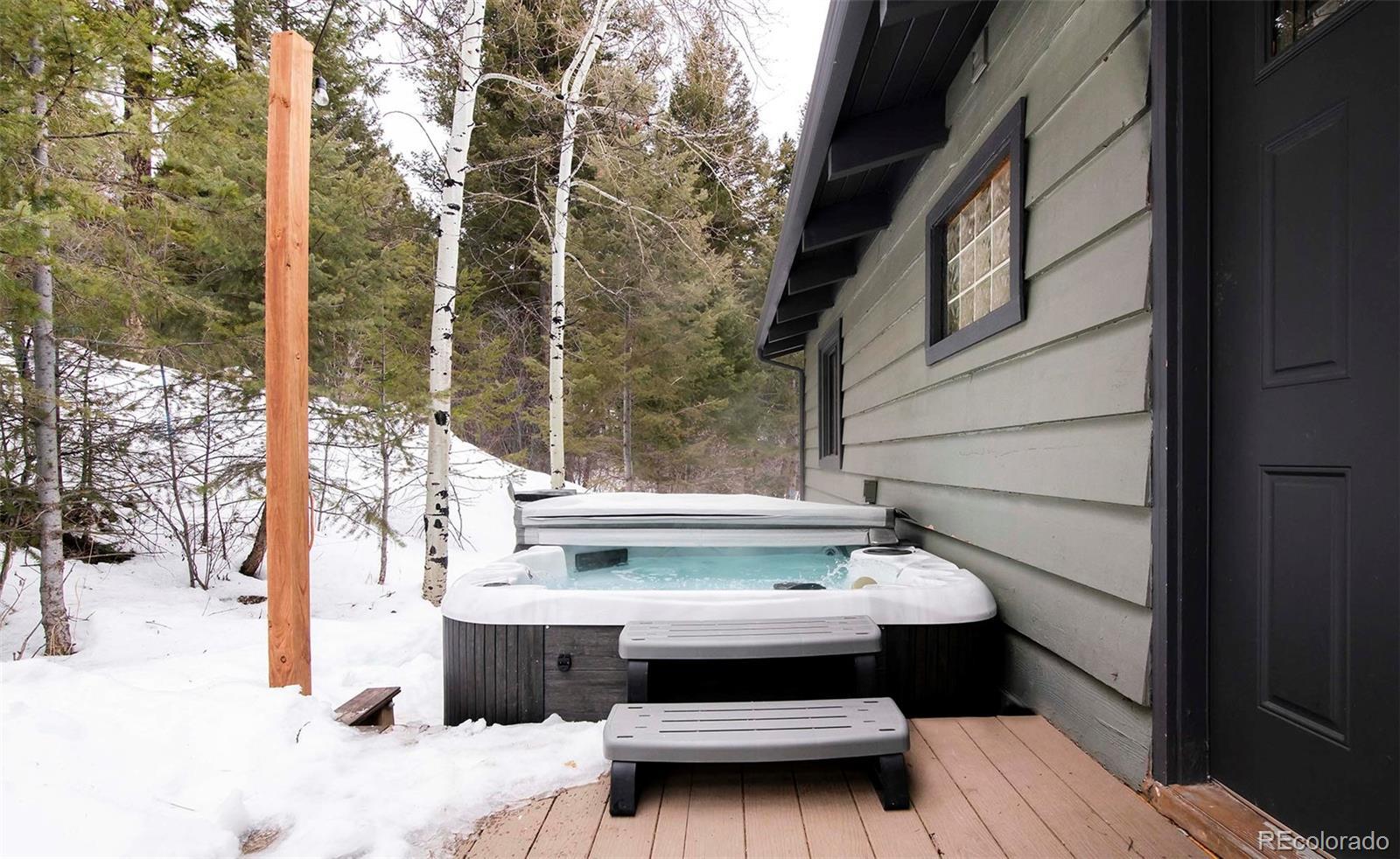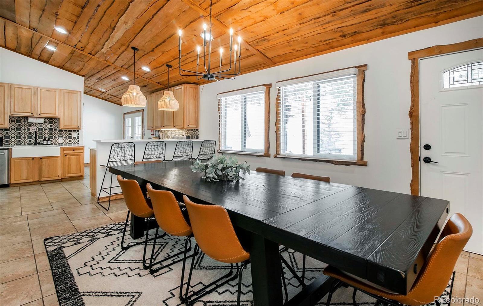 Experience stylish mountain living on 3+ acres just 30 minutes from Denver. Raw edge wood ceilings emanate a woodland atmosphere while a chic double-sided fireplace connects the living space to the formal dining area. Ample space to entertain is found throughout — from a renovated kitchen with high-top seating to an additional dining nook immersed in natural light. Each upper-level bedroom is a brightly lit escape nestled beneath vaulted ceilings and equipped with timeless shared bathrooms. Retreat to the lower level to discover a continuation of the upper-level fireplace, expansive recreation/leisure areas and additional guest spaces. For more entertaining possibilities, wander into the garage — where three full-size basketball hoops and a sauna await. Dining and relaxing al fresco is a breeze on a wide back deck complete with a hot tub and surrounded by a serene forest. An accessible location brings residents closer to both the amenities of the city and the adventure of the mountains.