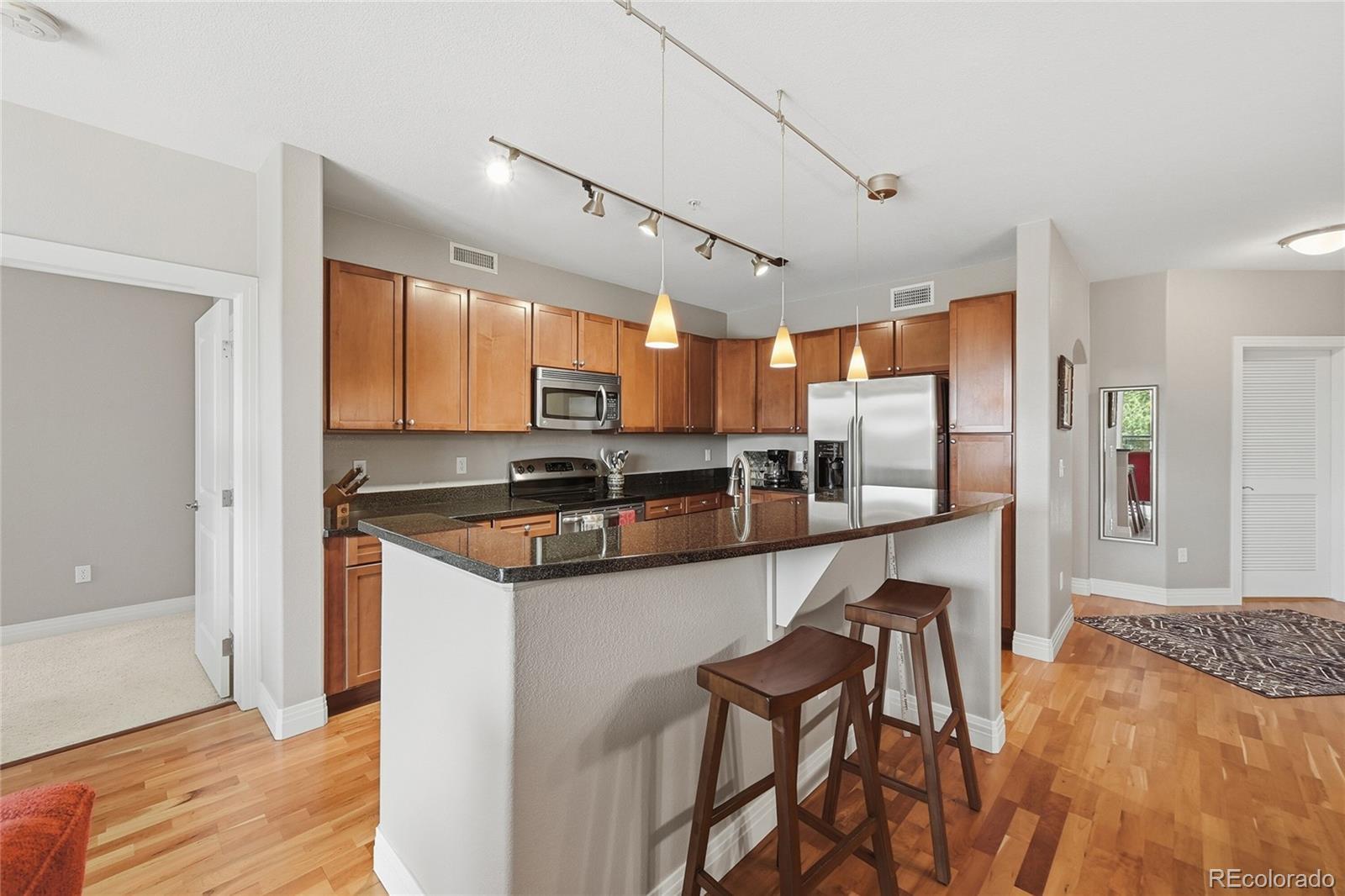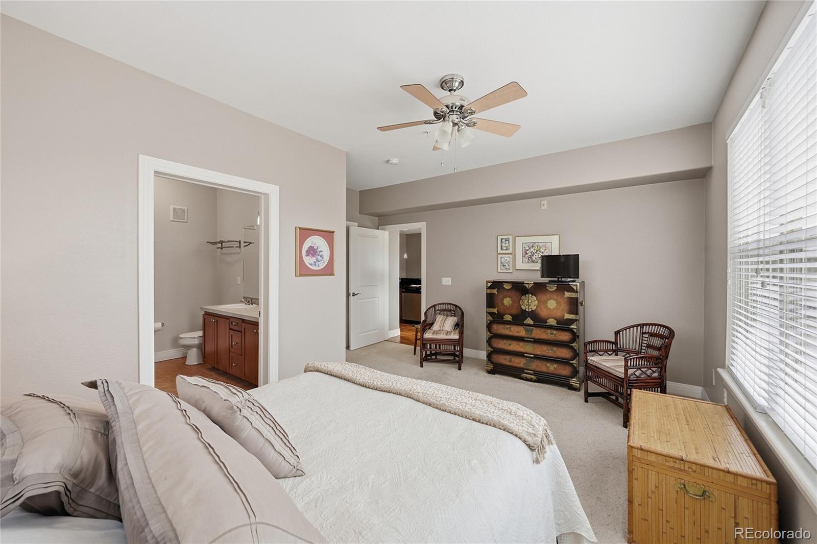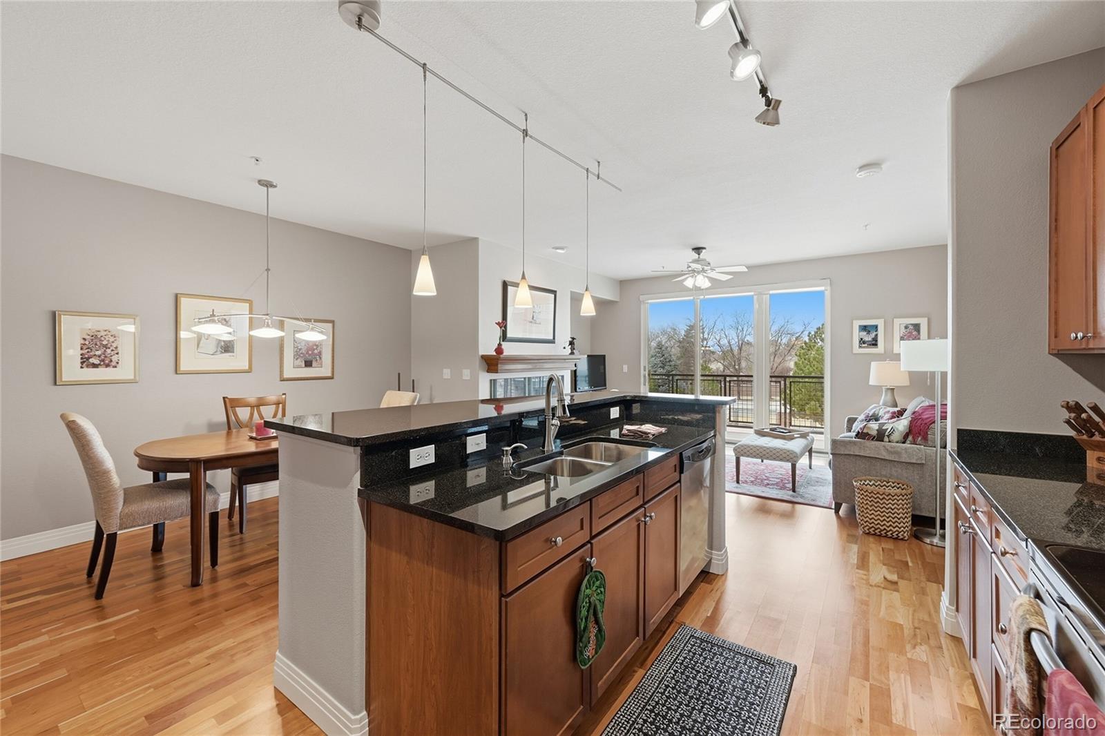 Spacious and beautifully maintained, this 3-bedroom home is ready to impress. The large entry welcomes you into an open and airy floor plan that sets the stage for comfortable living. At the heart of the home is a kitchen designed for gathering. Featuring ample cabinetry and a large island with plenty of seating, this space seamlessly connects to the dining and living areas, making it perfect for entertaining friends and family. Enjoy the west-facing views through large sliding doors that open to a generous deck, offering stunning mountain views. The thoughtful layout ensures great separation of spaces, with the primary suite located at one end of the unit, while the two secondary bedrooms with a shared bath are tucked away at the other end. Plus, there’s no shortage of storage, with numerous closets throughout and a full laundry room. Truly move-in ready, this well-maintained home has a recently painted interior, a newer hot water heater, and updated patio doors and windows. The carpets have been recently cleaned, and the fireplace has been serviced. Lovingly cared for by the original owner for 15 years, this home exudes warmth and comfort. You'll also benefit from the association's fantastic amenities, including a large pool and hot tub, a fitness room, meeting rooms, and recreational options like pool and foosball tables. The HOA takes care of maintenance for the common areas and also covers in-unit trash, sewer, water, and gas—true convenience. Enjoy the convenience of underground deeded parking and additional storage, as well as close proximity to I-25 and C-470, shopping, and restaurants.