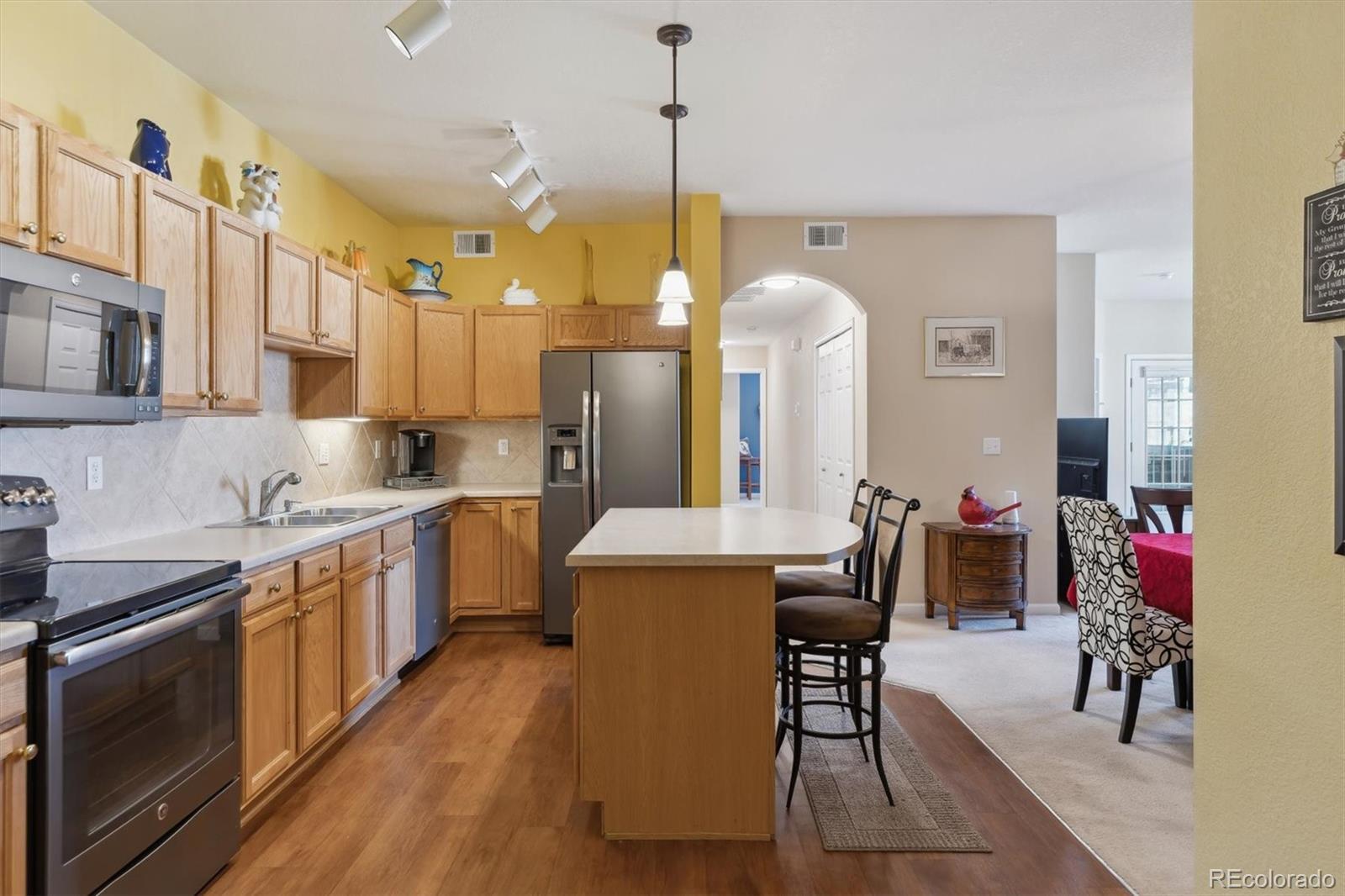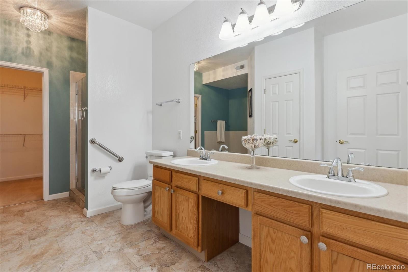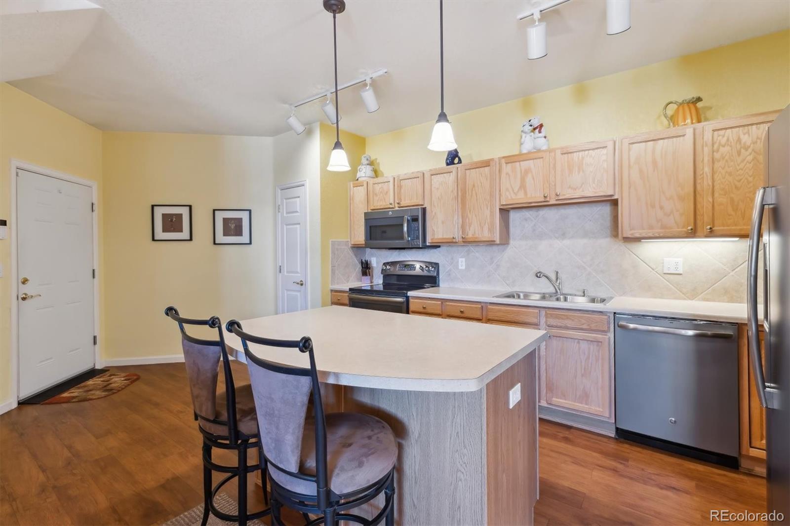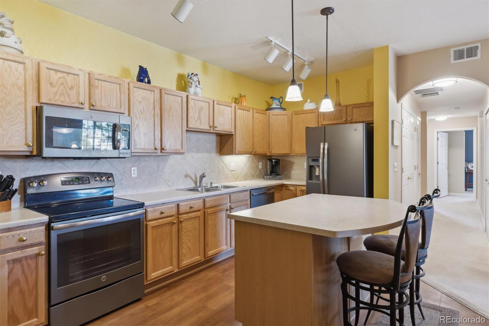 Welcome home to this immaculate three-bedroom, two-bathroom condo in Trailmark! There are zero steps to enter this extremely well-maintained home. This unit has seen immaculate care and thoughtful updates! The floor plan is bright and open. Take in views of the foothills throughout this stunning residence! The kitchen is massive and features beautiful stainless appliances, tile backsplash, laminate flooring, solid surface countertops, pantry and large island with seating. The living room is the perfect space to relax by the gas fireplace and take in the surroundings. A large picture window allows natural light to fill the space. The primary bedroom is light-filled and offers an immense 5-piece primary bath and walk-in closet. The bathroom has been updated with new flooring, new shower tile, a new semi-frameless glass shower enclosure and new fixtures. The patio is located just off of the living room and is covered from the elements. Enjoy your morning coffee in peace or take the views with a drink after a long day. With the zero-step entry and wide doors this home could offer an option for owners utilizing a wheelchair. In addition, Trailmark has miles of walking trails and is also bordered by the Chatfield State Park, providing access to a variety of outdoor activities, including hiking, biking, fishing, and boating. Deer Creek Canyon is just minutes up the road providing additional opportunities for hiking, mountain biking and enjoying the outdoors. Access to C-470 is just minutes away, making travel or you commute very convenient.