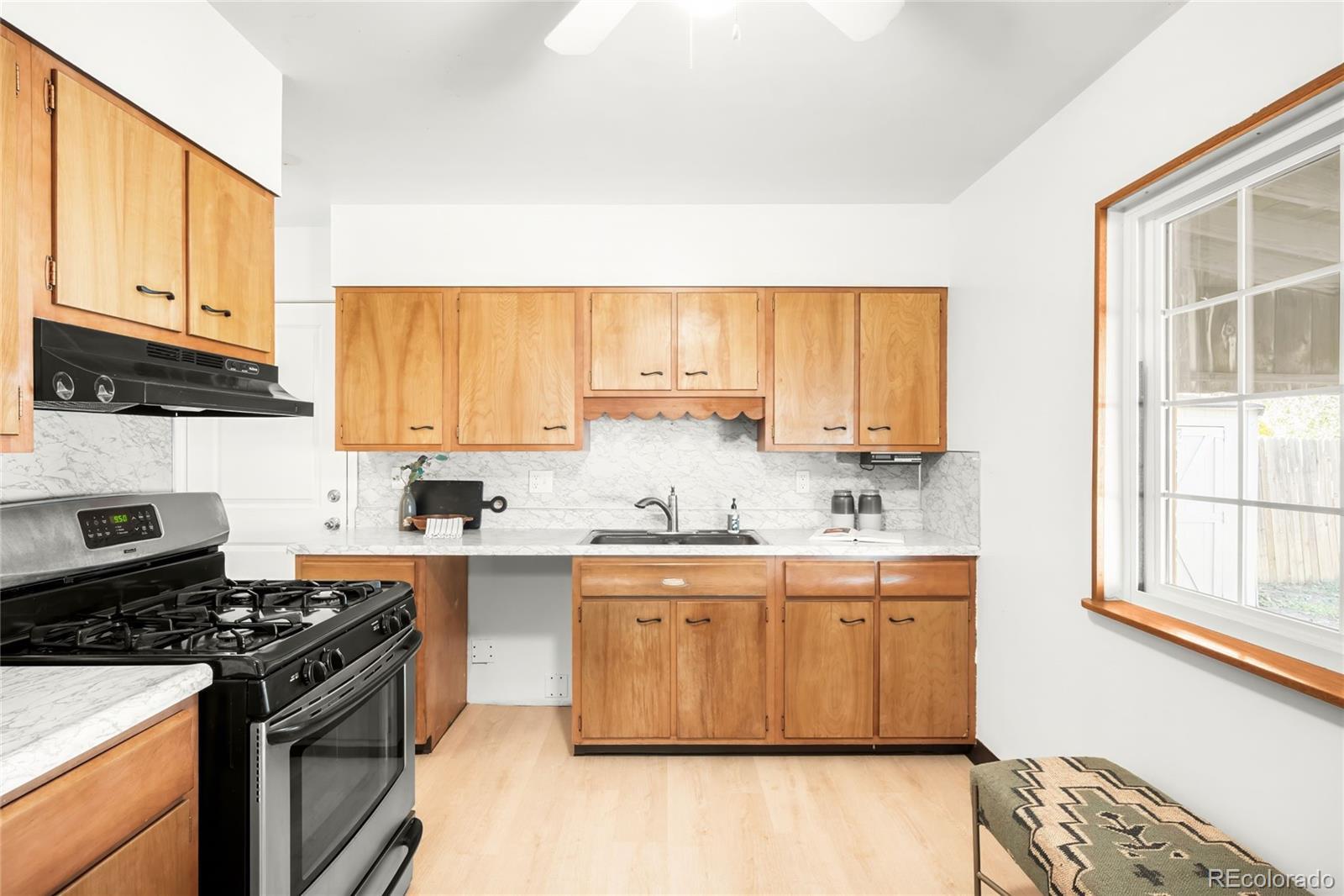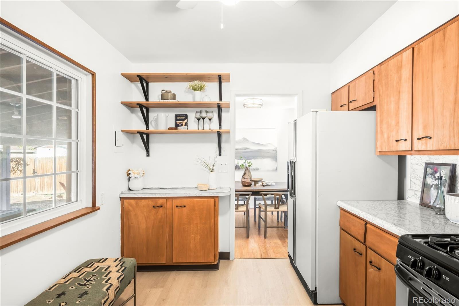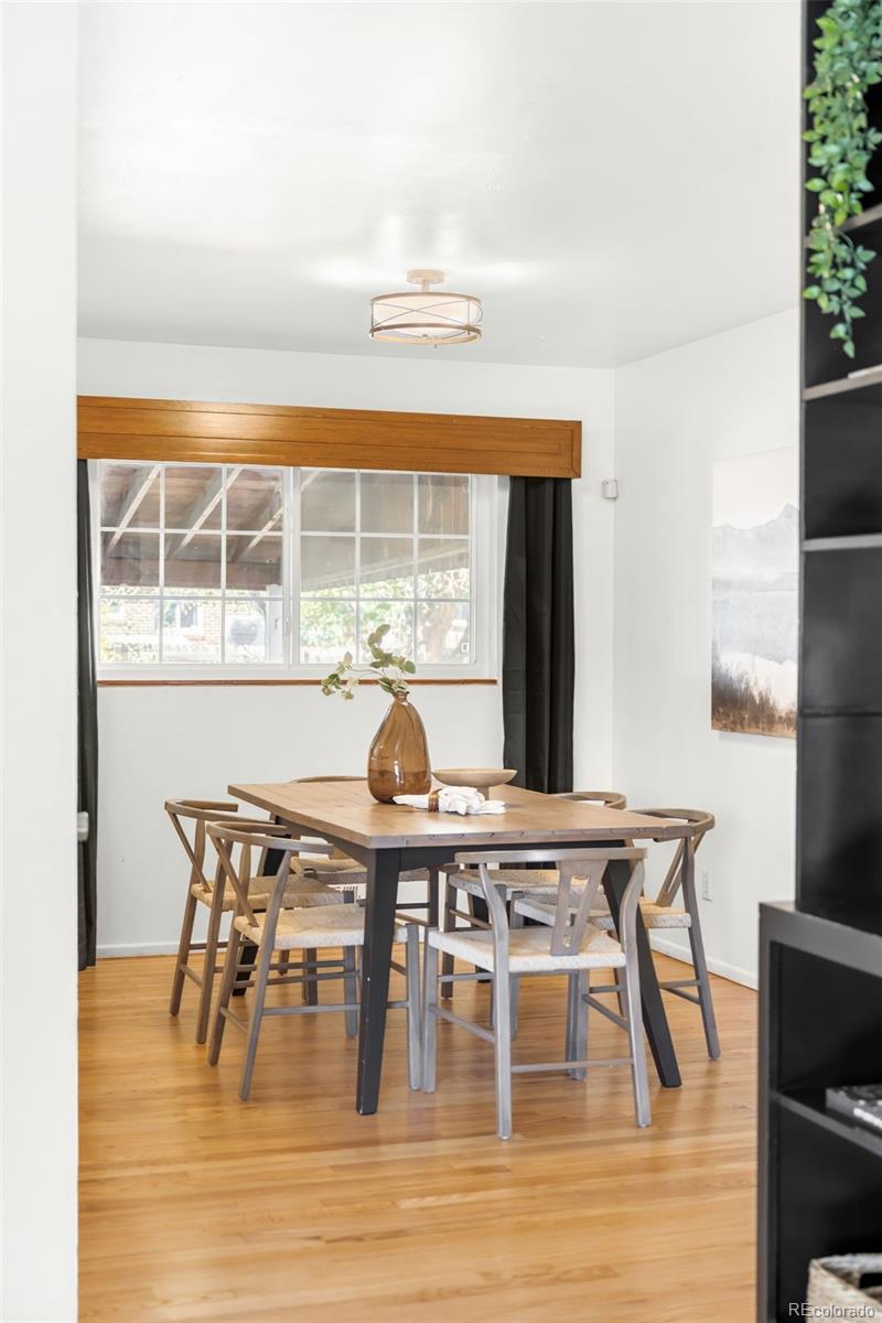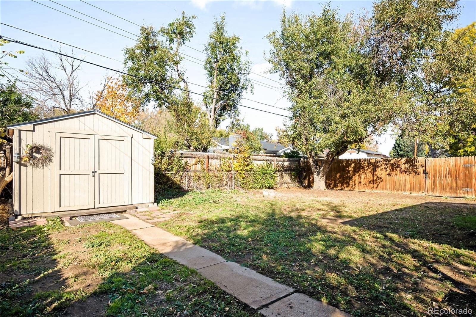 Positioned just a half block from Harvey Park, this charming Denver residence beams with timeless character, thoughtful updates and a rare sense of space. One of the few homes in the area with both a basement and an attached garage, this property provides versatility and comfort throughout. The bright living room welcomes sunlight through a wide picture window, flowing easily into the dining area and a kitchen adorned with warm wood cabinetry and a gas range. Three spacious bedrooms share a full bath, while the finished basement provides additional living space or a guest retreat complete with a ¾ bath. Outside, a large private backyard with a covered patio and storage shed sets the stage for easy outdoor living. Cosmetic updates include fresh interior paint, updated lighting, newly refurbished hardwood floors, and brand-new kitchen floors, enhancing the home’s inviting ambiance. Additional updates include a 4 year old impact-resistant roof under a transferable warranty, and replacement of many of the home’s windows. With no HOA, and the park, lake, recreation center, and pool just steps from your front door, this Harvey Park gem combines peace of mind with classic neighborhood charm.