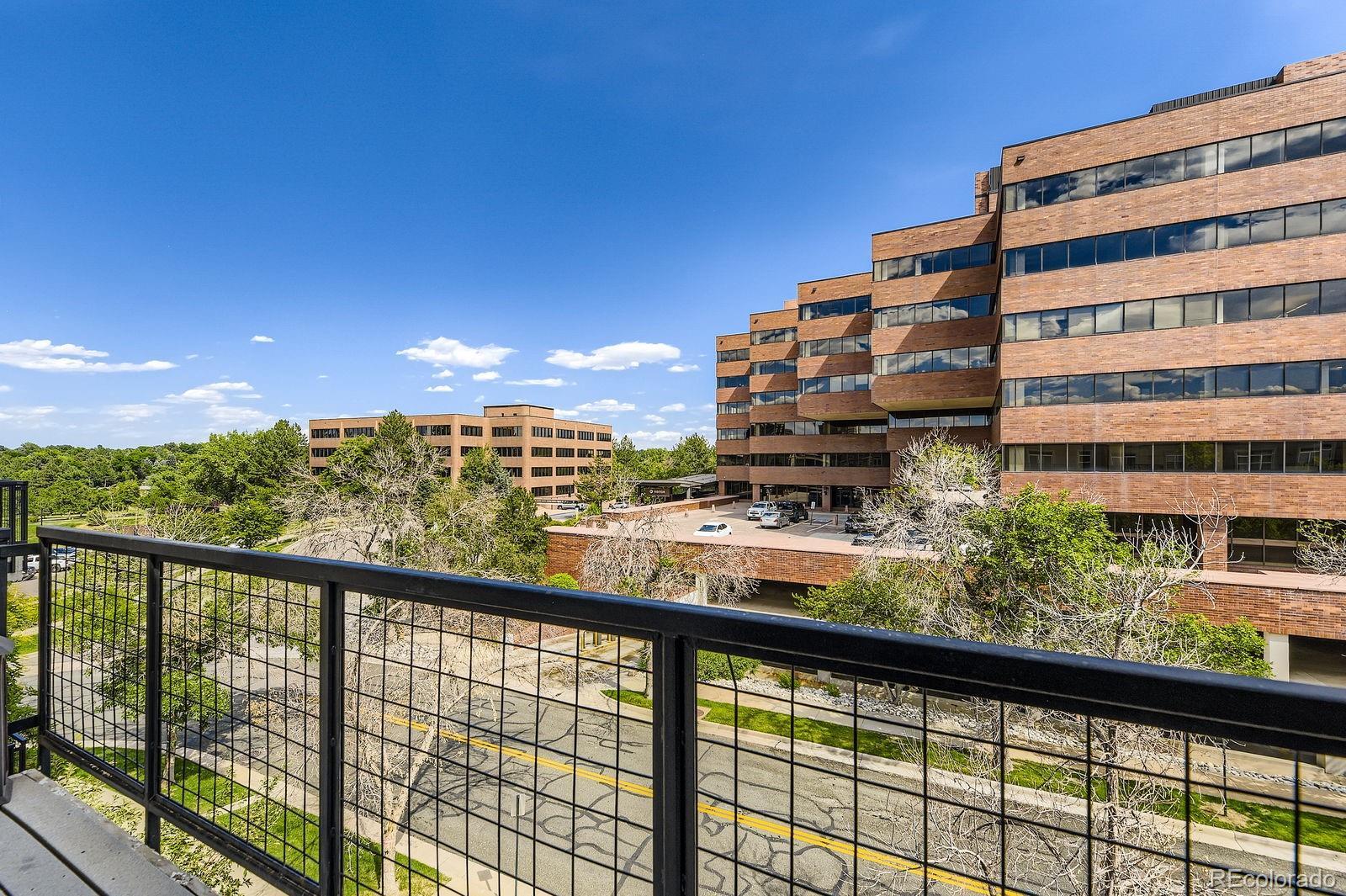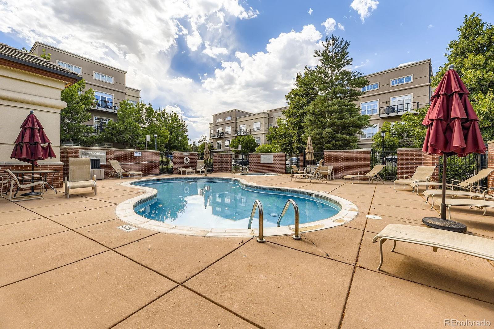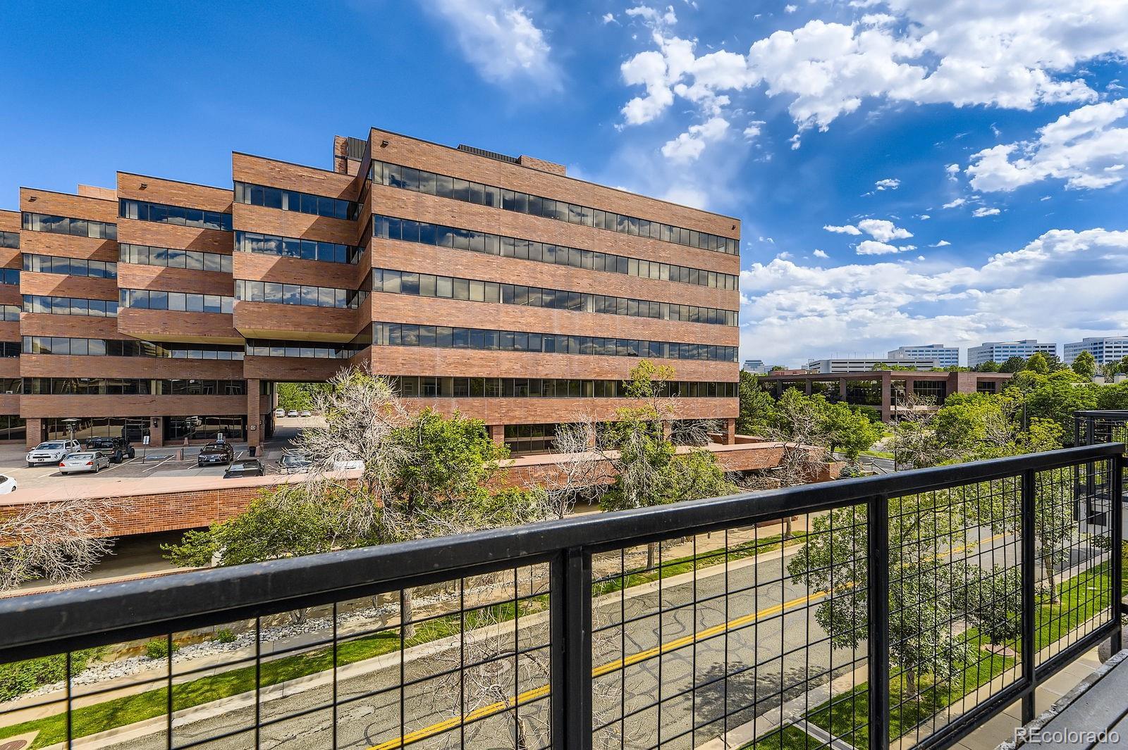 Hurry to this prime DTC location. As you enter this updated top floor condo you will immediately notice the premium finishes. The awesome kitchen remodel includes extended soft close cabinets, granite counters, stainless appliances, island and pantry. The full bathroom has brand new tile installed in the tub/shower and updated granite vanity. There is an entertainment wall in the living area with a built-in feature below that includes additional storage and cushion for reading, relaxing and sleeping. The large glass slider brings in natural light to the open, spacious living area with high volume ceilings. You can exit on to the deck which features a gas grill hook-up. The walk-in utility room features a new HVAC system in 2023, a new water heater in 2020 and a hook-up for a stackable washer/dryer. The secured building with elevator is an alternative to the stairs. Enjoy the clubhouse, fitness area, pool and hot tub. There is a secured heated undergound garage that provides a private parking space with an option to add a storage area if buyer desires. There is additional outdoor parking for guests. Exceptional location with quick access to restaurants, shops, entertainment, I-25, Crescent Park and Goldsmith Gulch Trail. Cherry Creek schools.