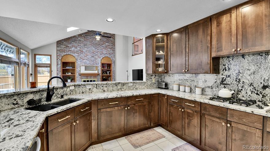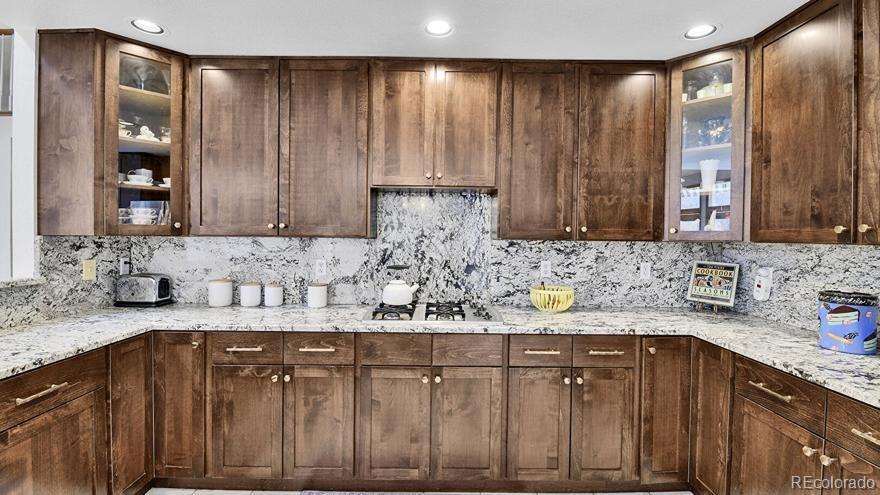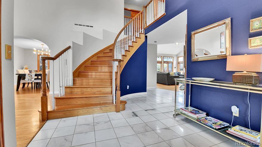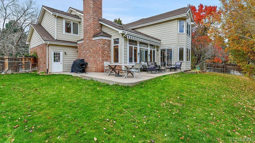Welcome to this beautifully maintained and spacious two-story 5-bed 5-bath home with a finished basement in the prestigious Cherry Creek School District. Enter the home and step onto the marbled foyer. The open formal living room is filled with natural light and flows seamlessly into the formal dining area—perfect for entertaining. The gourmet kitchen boasts elegant marble flooring, granite countertops and backsplash, stainless steel appliances, a gas stove, and a sleek rimless sink. The inviting family room offers plenty of space to gather around the cozy gas fireplace. Main-floor laundry adds convenience. Upstairs, the curved hardwood staircase leads to a large primary suite with a 5-piece bath, built-in shelving, and a walk-in closet. Secondary bedrooms share a Jack-and-Jill bath, and another bedroom enjoys its own private ensuite. The finished basement provides an additional family room, bedroom, full bath with jetted spa tub, and extra storage. Find thoughtful updates throughout, including newly refaced kitchen, main bath, and master bath cabinets, new tile in the master shower and Jack & Jill bathroom, and newer carpet and interior paint that make the home feel fresh and inviting. The original natural wood doors and trim add timeless charm and warmth throughout. Outside, you’ll love the new 6-ft partition fence offering added privacy in the backyard—ideal for entertaining or peaceful evenings outdoors. This home blends classic character with modern touches, creating a truly move-in ready retreat in a desirable neighborhood close to parks, schools, and shopping.