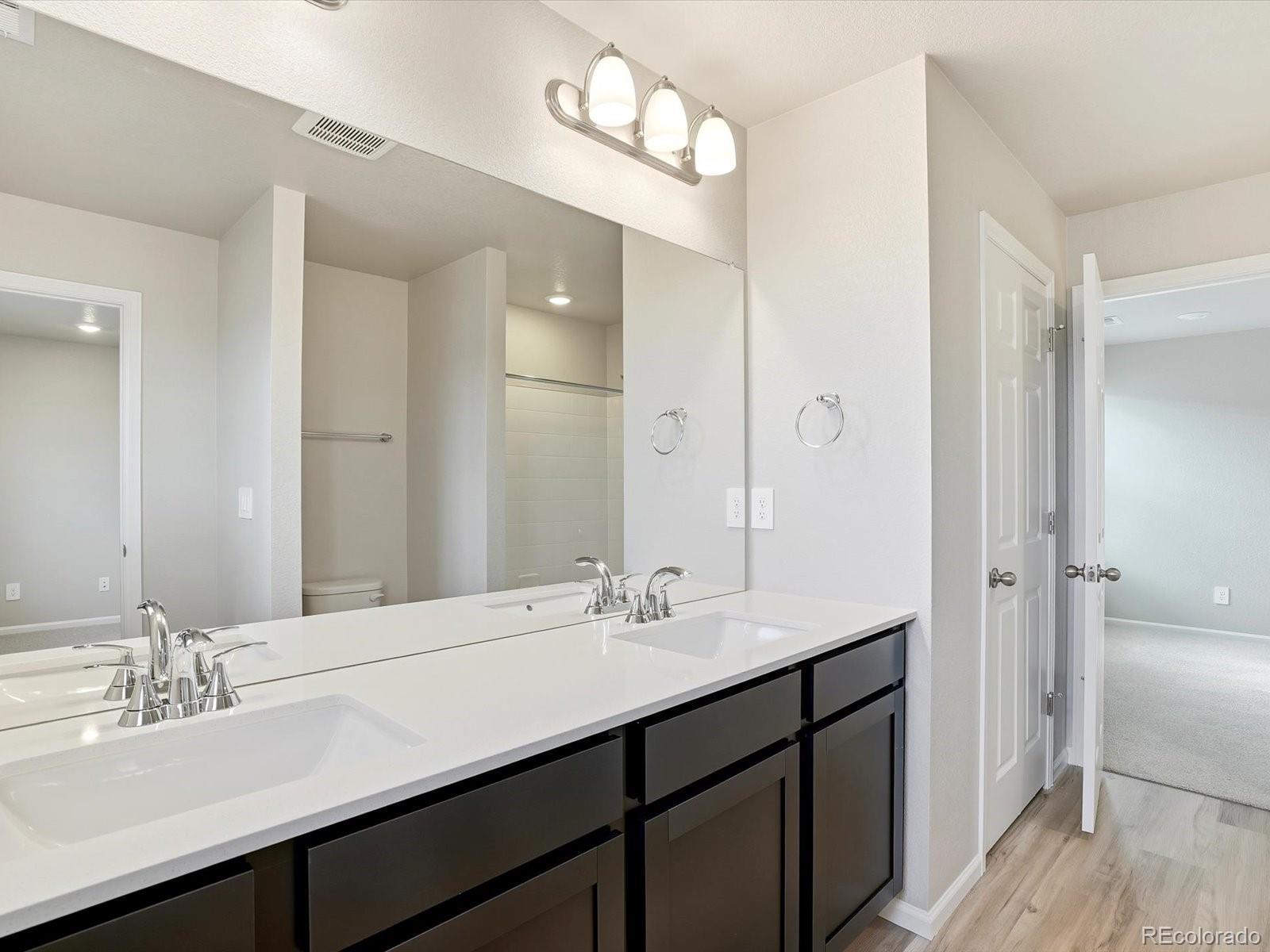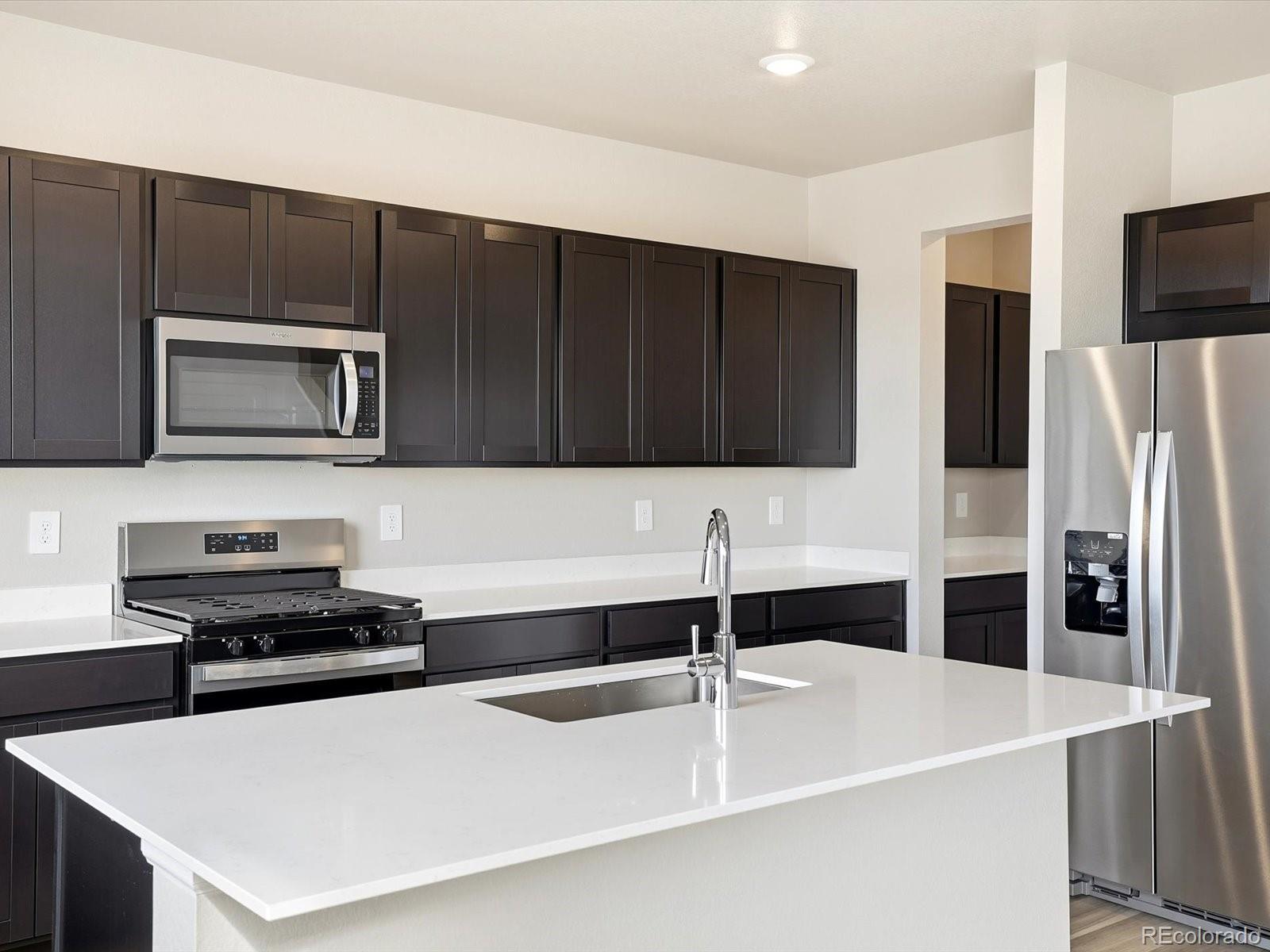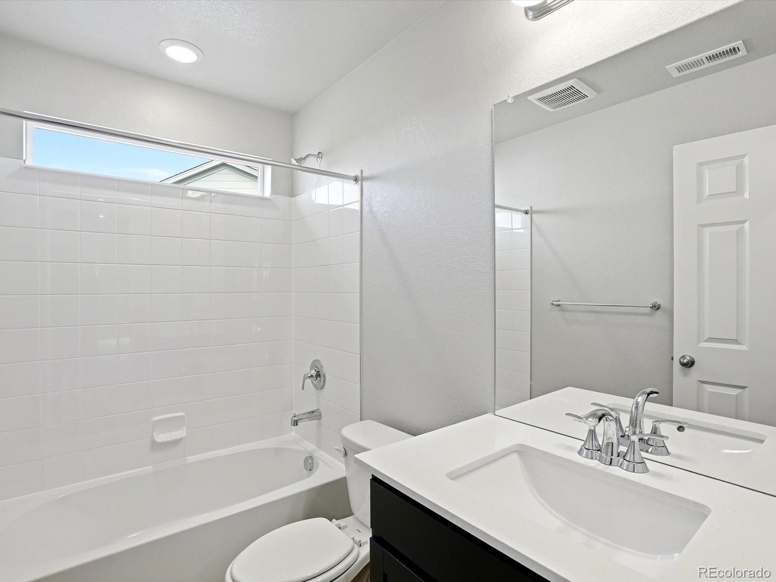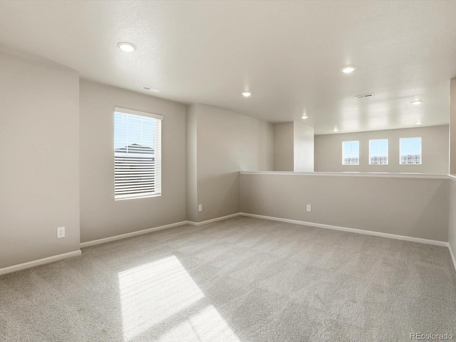 Basement for future customization and storage! 3 car garage! Fireplace in great room! Open concept kitchen with quartz countertops and espresso cabinets! The Golden Gate is a spacious two-story home featuring an open-concept kitchen and dining area, a versatile loft, and a private primary suite. With four bedrooms, 3.5 baths, and a three-car garage, this design blends style, comfort, and functionality. The Meritage Home difference includes spray-foam insulation, advanced air filtration for year-round comfort and healthier air, and durable cementitious siding known for its strength, fire-resistance, and long-lasting performance. A Whirlpool appliance package, and full home blinds are also included for move-in convenience. Welcome home where every detail is built for comfort, efficiency, and LIFE. BUILT. BETTER. Buffalo Highlands in Commerce City offers scenic trails, quick access to Downtown Denver and DIA, and nearby attractions like Barr Lake and Buffalo Run Golf Course. With easy connectivity via E-470, I-76, and RTD, this community blends convenience and outdoor living. *This home qualifies for special incentives through builder preferred lender for a limited time. Terms and conditions apply. See sales counselor for details!
