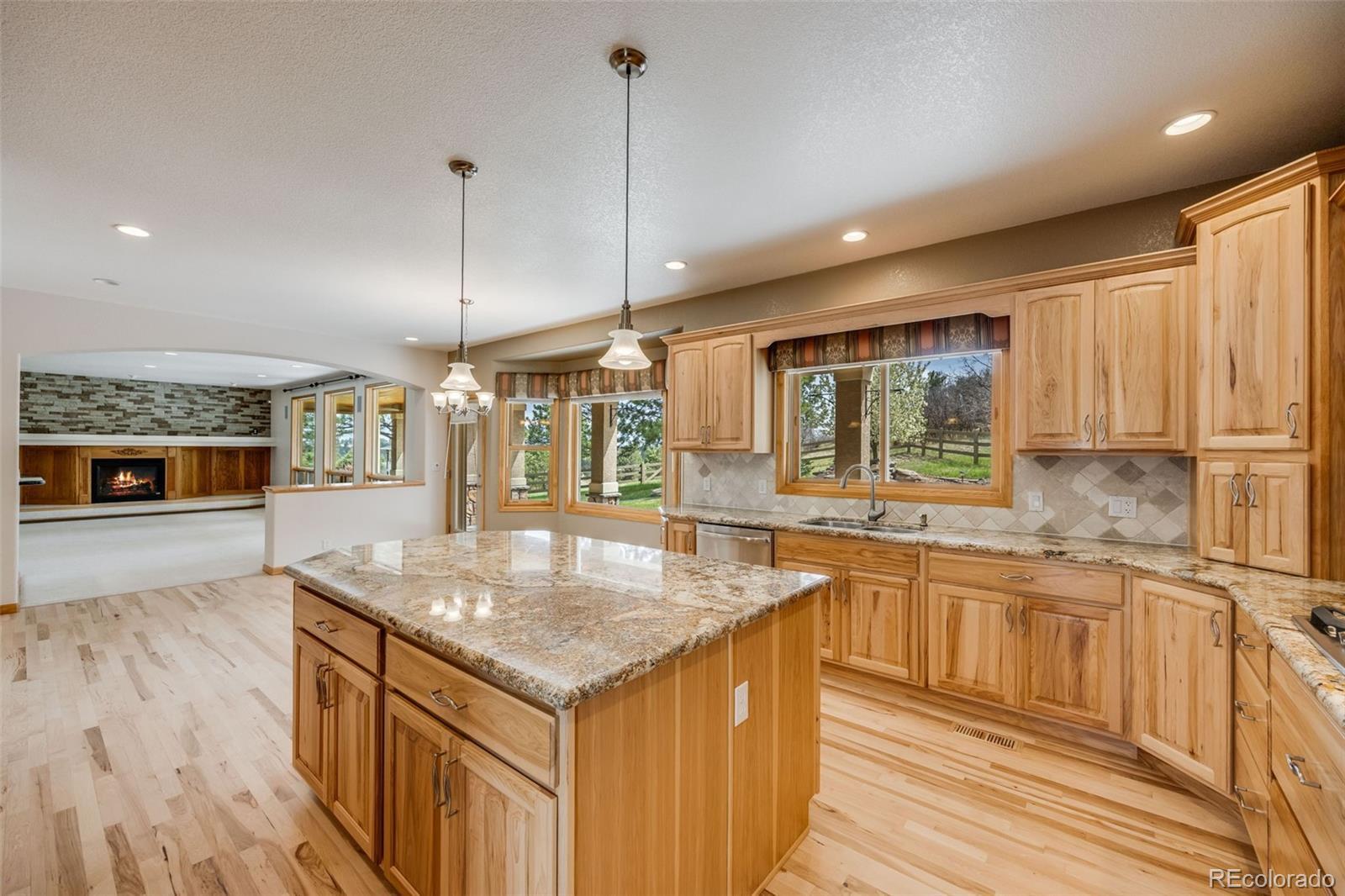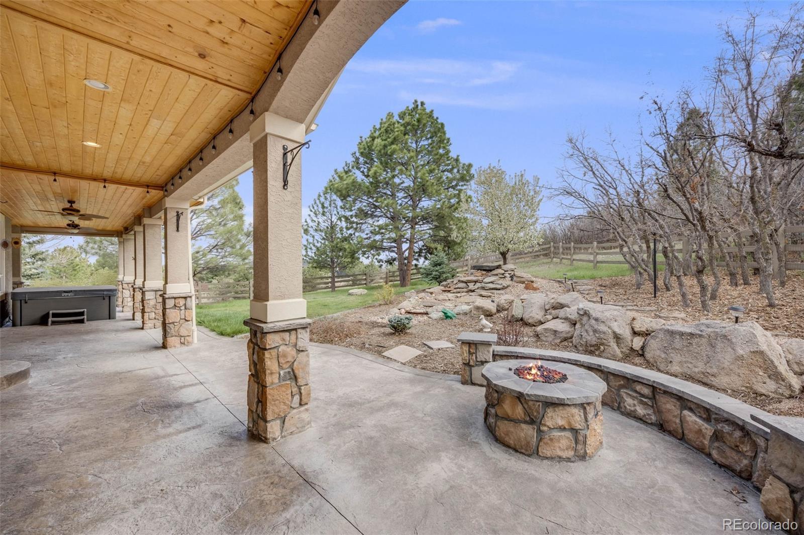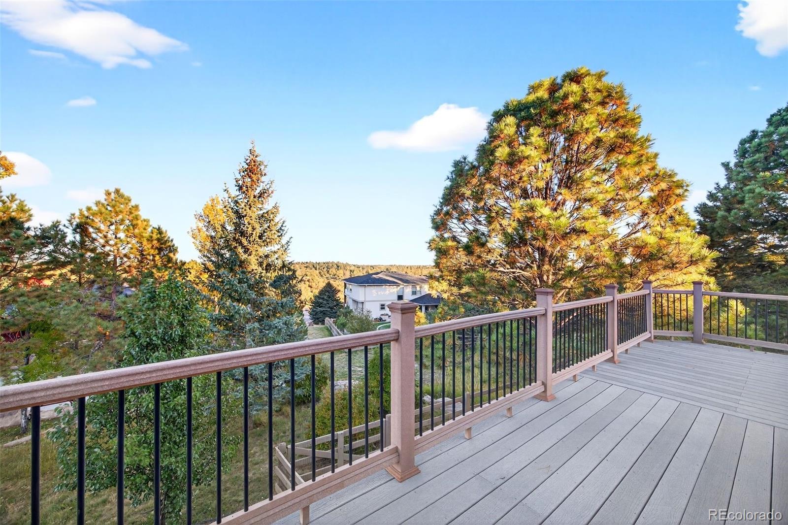 Perched on nearly an acre with breathtaking views, this exceptional 5-bedroom, 5-bath custom home in Castle Rock combines luxury, privacy, and convenience. The interior features a spacious family room and dining area, while the upgraded kitchen is a chef’s dream with stainless steel appliances, custom cabinetry with soft-close drawers, a gas cooktop, double ovens, a walk-in pantry, an oversized slab granite island, and freshly refinished hardwood floors. The family room boasts a wet bar ideal for entertaining, and a private office with custom French doors offers versatility. Modern amenities include dual water heaters, dual AC units, a whole-house fan, a wireless alarm system with Blink cameras, two built-in safes, and a central vacuum system. Upstairs, the primary suite is a serene retreat with a spa-like bathroom and a generous walk-in closet. Two additional bedrooms each feature en-suite bathrooms with slab granite counters and access to a shared walk-around deck. A spacious loft with a second wet bar adds flexible living space, complemented by three gas-log fireplaces throughout the home. The professionally finished basement offers high ceilings, a game area, two bedrooms (or one can serve as an office), a full bath, and a pool table (included). Car enthusiasts will appreciate the 5-car garage with two oversized doors and Wi-Fi-enabled openers, plus additional driveway parking. Outside, enjoy a fully fenced backyard with a pond-less waterfall, gas fire pit, gas grill hookup, and a newer hot tub (included). Relax on the oversized covered patio with DEK Drain system, stamped concrete walkways, and lush landscaping. Located on a picturesque street and priced below appraised value, this home presents an outstanding opportunity to embrace the ultimate Colorado lifestyle.