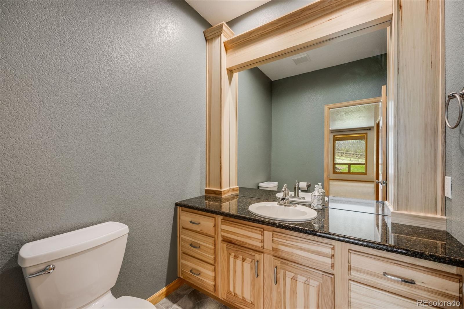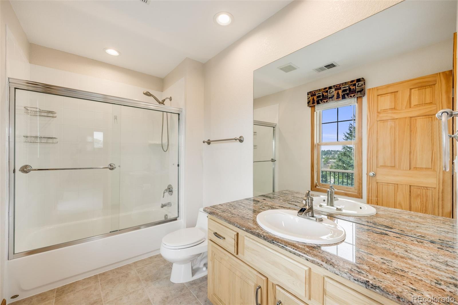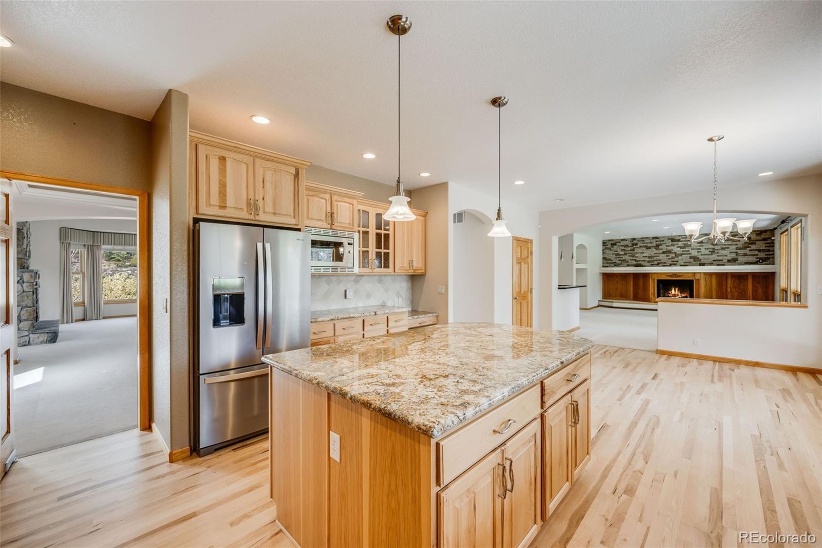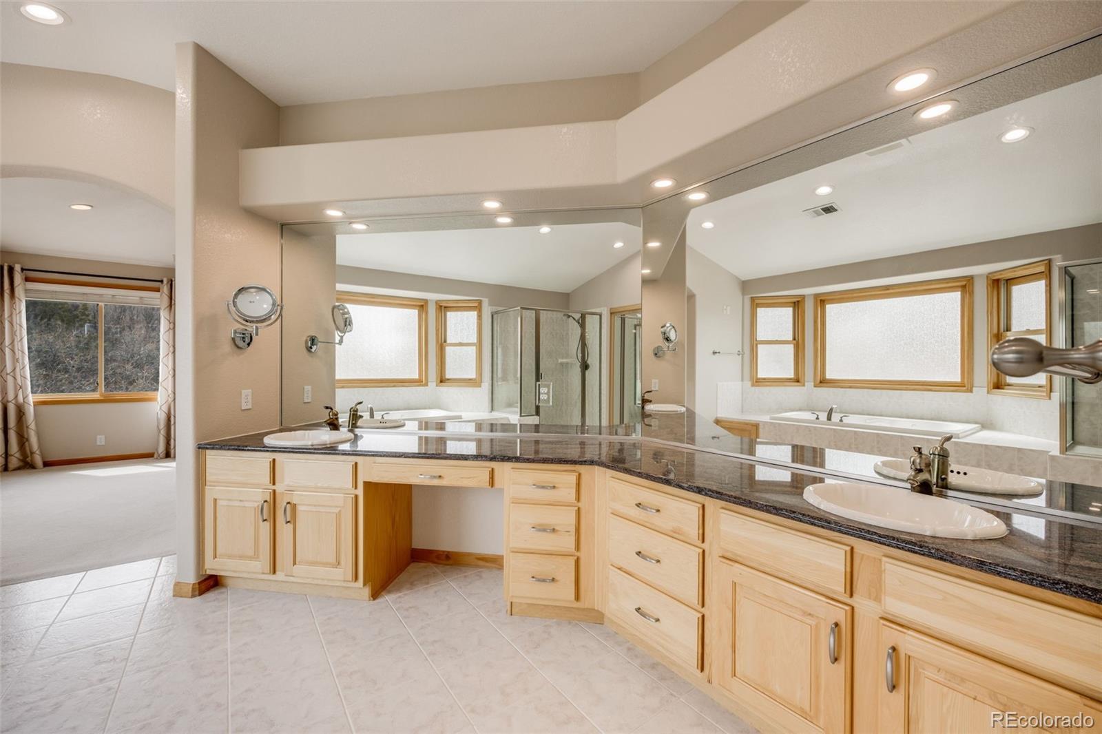 Perched on nearly an acre with breathtaking views, this exceptional 5-bedroom, 5-bath custom home in Castle Rock combines luxury, privacy, and convenience. The interior features a spacious family room and dining area, while the upgraded kitchen is a chef’s dream with stainless steel appliances, custom cabinetry with soft-close drawers, a gas cooktop, double ovens, a walk-in pantry, an oversized slab granite island, and freshly refinished hardwood floors. The family room boasts a wet bar ideal for entertaining, and a private office with custom French doors offers versatility. Modern amenities include dual water heaters, dual AC units, a whole-house fan, a wireless alarm system with Blink cameras, two built-in safes, and a central vacuum system. Upstairs, the primary suite is a serene retreat with a spa-like bathroom and a generous walk-in closet. Two additional bedrooms each feature en-suite bathrooms with slab granite counters and access to a shared walk-around deck. A spacious loft with a second wet bar adds flexible living space, complemented by three gas-log fireplaces throughout the home. The professionally finished basement offers high ceilings, a game area, two bedrooms (or one can serve as an office), a full bath, and a pool table (included). Car enthusiasts will appreciate the 5-car garage with two oversized doors and Wi-Fi-enabled openers, plus additional driveway parking. Outside, enjoy a fully fenced backyard with a pond-less waterfall, gas fire pit, gas grill hookup, and a newer hot tub (included). Relax on the oversized covered patio with DEK Drain system, stamped concrete walkways, and lush landscaping. Located on a picturesque street and priced below appraised value, this home presents an outstanding opportunity to embrace the ultimate Colorado lifestyle.