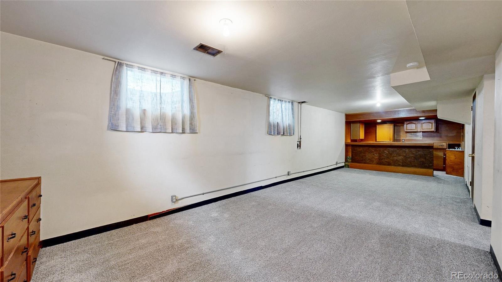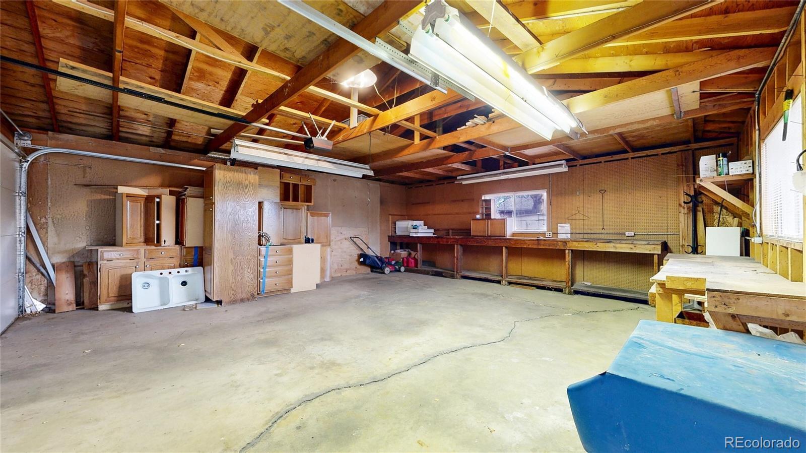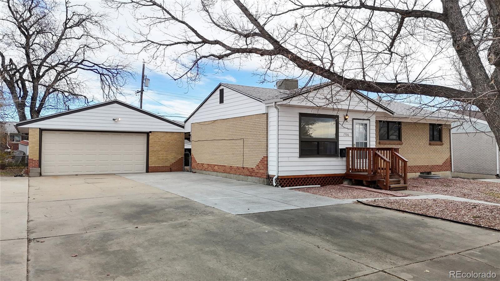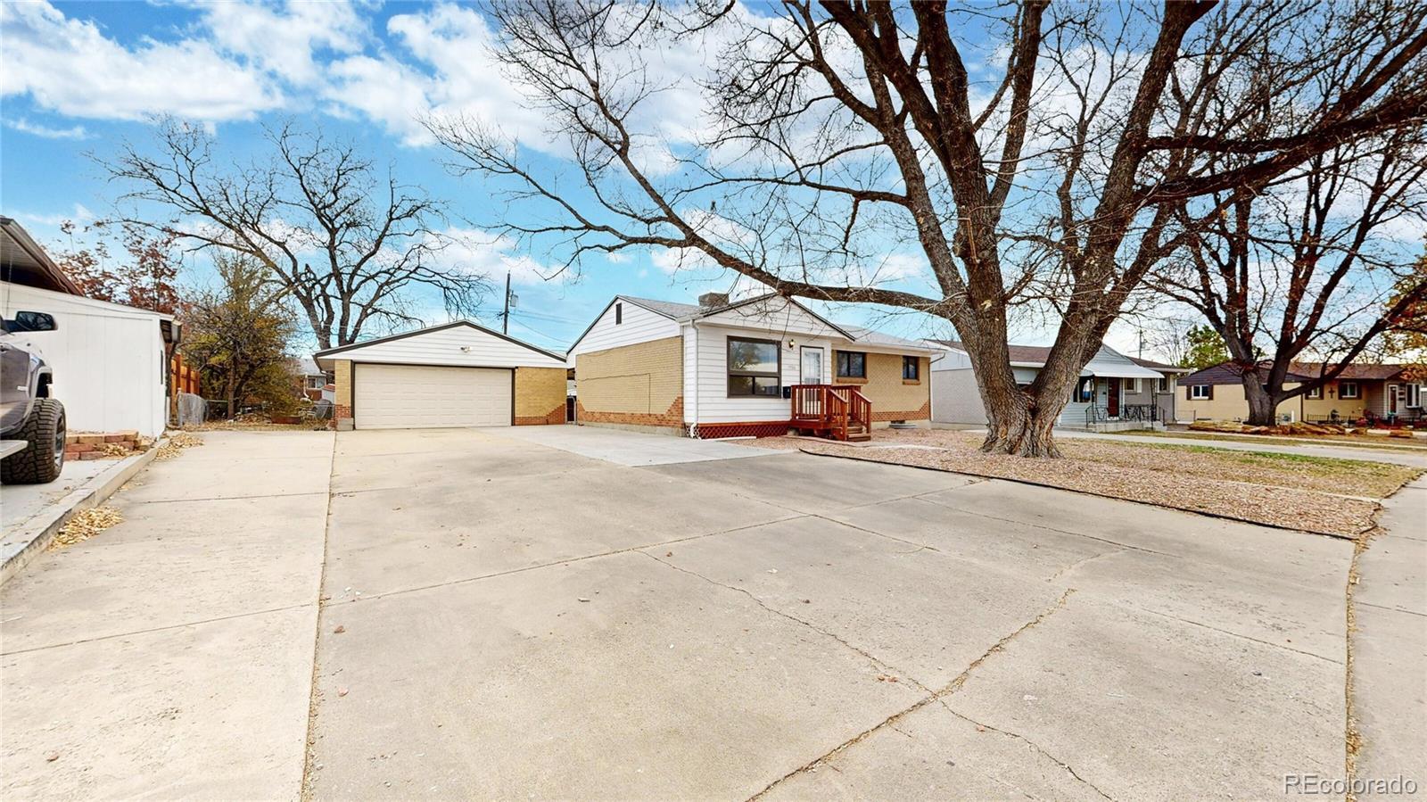 Charming North Denver Ranch with oversized garage and great potential! Welcome to this well-maintained 3-bedroom, 2-bath home featuring newer laminate wood flooring and fresh paint on the main level. The spacious floor plan includes a comfortable living area, eating space and nice-sized basement complete with a bar and built-in shelves. A bedroom and ¾ bathroom and utility/storage room complete the rest of the basement. All appliances included, including washer and dryer. Newer water heater and the furnace has been recently serviced. Outside you’ll find a large, flat lot and an oversized 2-car detached garage with plenty of room for a workbench and storage. The garage offers 220 electrical service, an insulated door and the potential to add heat – ideal for a workshop or hobby space. Let’s talk about all the off-street parking with the oversized concrete driveway that has room for RV or trailer parking. As a bonus, the Sellers are including cabinets, appliances and additional laminate wood flooring – giving the buyer an excellent opportunity to update the kitchen and add instant value. Don’t miss this versatile property with potential!