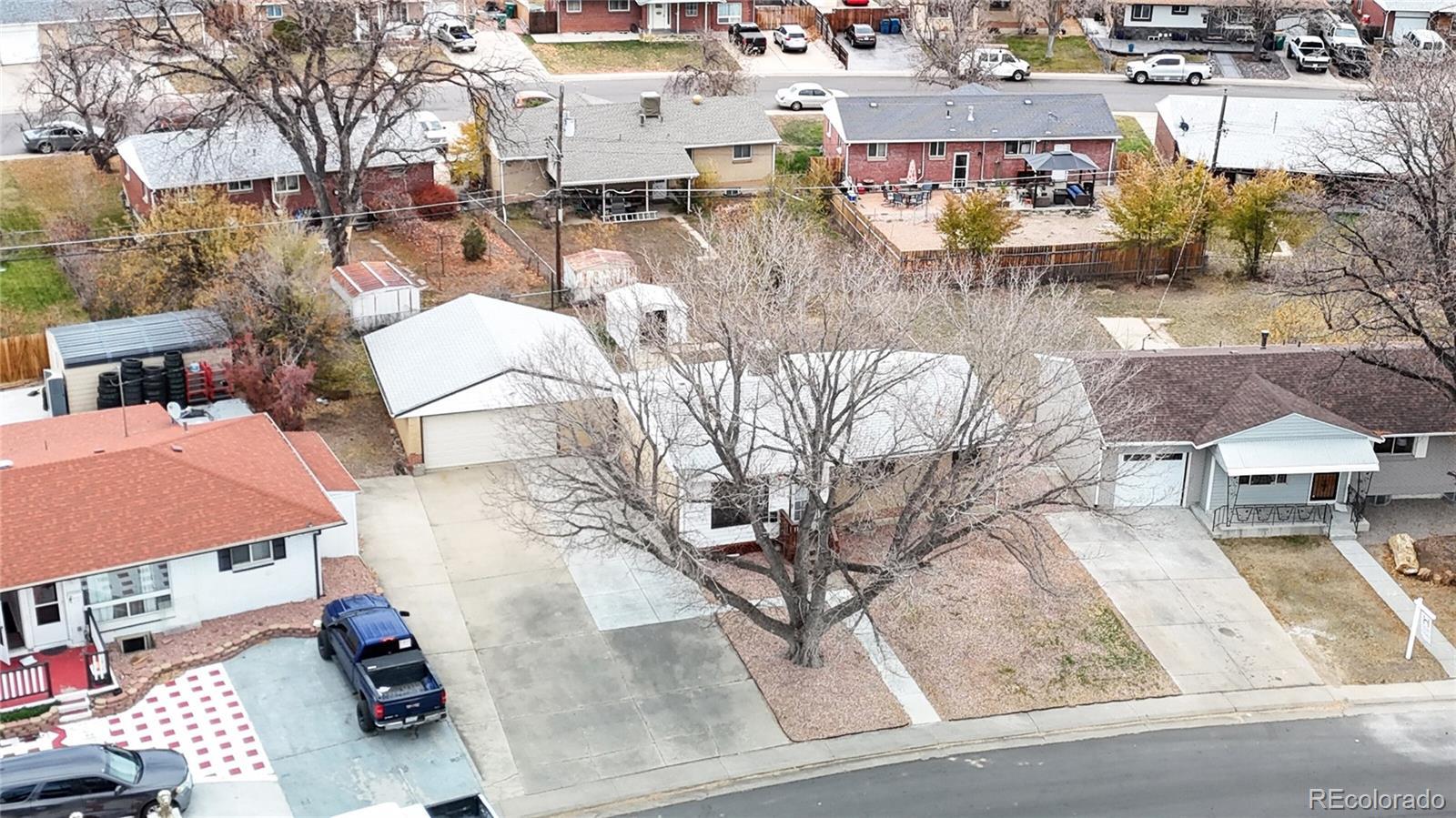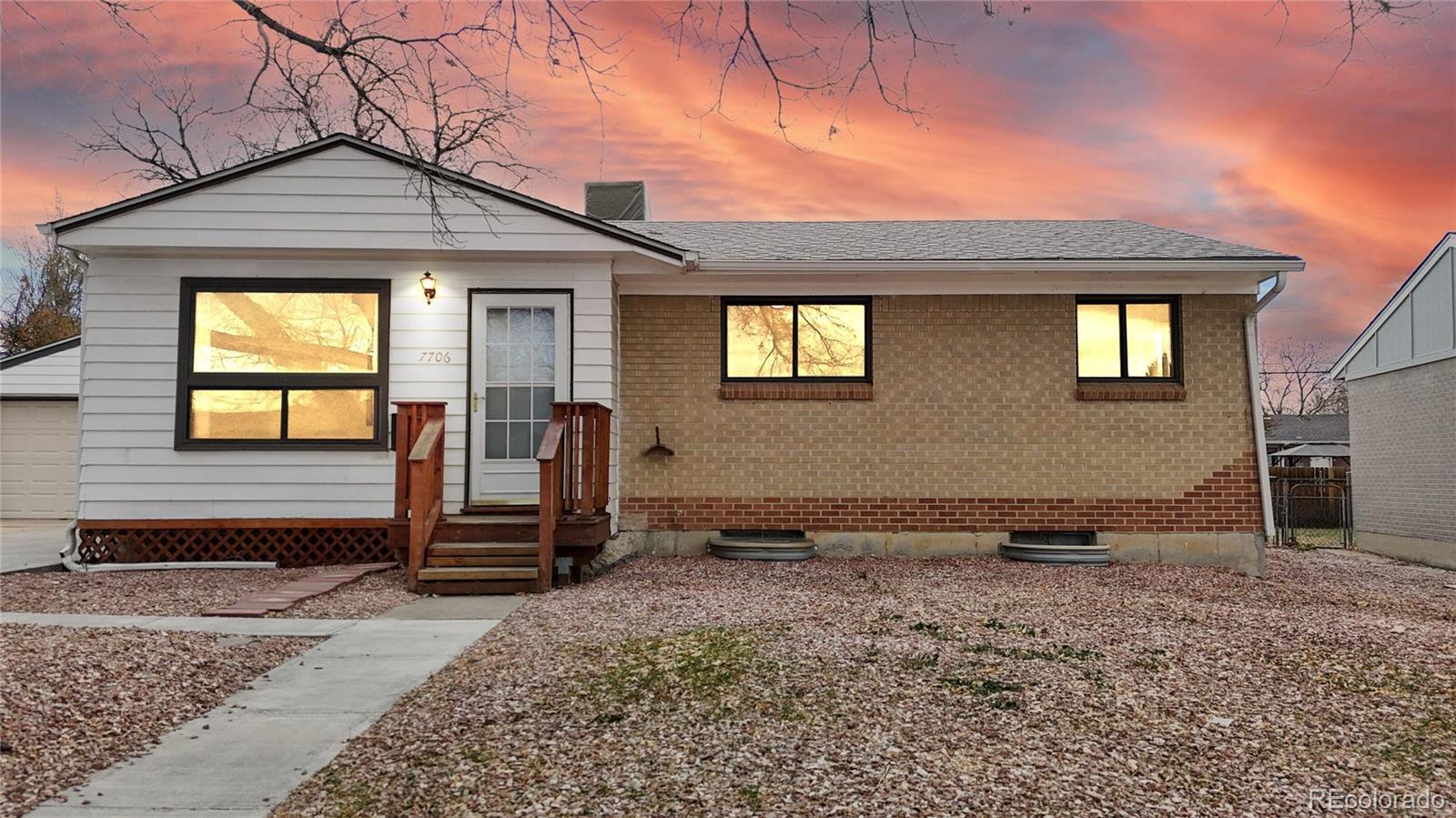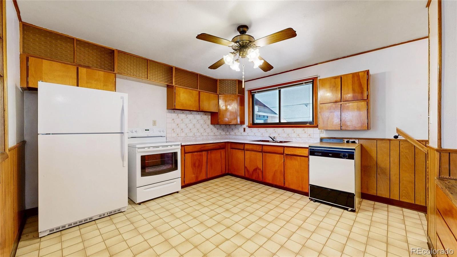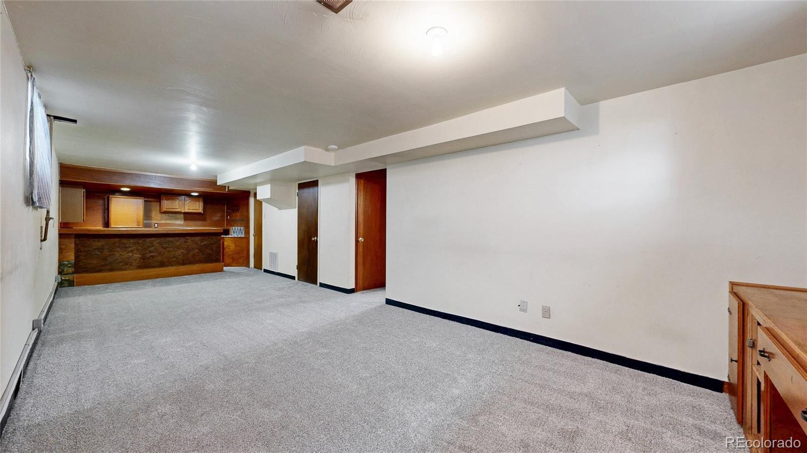 Charming North Denver Ranch with oversized garage and great potential! Welcome to this well-maintained 3-bedroom, 2-bath home featuring newer laminate wood flooring and fresh paint on the main level. The spacious floor plan includes a comfortable living area, eating space and nice-sized basement complete with a bar and built-in shelves. A bedroom and ¾ bathroom and utility/storage room complete the rest of the basement. All appliances included, including washer and dryer. Newer water heater and the furnace has been recently serviced. Outside you’ll find a large, flat lot and an oversized 2-car detached garage with plenty of room for a workbench and storage. The garage offers 220 electrical service, an insulated door and the potential to add heat – ideal for a workshop or hobby space. Let’s talk about all the off-street parking with the oversized concrete driveway that has room for RV or trailer parking. As a bonus, the Sellers are including cabinets, appliances and additional laminate wood flooring – giving the buyer an excellent opportunity to update the kitchen and add instant value. Don’t miss this versatile property with potential!