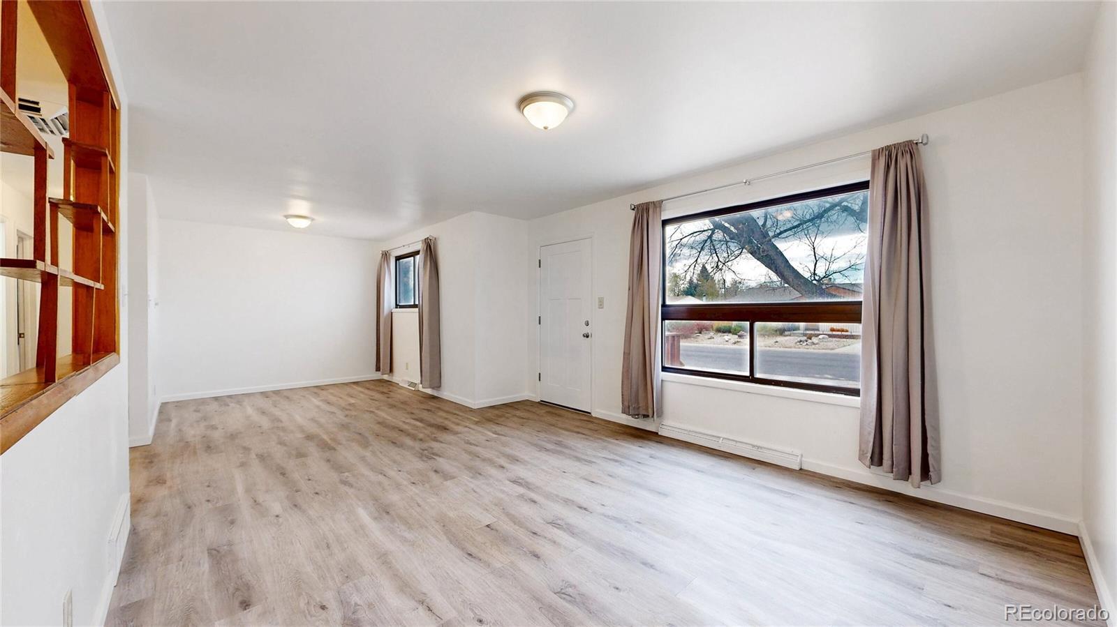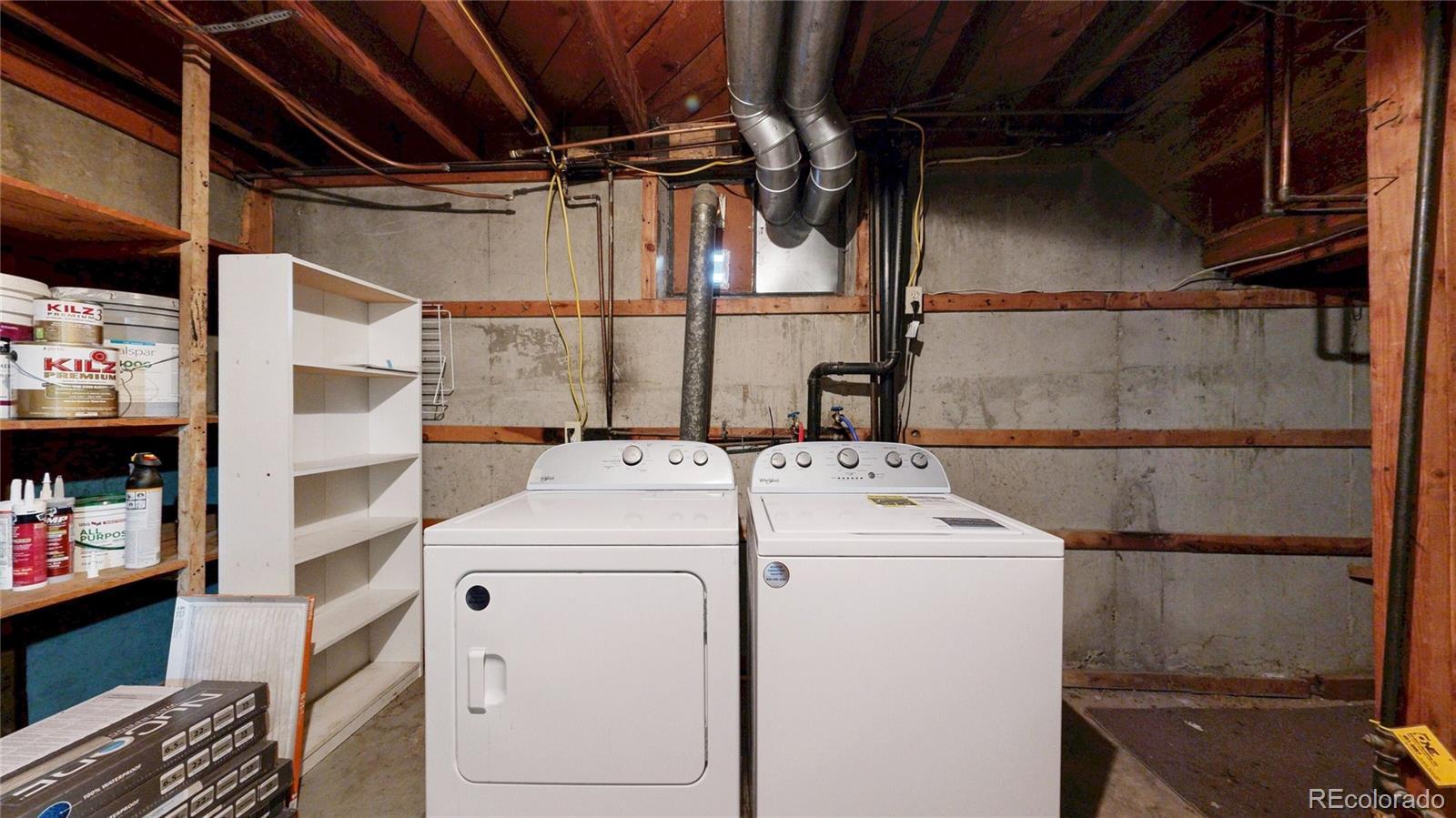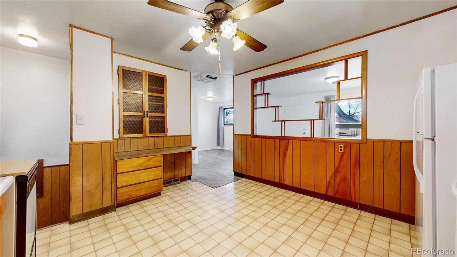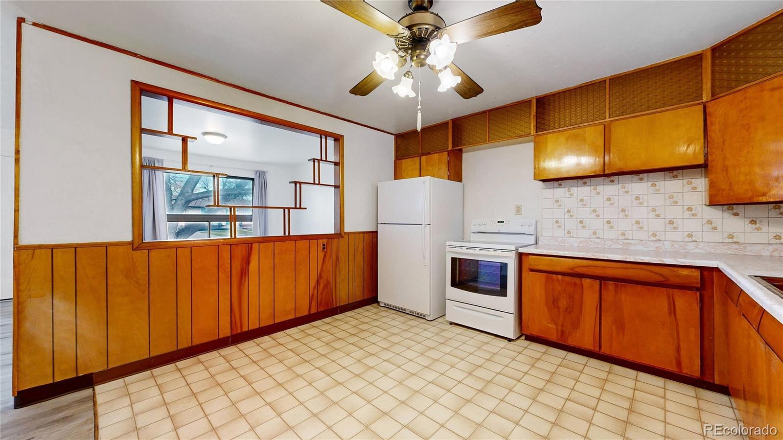 Charming North Denver Ranch with oversized garage and great potential! Welcome to this well-maintained 3-bedroom, 2-bath home featuring newer laminate wood flooring and fresh paint on the main level. The spacious floor plan includes a comfortable living area, eating space and nice-sized basement complete with a bar and built-in shelves. A bedroom and ¾ bathroom and utility/storage room complete the rest of the basement. All appliances included, including washer and dryer. Newer water heater and the furnace has been recently serviced. Outside you’ll find a large, flat lot and an oversized 2-car detached garage with plenty of room for a workbench and storage. The garage offers 220 electrical service, an insulated door and the potential to add heat – ideal for a workshop or hobby space. Let’s talk about all the off-street parking with the oversized concrete driveway that has room for RV or trailer parking. As a bonus, the Sellers are including cabinets, appliances and additional laminate wood flooring – giving the buyer an excellent opportunity to update the kitchen and add instant value. Don’t miss this versatile property with potential!