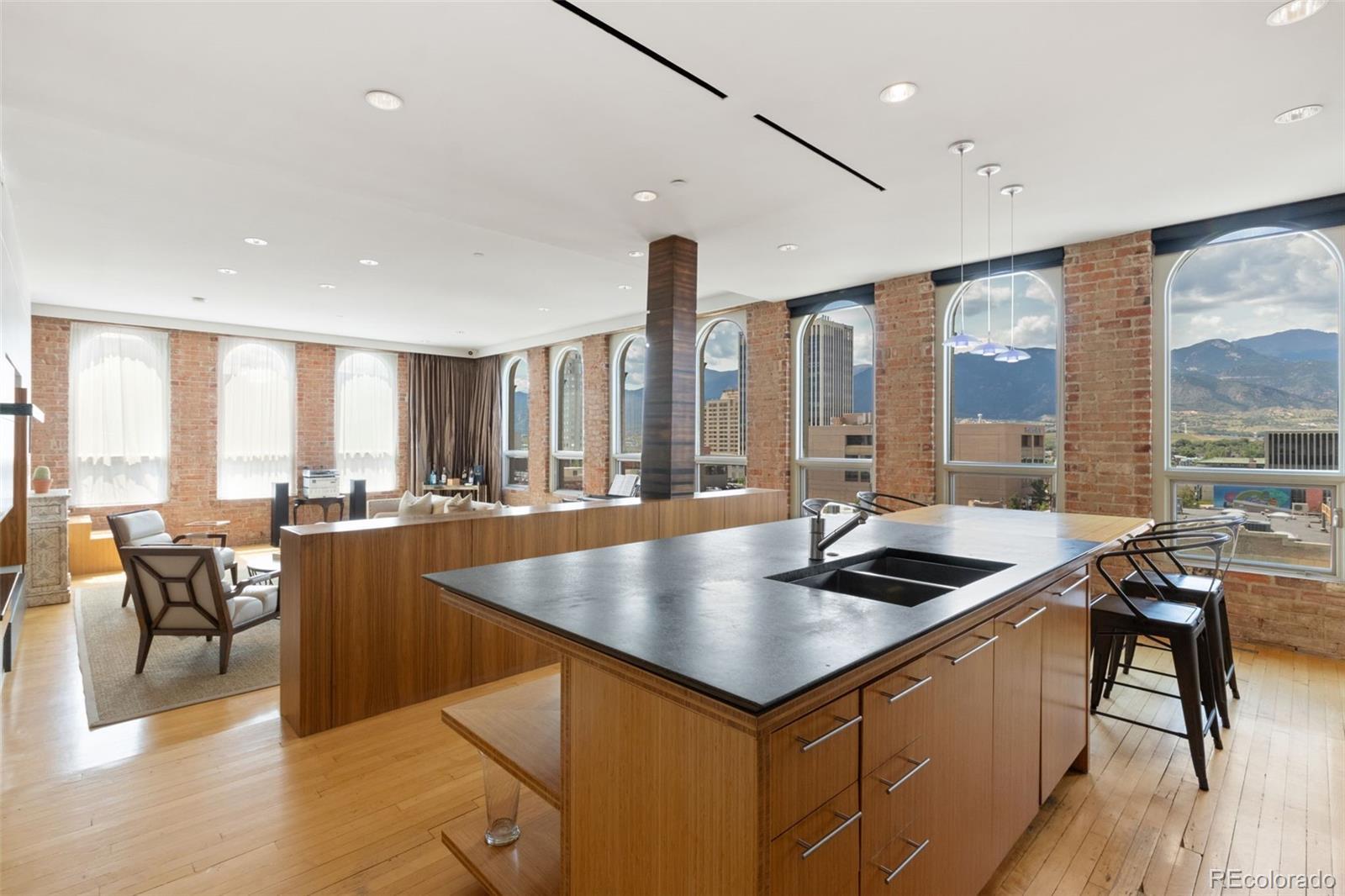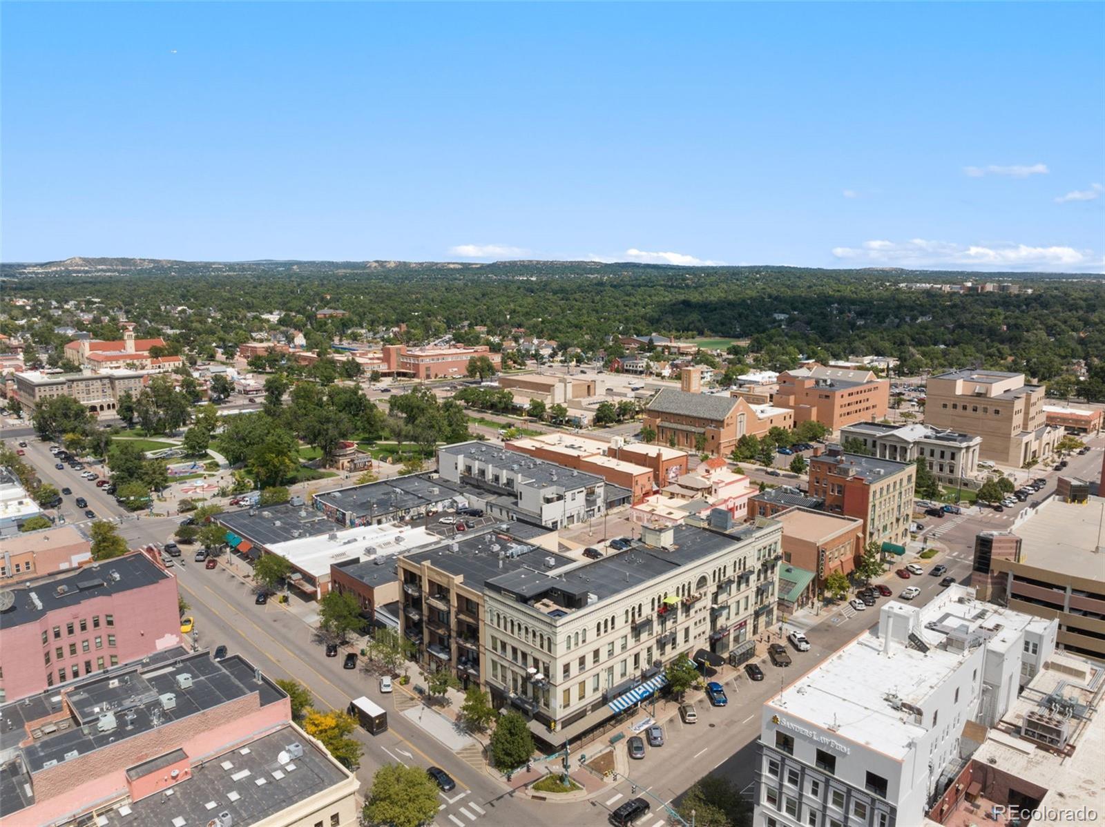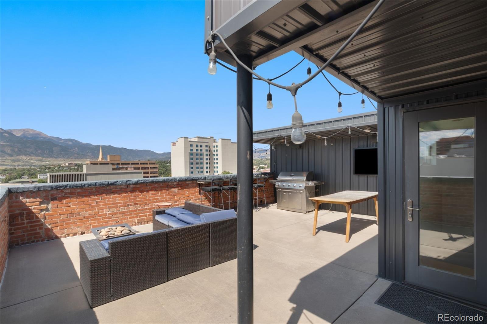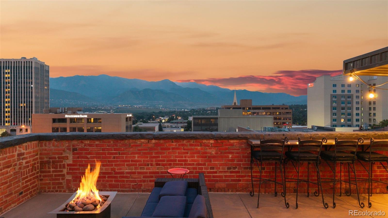 Experience the pinnacle of downtown Colorado Springs living in this one-of-a-kind penthouse loft within the historic Giddings building. Classic architectural character, including exposed brick, blends seamlessly with sleek contemporary finishes, creating an ambiance that is both timeless and modern. This impressive two-story residence showcases sweeping city lights and unobstructed Front Range views. Upon entry, a quiet study with generous storage is tucked away for convenience. Two ensuite bedrooms on the main level feature spa-inspired baths with marble accents, smart closet systems, and warm wood flooring—each designed as a chic, calming retreat. The gourmet kitchen is an entertainer’s dream, appointed with soapstone countertops, Wolf range, Sub-Zero refrigerator, custom bamboo cabinetry, an oversized island, and walk-in pantry. A built-in dining area and temperature-controlled wine closet enhance the space, while vaulted ceilings, expansive windows, and maple floors flood the home with light and character. Upstairs, the private primary suite offers a moody, sophisticated atmosphere, complete with dual walk-in closets, a soaking tub, and a marble-encased walk-in shower. A second staircase leads to the crown jewel of this loft—the expansive rooftop patio. With plenty of room for lounging and entertaining, it’s the perfect setting to soak in panoramic mountain views and the energy of the city below. Additional highlights extensive marble work, stylish bathroom fixtures, two AC units, dual gas fireplaces, extra storage unit, and two secure garage parking spaces. Steps from award-winning dining, boutique shopping, and cultural landmarks, this penthouse offers unmatched access to the best of Colorado Springs.