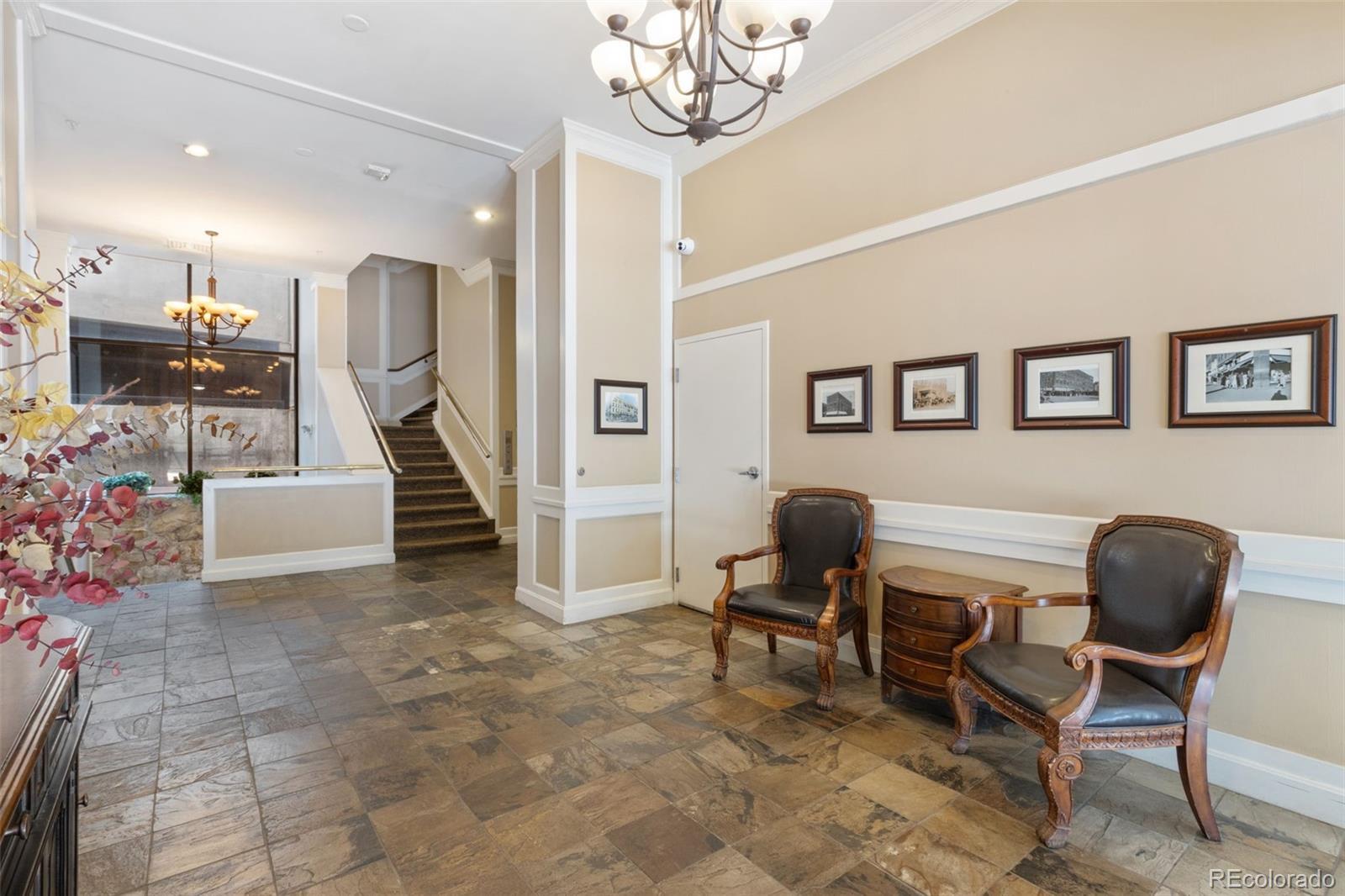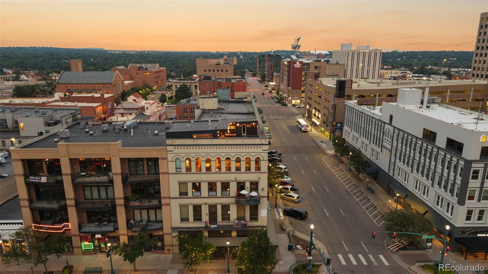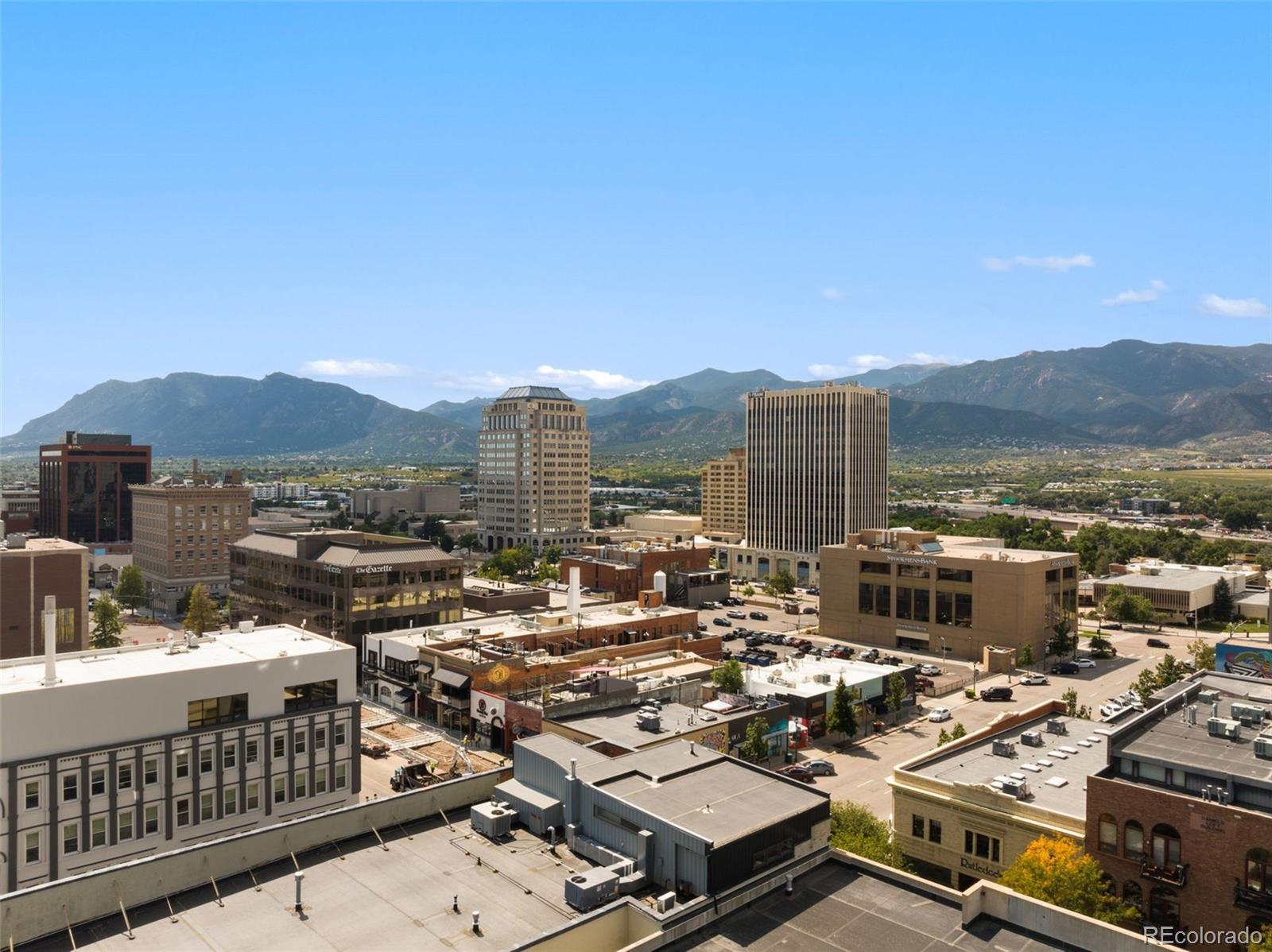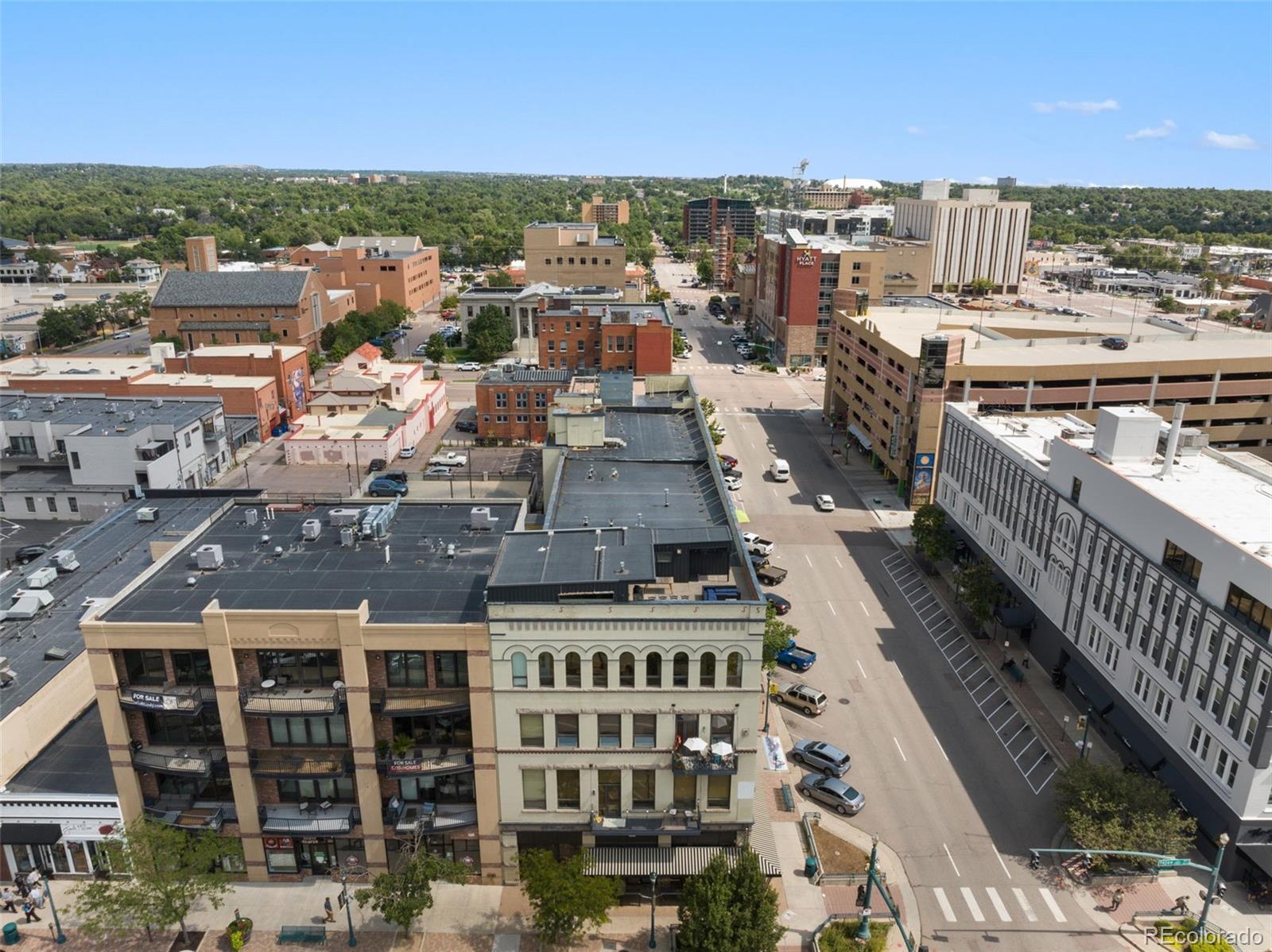 Experience the pinnacle of downtown Colorado Springs living in this one-of-a-kind penthouse loft within the historic Giddings building. Classic architectural character, including exposed brick, blends seamlessly with sleek contemporary finishes, creating an ambiance that is both timeless and modern. This impressive two-story residence showcases sweeping city lights and unobstructed Front Range views. Upon entry, a quiet study with generous storage is tucked away for convenience. Two ensuite bedrooms on the main level feature spa-inspired baths with marble accents, smart closet systems, and warm wood flooring—each designed as a chic, calming retreat. The gourmet kitchen is an entertainer’s dream, appointed with soapstone countertops, Wolf range, Sub-Zero refrigerator, custom bamboo cabinetry, an oversized island, and walk-in pantry. A built-in dining area and temperature-controlled wine closet enhance the space, while vaulted ceilings, expansive windows, and maple floors flood the home with light and character. Upstairs, the private primary suite offers a moody, sophisticated atmosphere, complete with dual walk-in closets, a soaking tub, and a marble-encased walk-in shower. A second staircase leads to the crown jewel of this loft—the expansive rooftop patio. With plenty of room for lounging and entertaining, it’s the perfect setting to soak in panoramic mountain views and the energy of the city below. Additional highlights extensive marble work, stylish bathroom fixtures, two AC units, dual gas fireplaces, extra storage unit, and two secure garage parking spaces. Steps from award-winning dining, boutique shopping, and cultural landmarks, this penthouse offers unmatched access to the best of Colorado Springs.