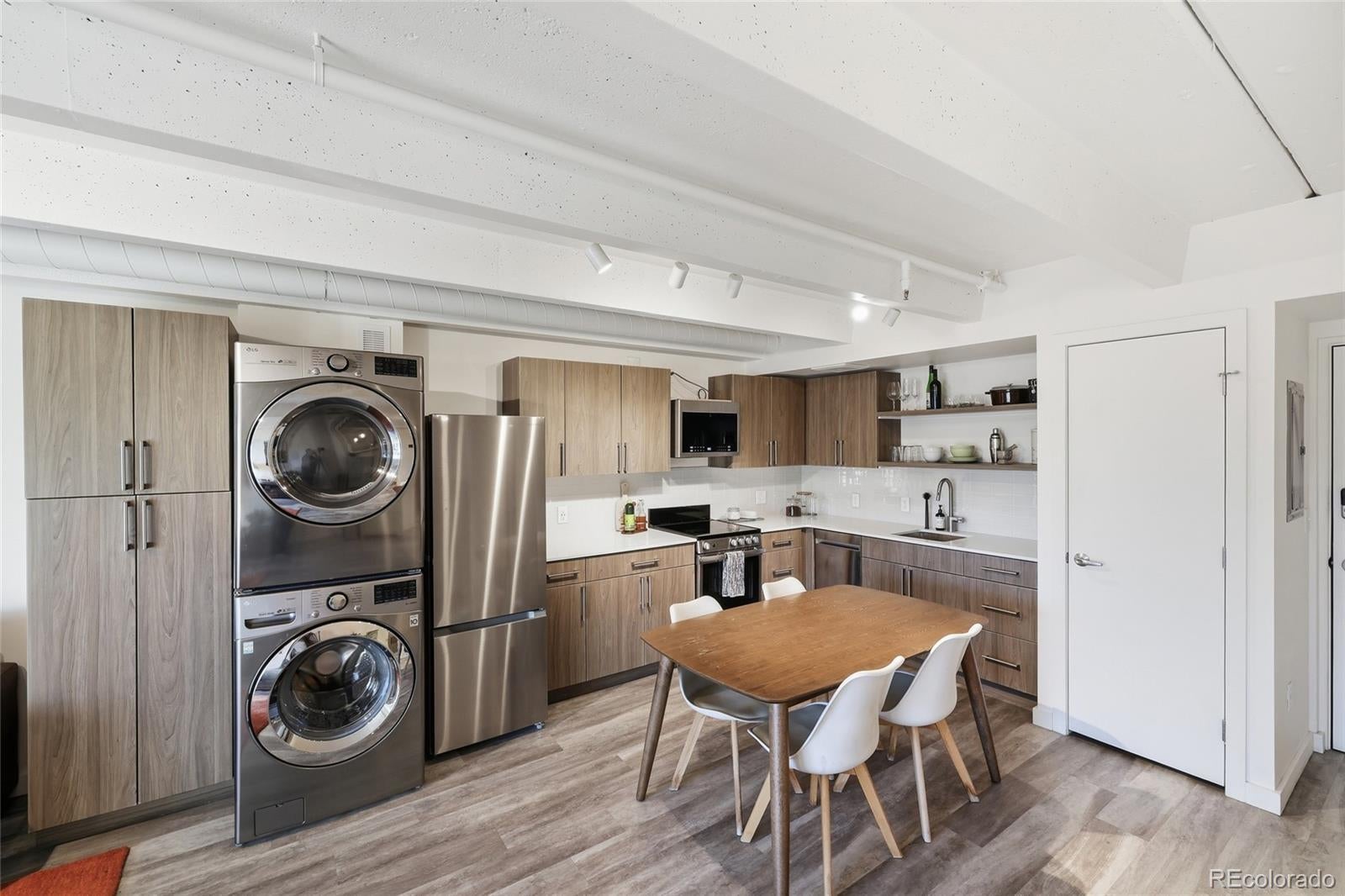 This chic Sloan's Lake condo defines modern urban living. Inside, an open-concept layout blends contemporary design with everyday functionality, complemented by solid-surface flooring and large sliding glass doors for ample natural light. The updated kitchen features sleek, high-end finishes to elevate your culinary routine. Step outside to a fantastic deck that expands your living space that is perfect for morning coffee with sunrise views or evening gatherings against the city lights. Located just blocks from Sloan’s Lake, just minutes from mountain access plus a short drive to the charming town of Golden, and close to downtown Denver’s dining, culture, and entertainment, this home offers an unbeatable combination of style and location.