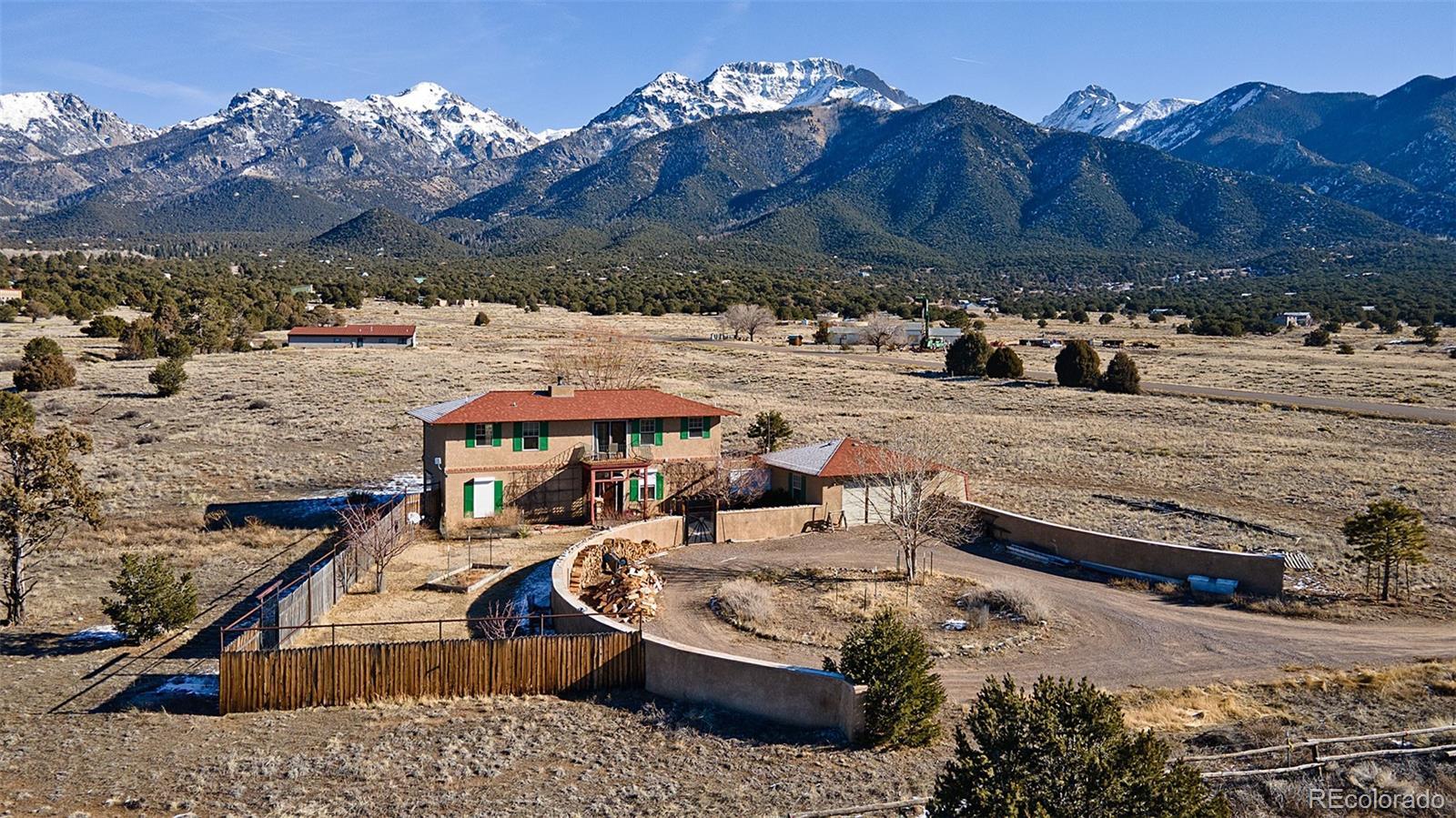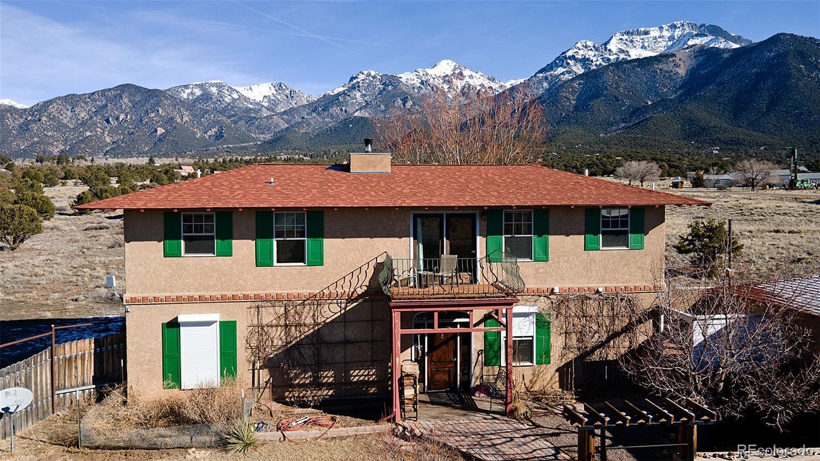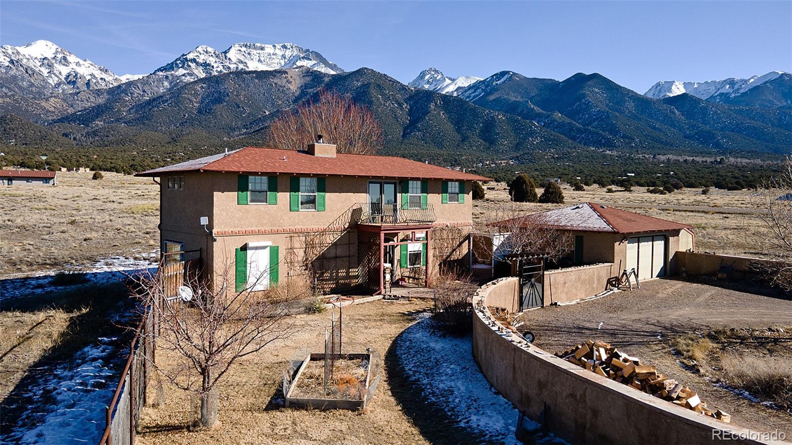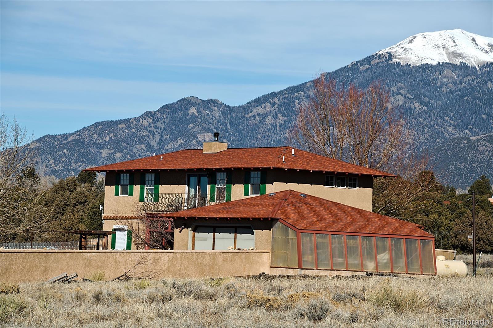 Welcome to 1552 Camino Real, a place of quiet ease where space, light, and calm greet you the moment you arrive. Set on 1.77 acres in the heart of the Baca, this thoughtfully designed two-story home offers sweeping mountain and valley views, privacy, and a deep sense of connection to the surrounding landscape. Built in 2005 and oriented to welcome natural light throughout the day, the layout unfolds with ease; a comfortable main living area complemented by thoughtfully integrated upper-level spaces, creating a home that feels both grounded and expansive, with a gentle, intuitive flow. The main floor features an open living and dining area, cosy sitting room, a bright and welcoming kitchen that opens to the courtyard & a sunoom with mountain views, ideal for reading, art, or quiet moments of reflection. Radiant floor heat and a wood-burning stove provide year-round comfort, while generous windows frame ever-changing views of the Sangre de Cristos and invite the outdoors in. Upstairs, 3 bedrooms and 2 bathrooms offer separation and privacy, including a spacious primary with en suite and direct access to an outdoor balcony, to greet the morning light or unwind beneath the star drenched night sky. Thoughtful built-ins, tile counters, and warm finishes throughout lend the home a calm, lived-in elegance. Outside, the land feels open and full of possibility, inviting gardens, animals, and gatherings beneath wide skies. The property includes a private yard, balconies, courtyard, and a detached garage with greenhouse. Situated in the Grants, where horses are welcomed, this property offers the rare combination of paved road access and electric service, paired with the freedom of a private well, providing fresh mountain water and no water bill. A rare opportunity to own a peaceful, well-established home in one of Crestone’s most distinctive settings, a place to settle in, breathe deeply, and live with intention, in harmony with the land that surrounds it.
