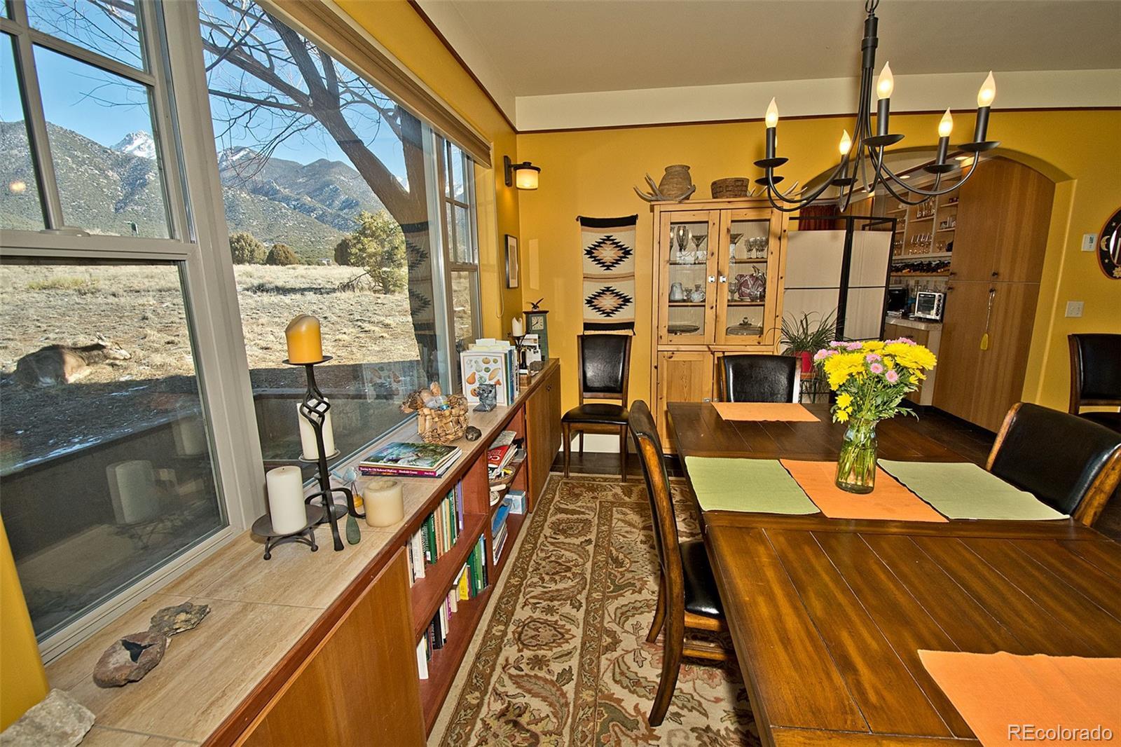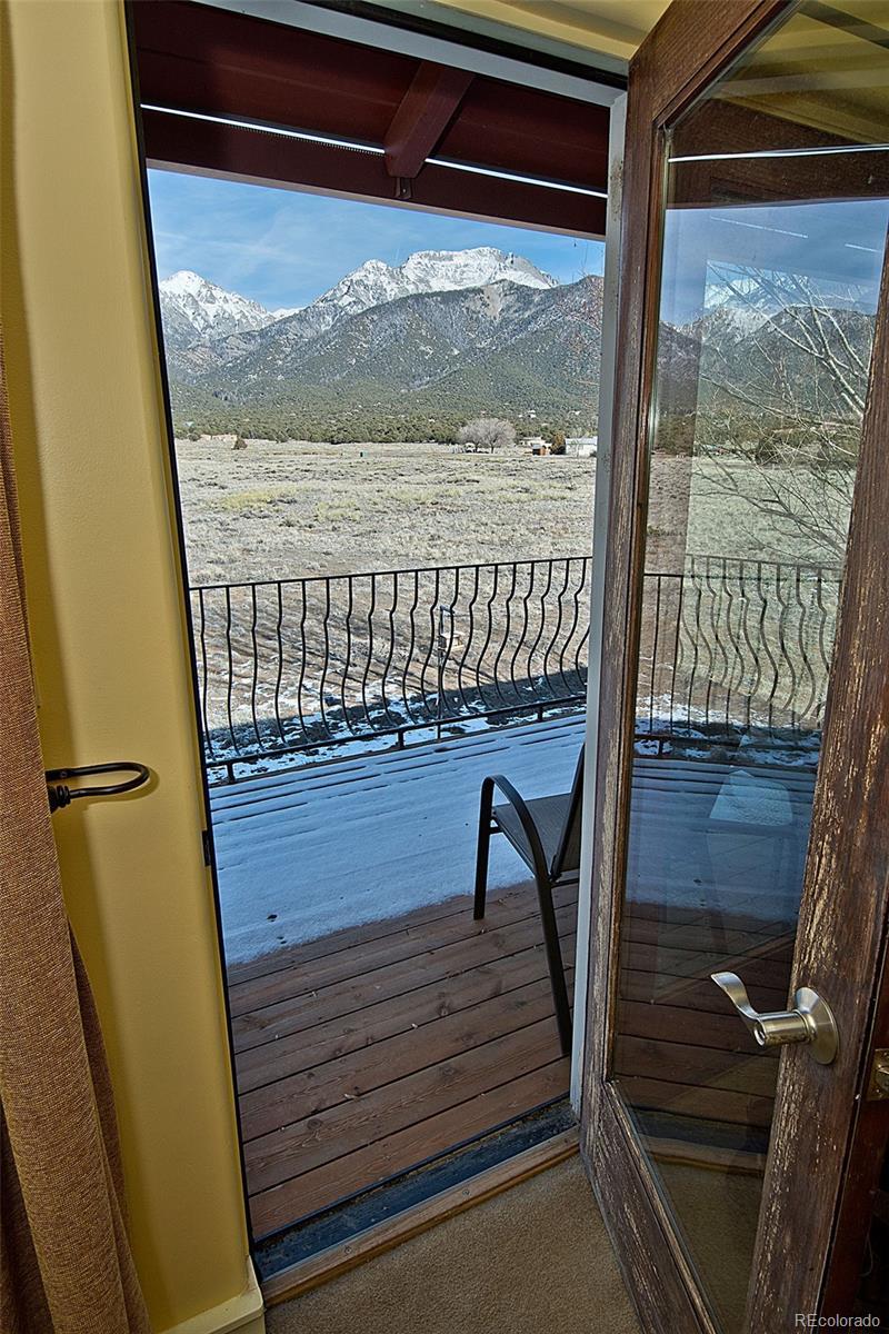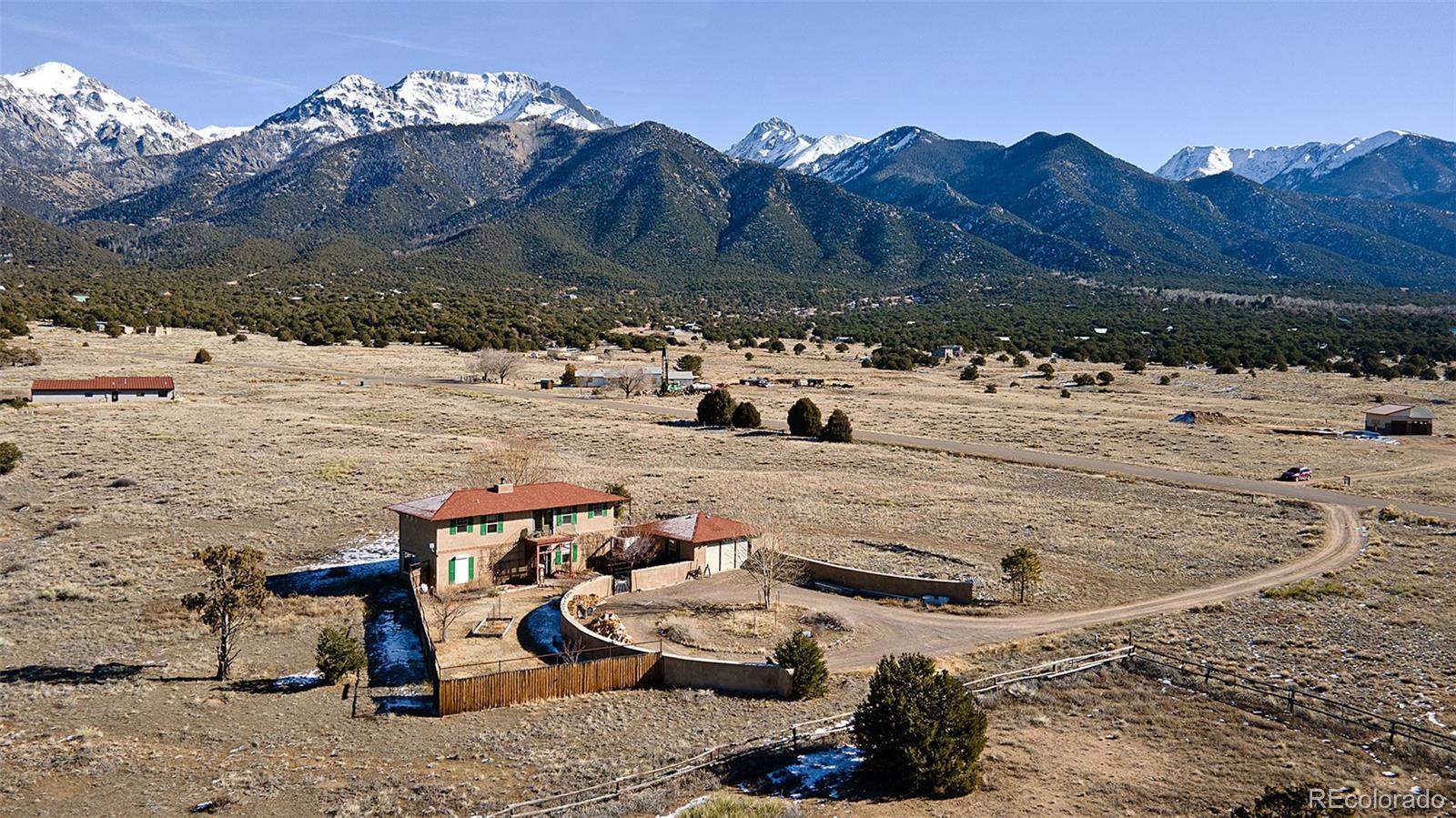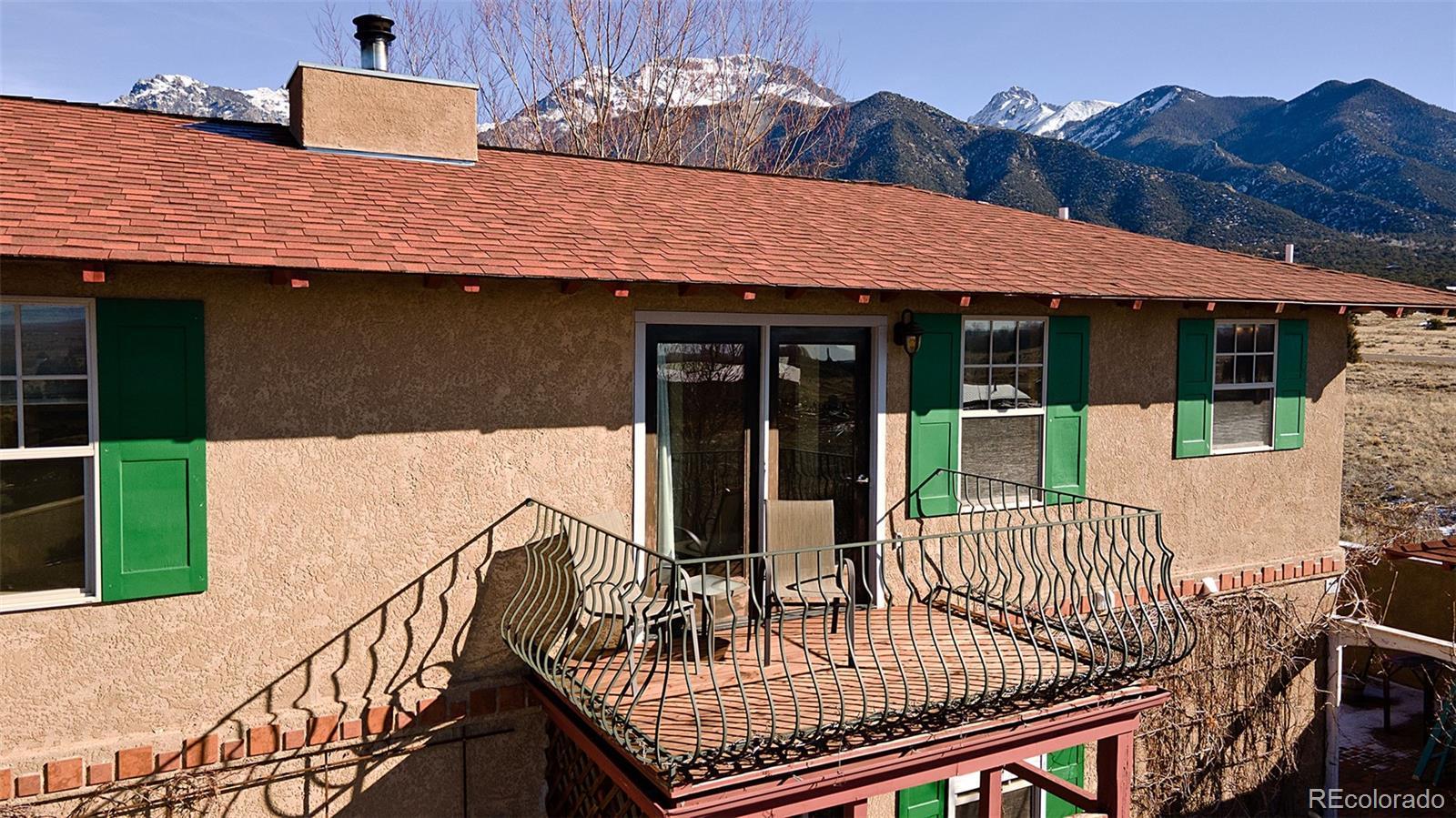 Welcome to 1552 Camino Real, a place of quiet ease where space, light, and calm greet you the moment you arrive. Set on 1.77 acres in the heart of the Baca, this thoughtfully designed two-story home offers sweeping mountain and valley views, privacy, and a deep sense of connection to the surrounding landscape. Built in 2005 and oriented to welcome natural light throughout the day, the layout unfolds with ease; a comfortable main living area complemented by thoughtfully integrated upper-level spaces, creating a home that feels both grounded and expansive, with a gentle, intuitive flow. The main floor features an open living and dining area, cosy sitting room, a bright and welcoming kitchen that opens to the courtyard & a sunoom with mountain views, ideal for reading, art, or quiet moments of reflection. Radiant floor heat and a wood-burning stove provide year-round comfort, while generous windows frame ever-changing views of the Sangre de Cristos and invite the outdoors in. Upstairs, 3 bedrooms and 2 bathrooms offer separation and privacy, including a spacious primary with en suite and direct access to an outdoor balcony, to greet the morning light or unwind beneath the star drenched night sky. Thoughtful built-ins, tile counters, and warm finishes throughout lend the home a calm, lived-in elegance. Outside, the land feels open and full of possibility, inviting gardens, animals, and gatherings beneath wide skies. The property includes a private yard, balconies, courtyard, and a detached garage with greenhouse. Situated in the Grants, where horses are welcomed, this property offers the rare combination of paved road access and electric service, paired with the freedom of a private well, providing fresh mountain water and no water bill. A rare opportunity to own a peaceful, well-established home in one of Crestone’s most distinctive settings, a place to settle in, breathe deeply, and live with intention, in harmony with the land that surrounds it.