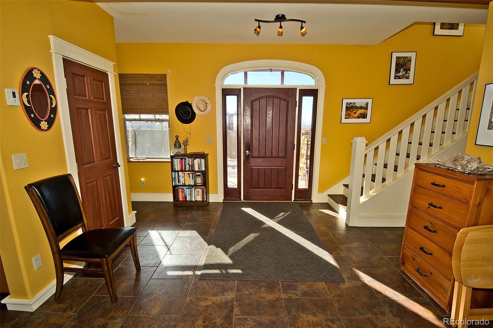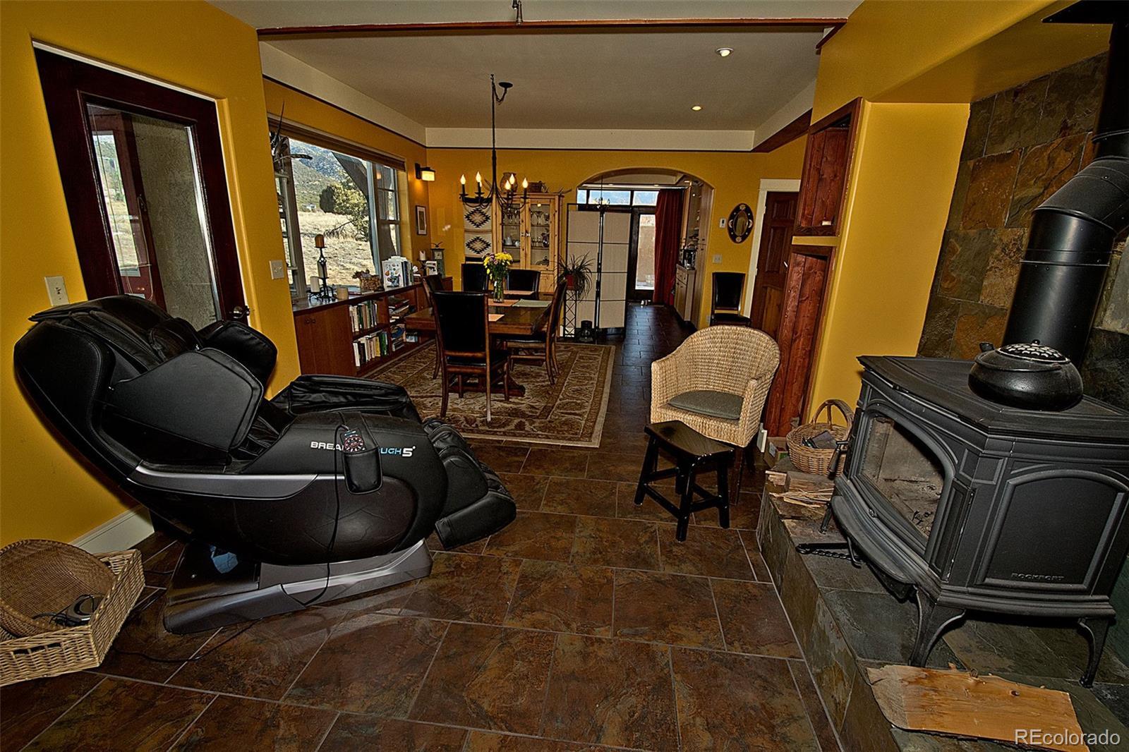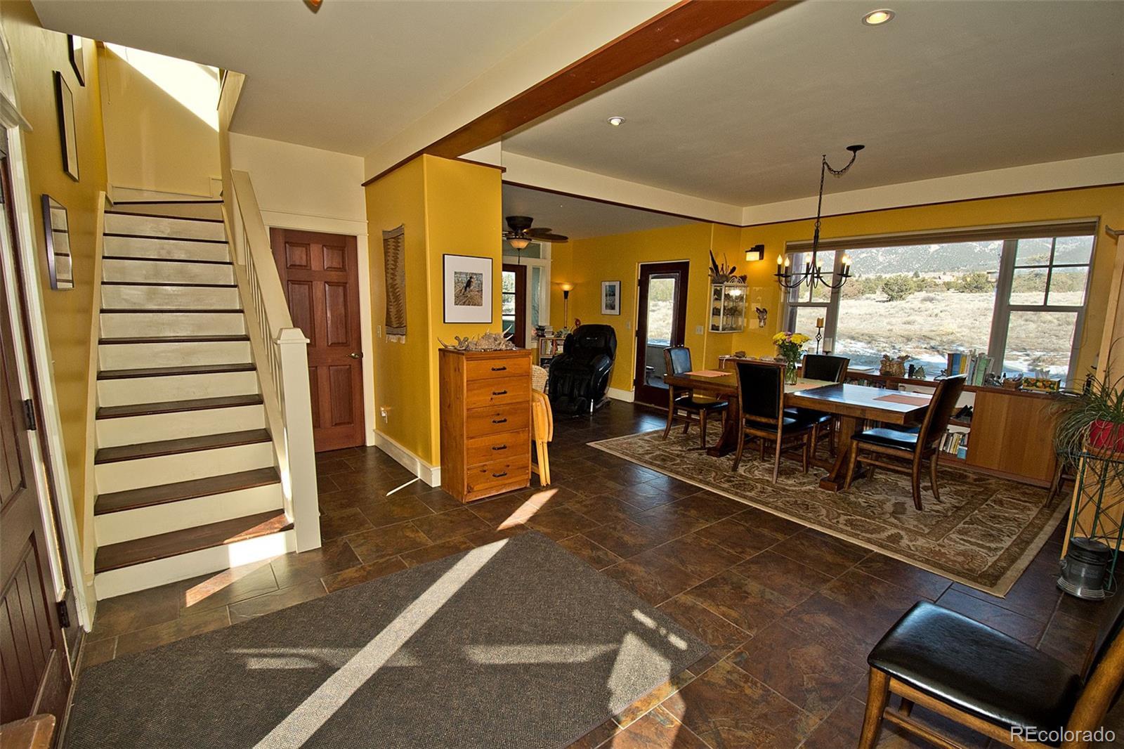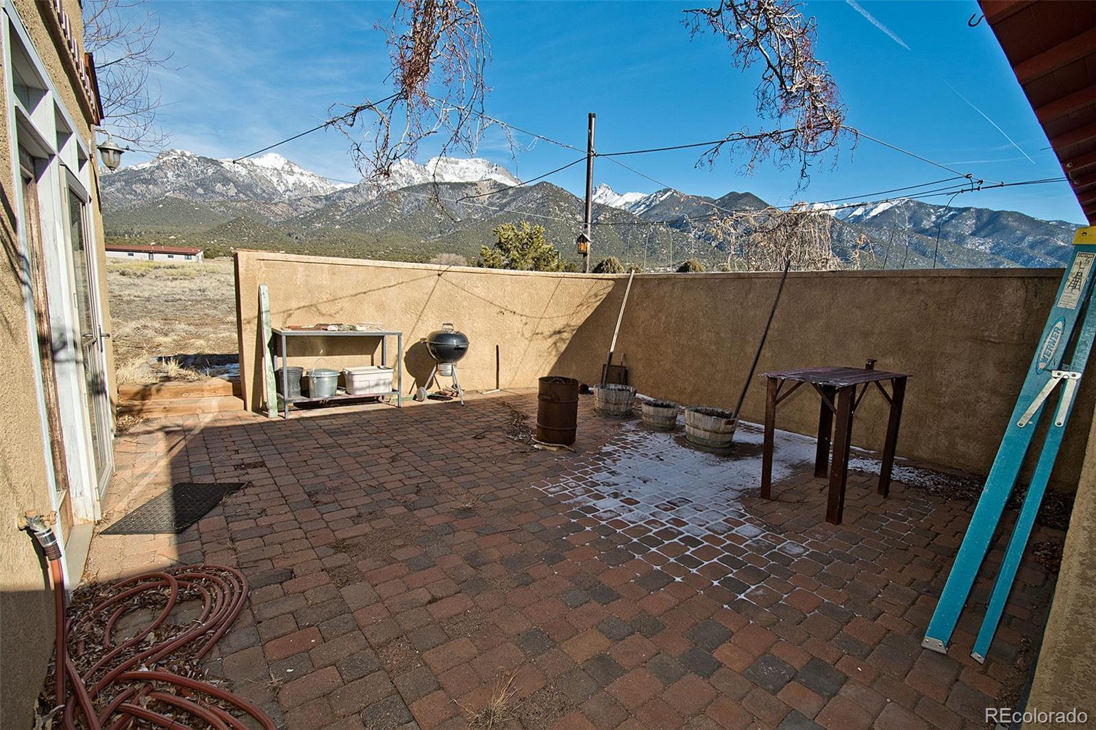 Welcome to 1552 Camino Real, a place of quiet ease where space, light, and calm greet you the moment you arrive. Set on 1.77 acres in the heart of the Baca, this thoughtfully designed two-story home offers sweeping mountain and valley views, privacy, and a deep sense of connection to the surrounding landscape. Built in 2005 and oriented to welcome natural light throughout the day, the layout unfolds with ease; a comfortable main living area complemented by thoughtfully integrated upper-level spaces, creating a home that feels both grounded and expansive, with a gentle, intuitive flow. The main floor features an open living and dining area, cosy sitting room, a bright and welcoming kitchen that opens to the courtyard & a sunoom with mountain views, ideal for reading, art, or quiet moments of reflection. Radiant floor heat and a wood-burning stove provide year-round comfort, while generous windows frame ever-changing views of the Sangre de Cristos and invite the outdoors in. Upstairs, 3 bedrooms and 2 bathrooms offer separation and privacy, including a spacious primary with en suite and direct access to an outdoor balcony, to greet the morning light or unwind beneath the star drenched night sky. Thoughtful built-ins, tile counters, and warm finishes throughout lend the home a calm, lived-in elegance. Outside, the land feels open and full of possibility, inviting gardens, animals, and gatherings beneath wide skies. The property includes a private yard, balconies, courtyard, and a detached garage with greenhouse. Situated in the Grants, where horses are welcomed, this property offers the rare combination of paved road access and electric service, paired with the freedom of a private well, providing fresh mountain water and no water bill. A rare opportunity to own a peaceful, well-established home in one of Crestone’s most distinctive settings, a place to settle in, breathe deeply, and live with intention, in harmony with the land that surrounds it.