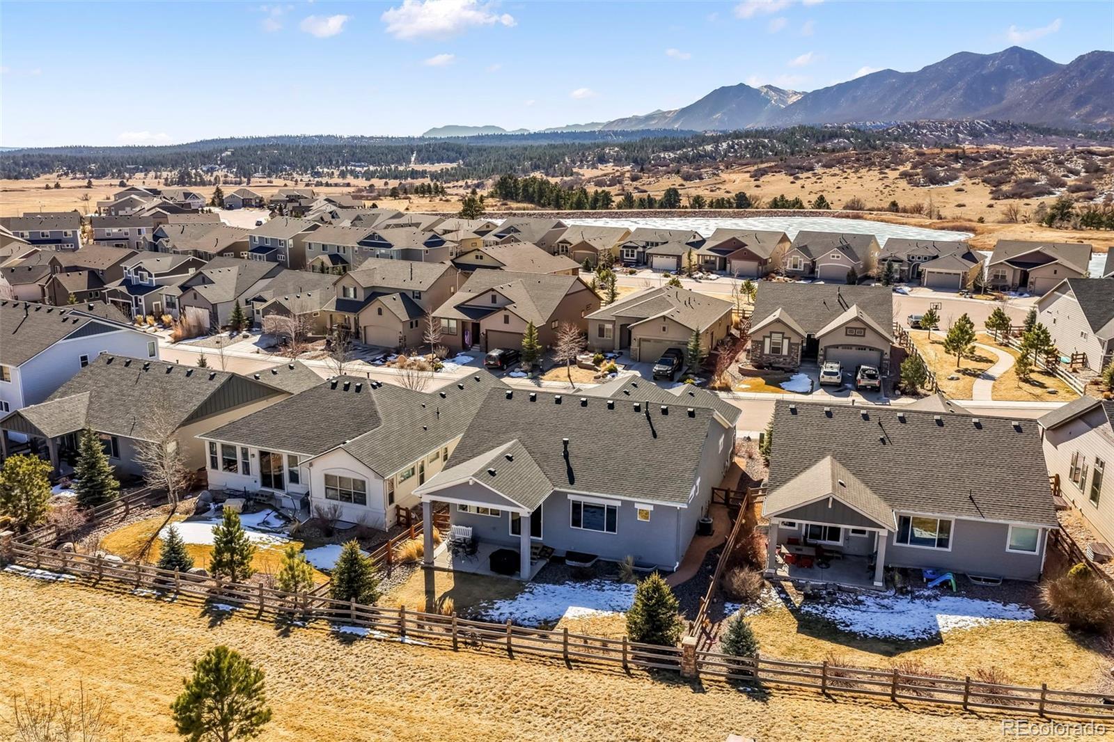 Beautifully maintained ranch-style home in desirable Forest Lakes, built by Classic Homes and showcasing a striking stone-and-stucco exterior, mature landscaping, and an oversized three-car tandem garage. Ideally located near the lower lake, this home blends thoughtful design with comfortable main-level living while embracing the Colorado lifestyle you will love. Laminate flooring welcomes you into a bright entry and flows throughout the main level. A bedroom to the right, currently used as an office, sits next to a full bath — perfect for guests or remote work. The open-concept kitchen, dining, and family room create an inviting space for everyday living and entertaining. The kitchen features extended cabinetry, granite countertops, stainless steel appliances, and generous prep space. The family room offers a gas fireplace with stone surround, built-ins, and large windows that bring in natural light. Enjoy true indoor-outdoor living with direct access to the fully fenced backyard — ideal for summer gatherings, morning coffee, or relaxing evenings under Colorado skies. The spacious primary suite includes an oversized walk-in closet and a spa-like bath with quartz countertops, dual vanities, additional windows, tile floors, and a large walk-in shower with dual shower heads and an oversized bench. A mudroom with garage access and laundry room finish out the main level. Make your way to the finished basement featuring an expansive recreation room, large storage area, two additional bedrooms with walk-in closets, and a full bath. With many upgraded features and central air conditioning this is a home that will delight at every turn. Forest Lakes offers scenic trails, a beautiful lake for paddle boarding, fishing, and canoeing, and quick access to I-25. Just minutes away, downtown Monument features charming shops, local restaurants, and community events — part of what makes Colorado living so special. Move-in ready this home is ready for its next owner.
