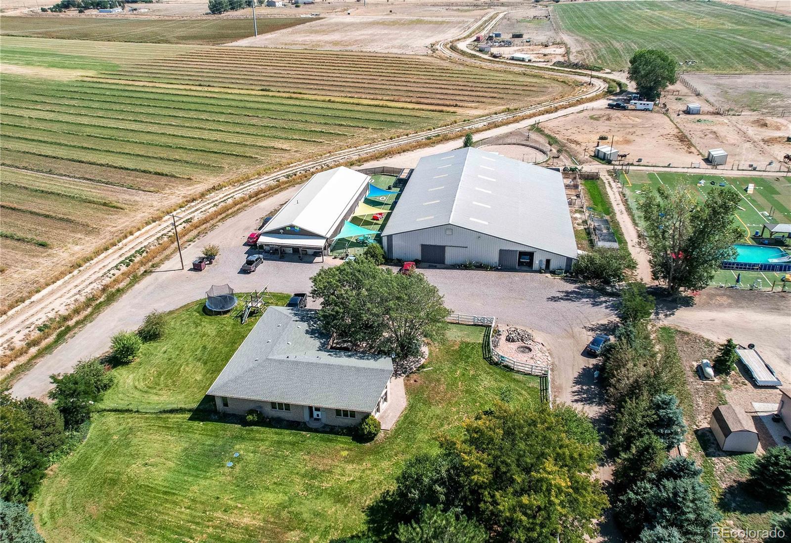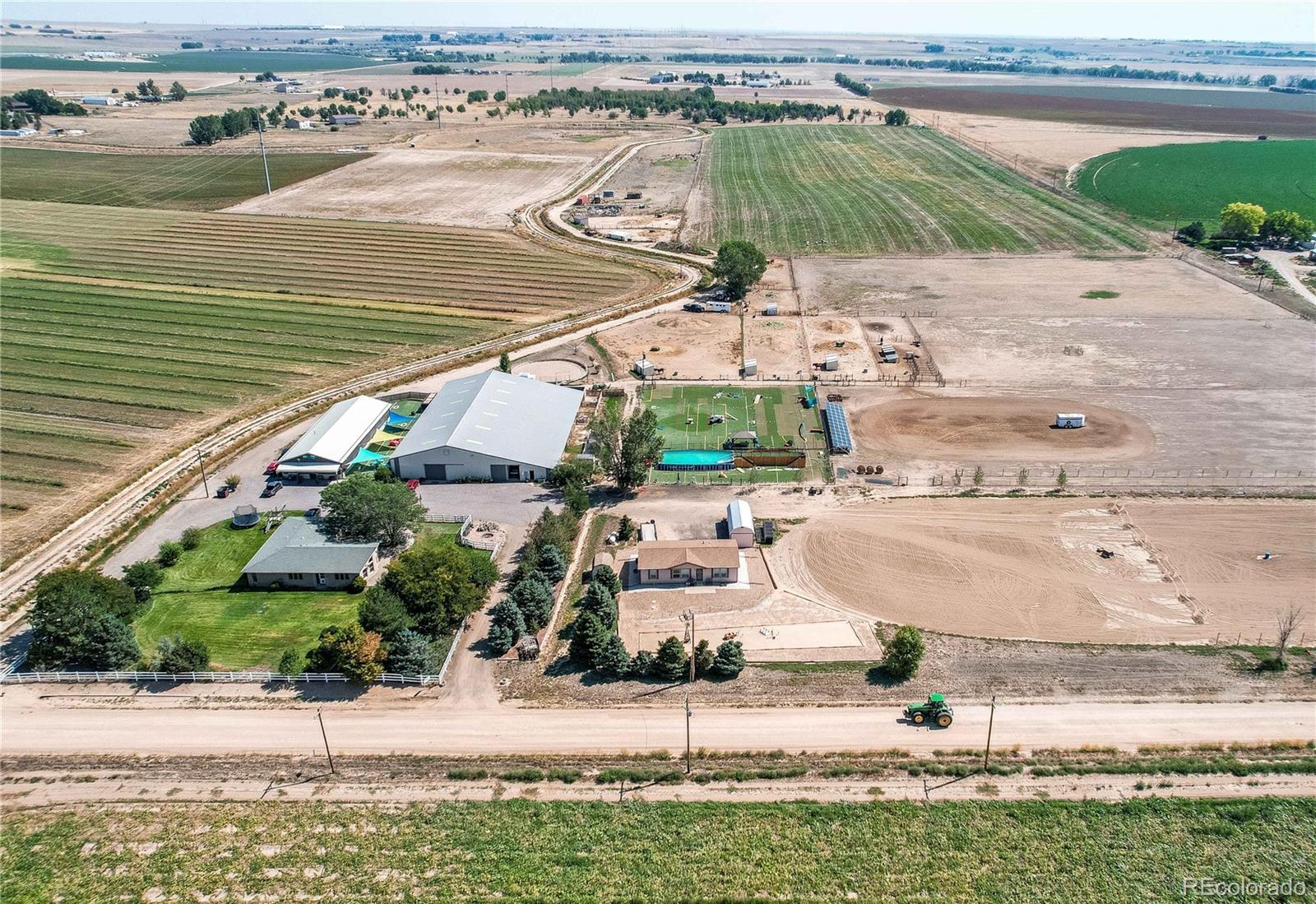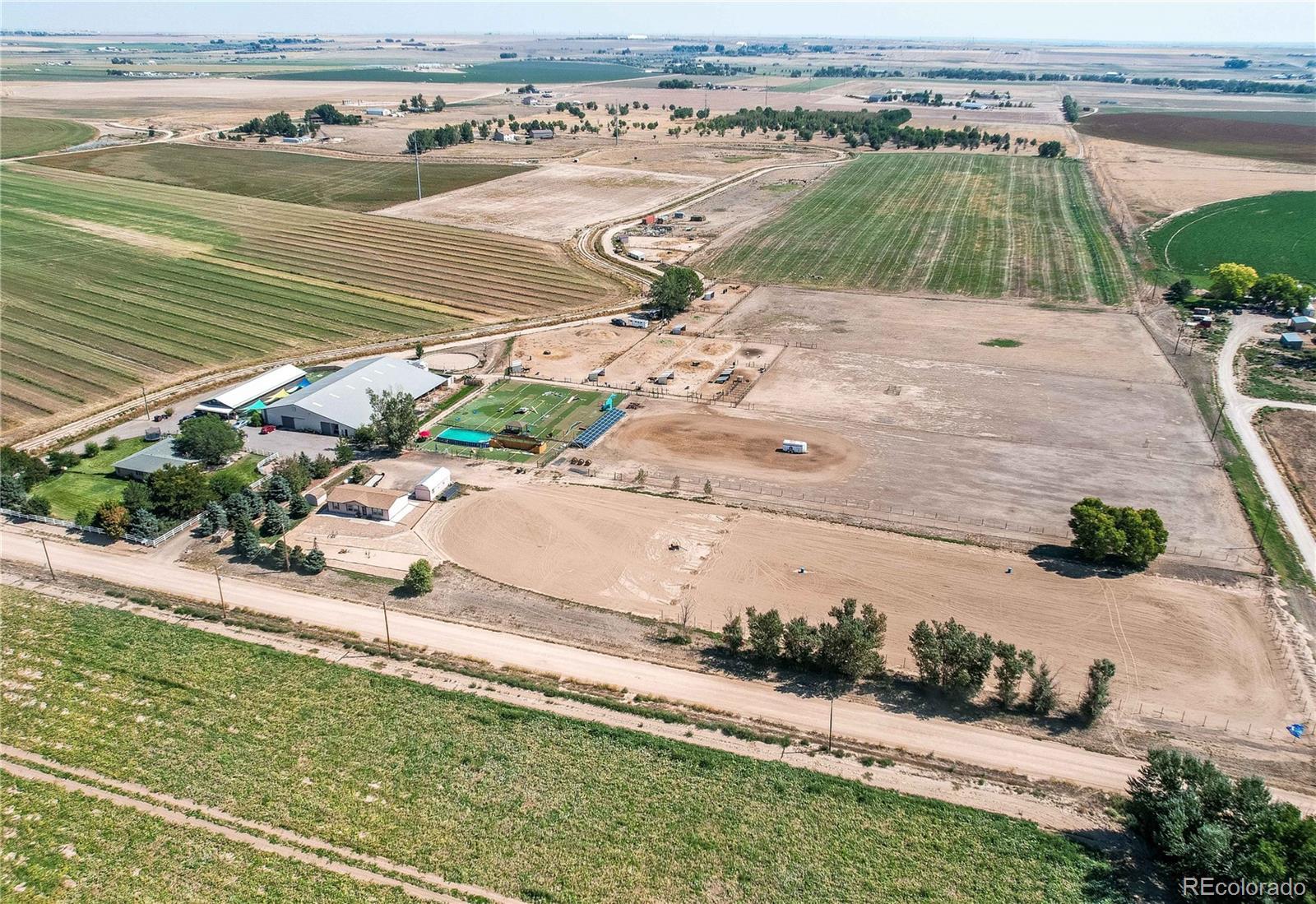 This property has it all. 3,600 square foot dog boarding facility, 14,400 Steel barn, two single family homes, three permitted wells (residential, agricultural, and commercial well), solar power, four permitted power meters, three permitted septic systems, horse facility, above ground pool and hot tub and a producing hay field. This property has an incredibly large amount of water rights. This property has the potential to be used for many different commercial uses. Please