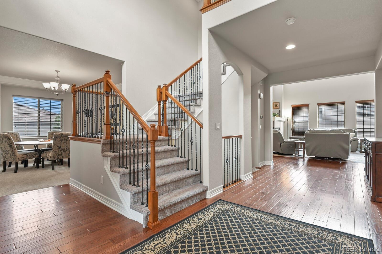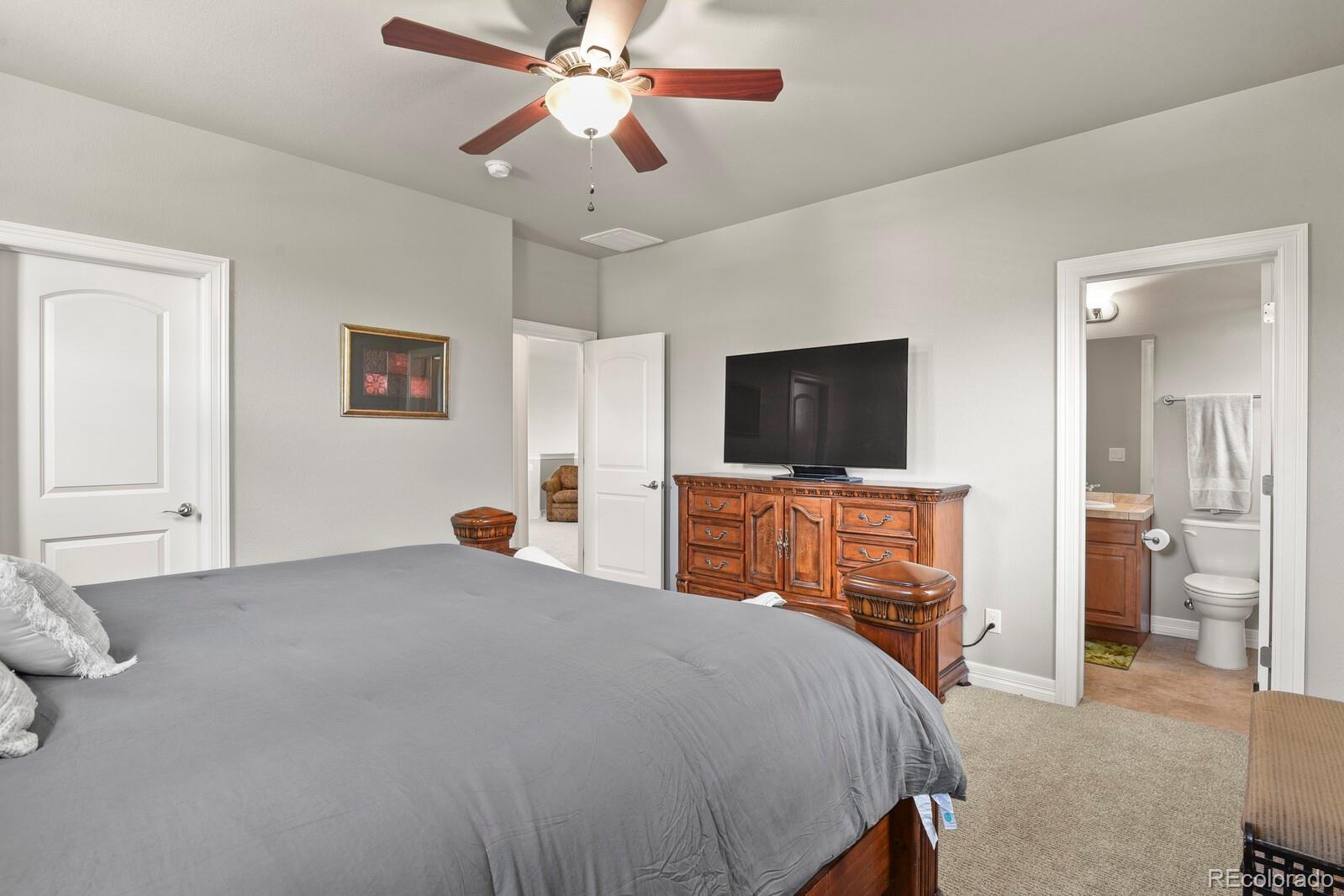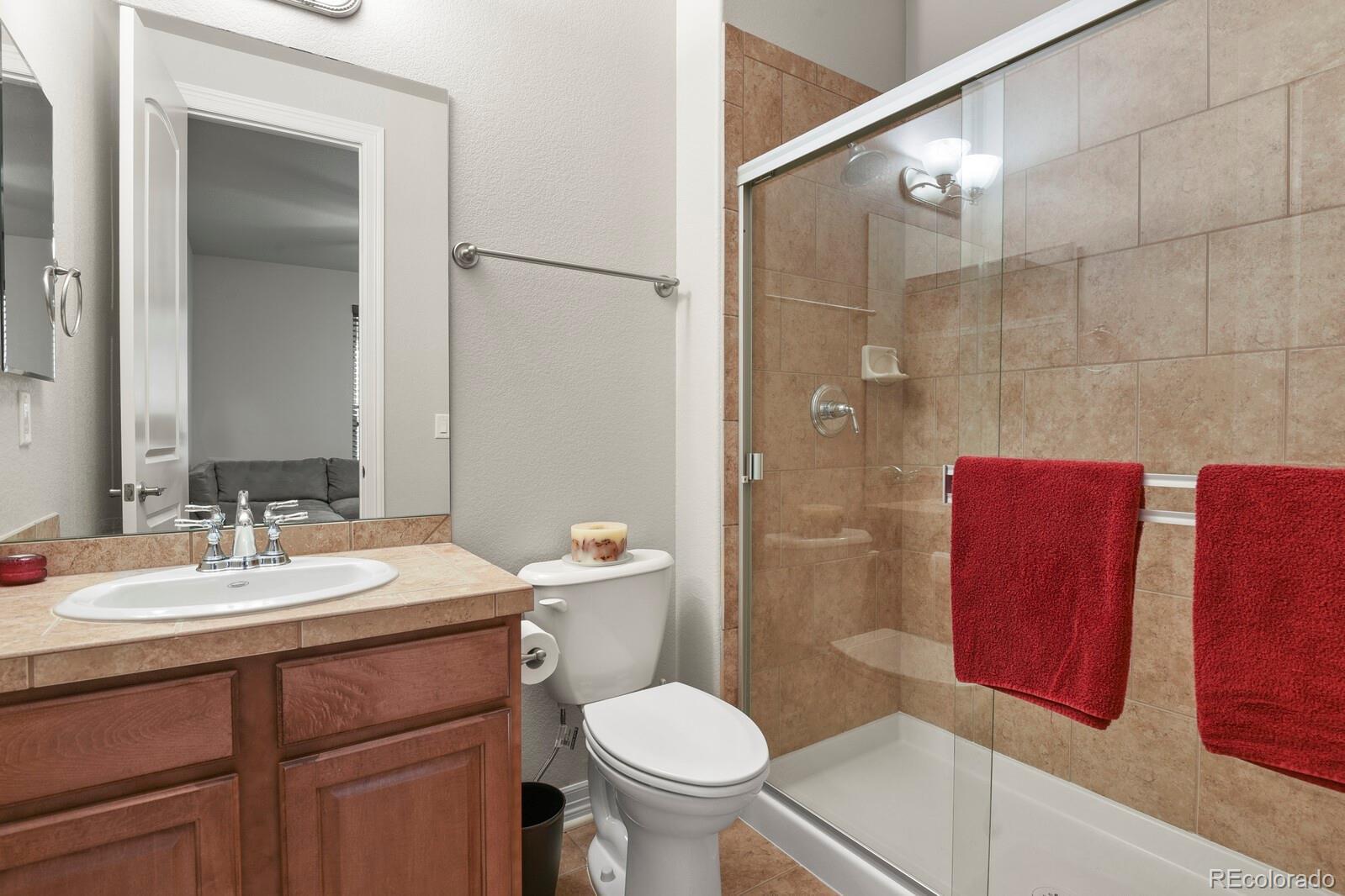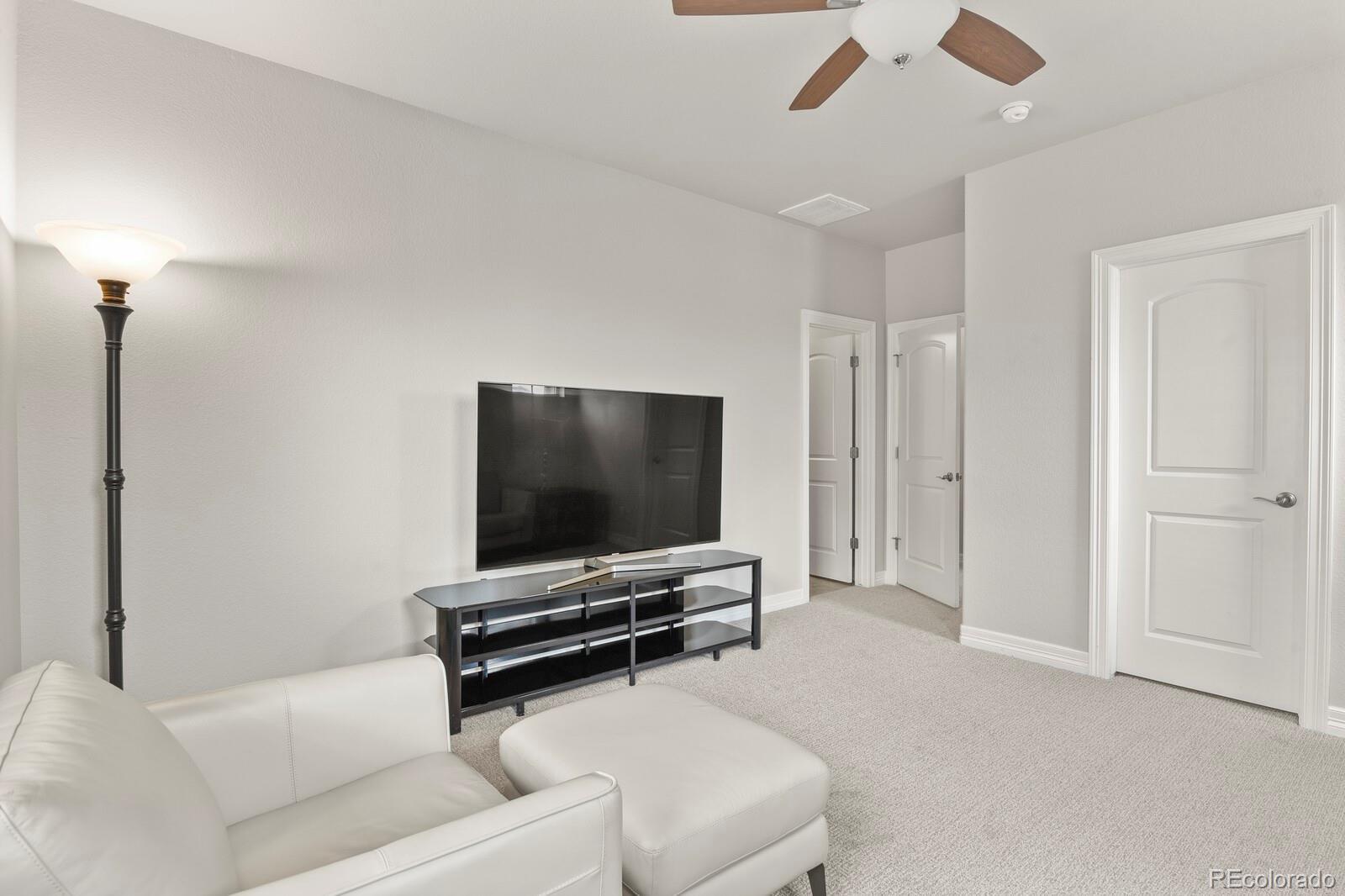 Move-In-Ready! This beautifully designed 4-bedroom 5 bath home, located in the desirable Solterra subdivision of Lakewood Colorado, offers a healthy lifestyle of comfort and enhanced quality of life. Just 25-minutes outside of Denver, but feels like another world entirely. An area surrounded by open space, a perfect location if you love walking paths, nature, and wildlife. This home sits on a quiet mature landscaped corner lot and boasts a beautiful private yard for Backyard grilling & entertaining. During your showing, it won't go unnoticed that this home has been given the greatest level of TLC. Throughout this home you'll find upgraded floor coverings, stylish tile and hardwood floors with a beautiful Maple finish to add a bit of warmth and elegance. If you like to entertain, enjoy in a gourmet kitchen that opens to a lovely family room with high ceilings and a 3 sided designer fireplace. The kitchen offers Maple finished soft close cabinets with plenty of storage, granite countertops, a center island and upgraded stainless steel appliances. No stairs to get to 2 full bedrooms on the main floor. The Primary Bedroom has been upgraded w/sound deadening insulation for added privacy. The upper level offers 2 bedrooms each with walk-in closets and private bathrooms. Additionally, there is a spacious loft area for an office or just a quiet read. As part of the many upgrades made during the build this home is extremely tight w/ an approximate doubling up on the insulation - i.e.: R49 in the attic and R29 on the exterior. Finally we have an upgraded fully insulated 3 car garage for your vehicles.