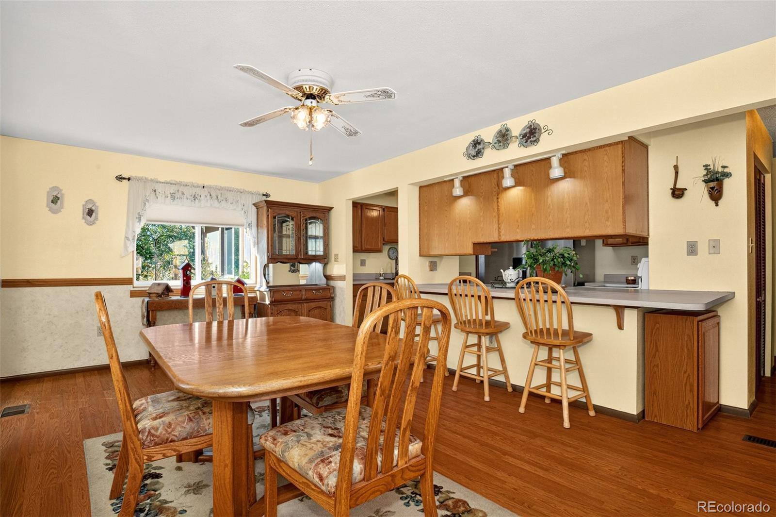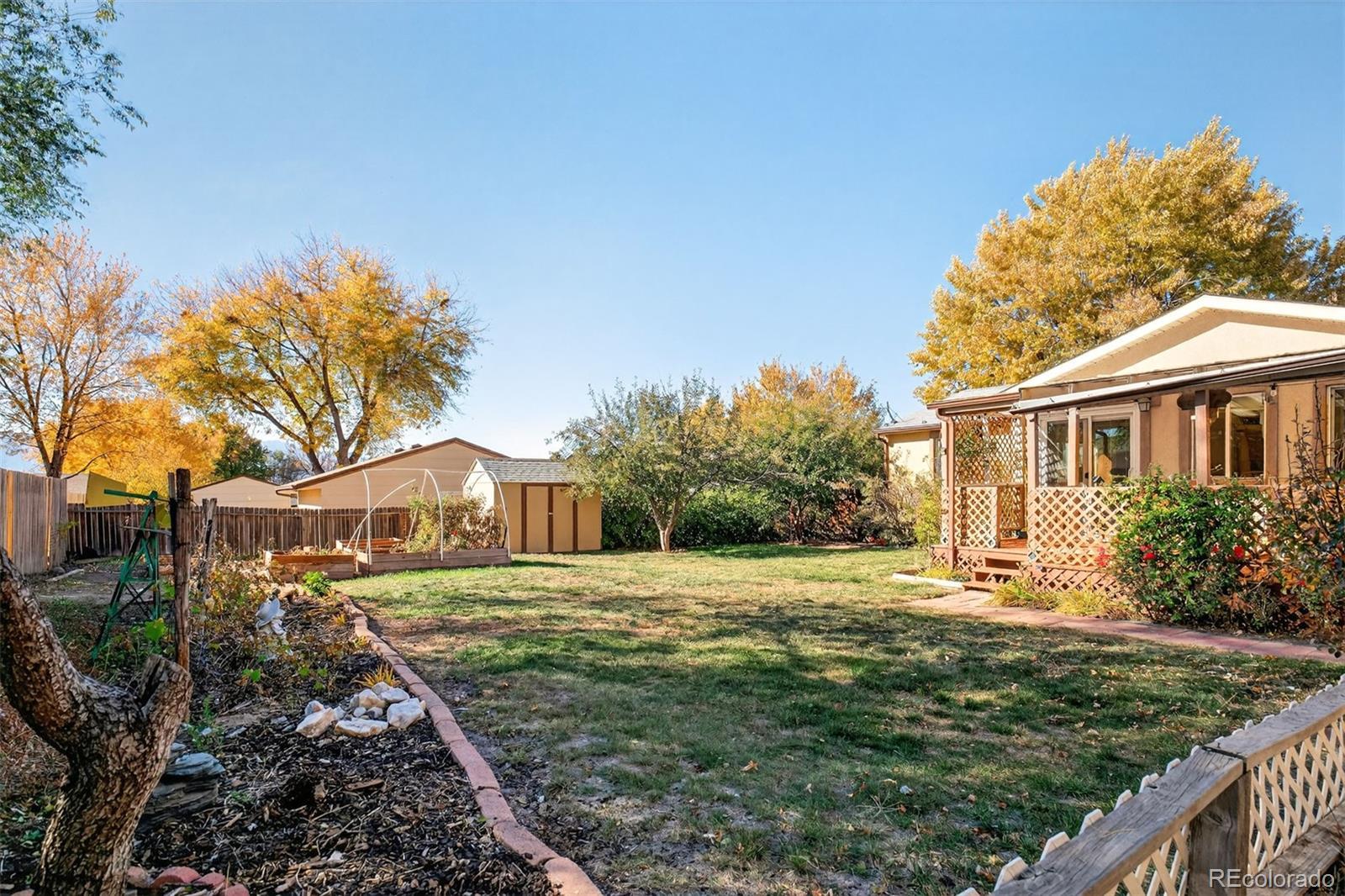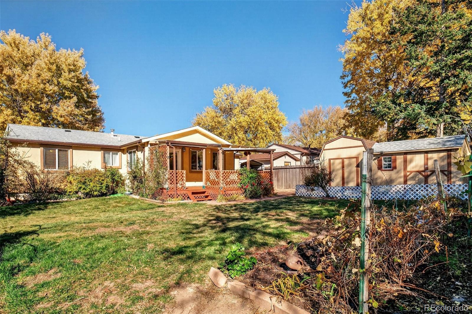 This spacious and inviting 5-bedroom, 2-bath ranch-style home is located in the well-established and quiet Cimarron Hills neighborhood of Colorado Springs. Offering over 2,000 square feet of comfortable living space, this home blends classic character with functional updates for everyday convenience. The main level features three bedrooms, a bright living room, wood panel accent walls, decorative ceiling fans, and natural wood floors that add warmth throughout. The kitchen offers an abundance of cabinet storage, a long breakfast bar, and an open layout flowing into an expansive dining area with a walk-out to a lovely covered deck, perfect for gatherings or entertaining! Downstairs, the finished basement provides two additional bedrooms, a large utility/laundry room, and a versatile family room currently being used as a crafting studio. Step outside to a large, private backyard complete with three storage sheds, raised garden beds/ built-in planters. There’s also a cozy front deck for relaxing and enjoying the peaceful surroundings. Additional highlights include an attached garage, as well as a carport, RV parking and workbenches in both the garage and a back shed. Located near schools, parks, shopping, Peterson AFB and major commuter routes, this property offers the ideal combination of quiet neighborhood living and everyday convenience — a perfect place to call home!