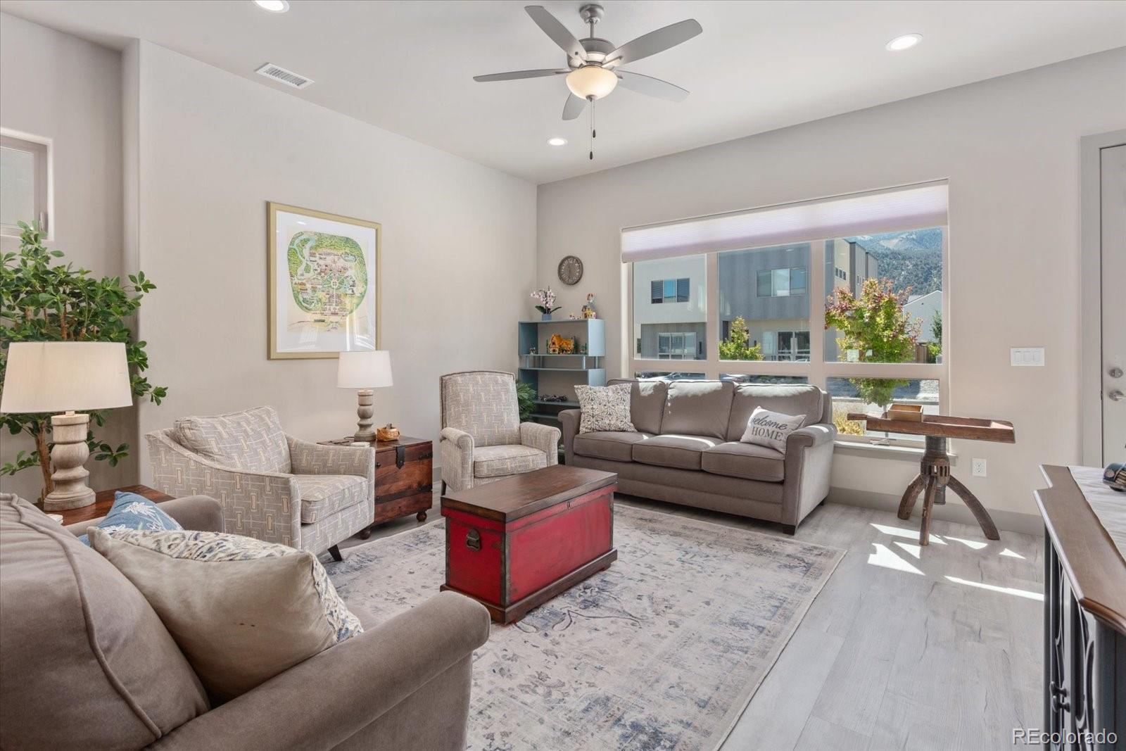 Step into this barely lived-in (2nd home) gem located in the heart of the growing and vibrant community of Poncha Springs. Designed for both comfort and convenience, this thoughtfully laid-out home features two spacious primary suites, each with mountain views and their own en suite bathroom, offering privacy and flexibility for guests. A third bedroom or main-level office provides even more functionality. Tall ceilings and abundant natural light create an airy, open feel throughout the home. The low-maintenance stucco exterior and xeriscaped yard mean you’ll spend less time on upkeep and more time enjoying the outdoors. A fully fenced backyard offers space to relax or entertain, while the detached one-stall garage with alley access and an additional parking stall provide ample parking and storage. Inside, the light-colored paint palette enhances the home's brightness and modern aesthetic. Located just one block from a park and within walking distance to a nearby gym, this home combines lifestyle and location. Poncha Springs is a gateway to adventure and one of Colorado's fastest-growing small towns, featuring amenities like a grocery store, hardware store, local pub, coffee shops, and a steakhouse. You’ll be just minutes from Monarch Ski Area, Arkansas River fishing and boating, and a vast network of mountain biking and hiking trails. This home is being offered fully furnished. Whether you're seeking a full-time residence, weekend getaway, or investment opportunity, this property offers a perfect blend of low-maintenance living and high-quality lifestyle in a truly unbeatable location. Check out the virtual tour video at book.emeraldrealestatemedia.com/1120Agate-Ln then call for an appointment!